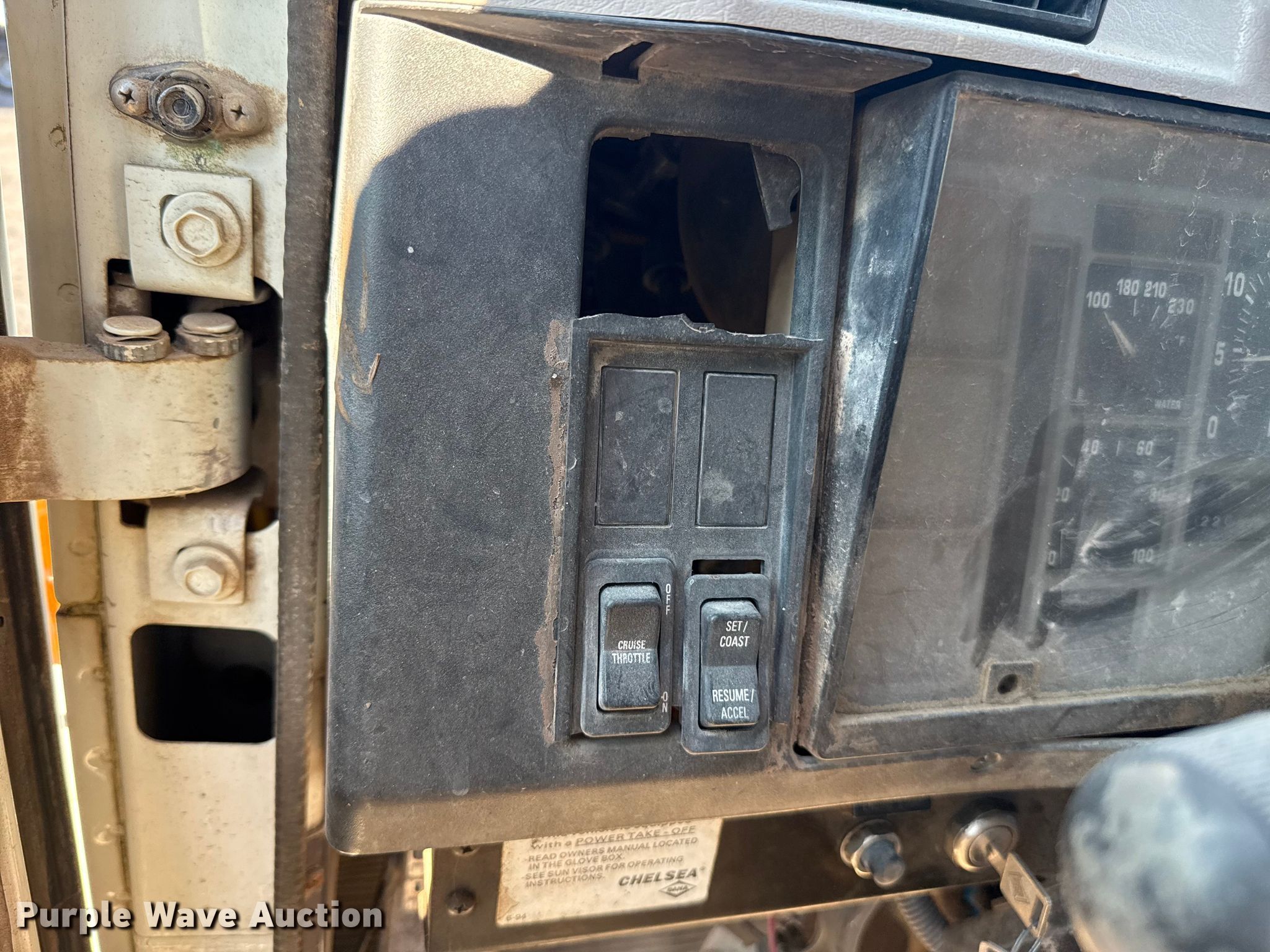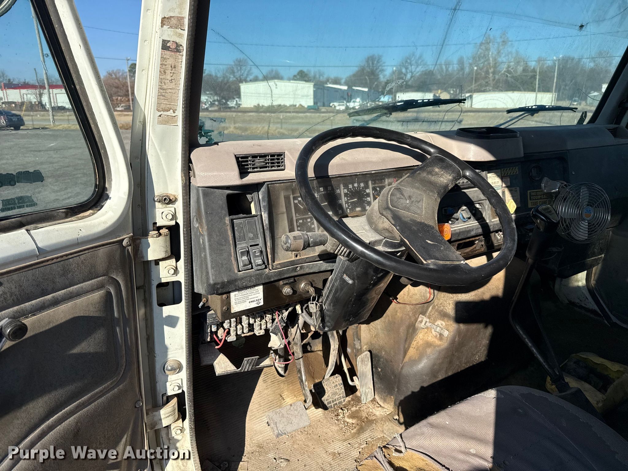 1997 International 4900 dump flatbed truck. Miles: 334,799 on odometer, Hours: 122,034 on meter, VIN: 1HTSDADN1VH421844. Engine International, Displacement: 8.7L, Cylinders: 6, Fuel type: Diesel. Transmission Eaton Fuller, Manual, Speed: 9. Chassis Axles: Single, Suspension: Spring, Brakes: Air, PTO, Wet kit, GVWR: 33,000 lbs. Interior AC, Heat, Cruise control. Features Bed Dump flatbed, Length: 13' 7", Width: 97", Ram: Dual. Tires Size: 11R22.5. Notes Windshield chipped or cracked, Dead battery, Driver front wheel seal issues, leaks, Engine issues, head gasket needs replaced , AC belt missing, Ram hydraulic leak, Unit must be towed or hauled , Non-operational unit. Oklahoma title. Title distribution may be delayed up to 30 days from verification of funds. Creek County, OK. Bristow, OK 74010