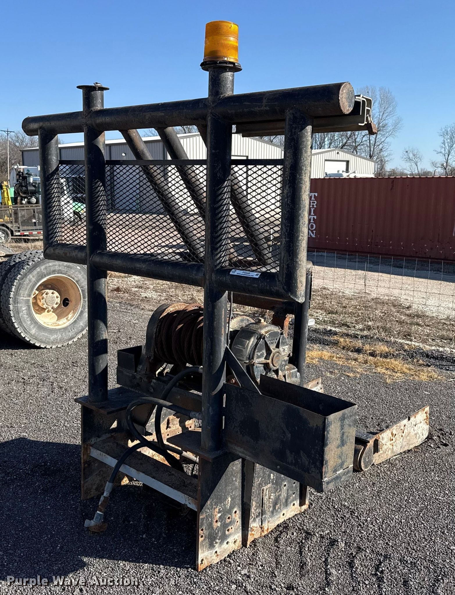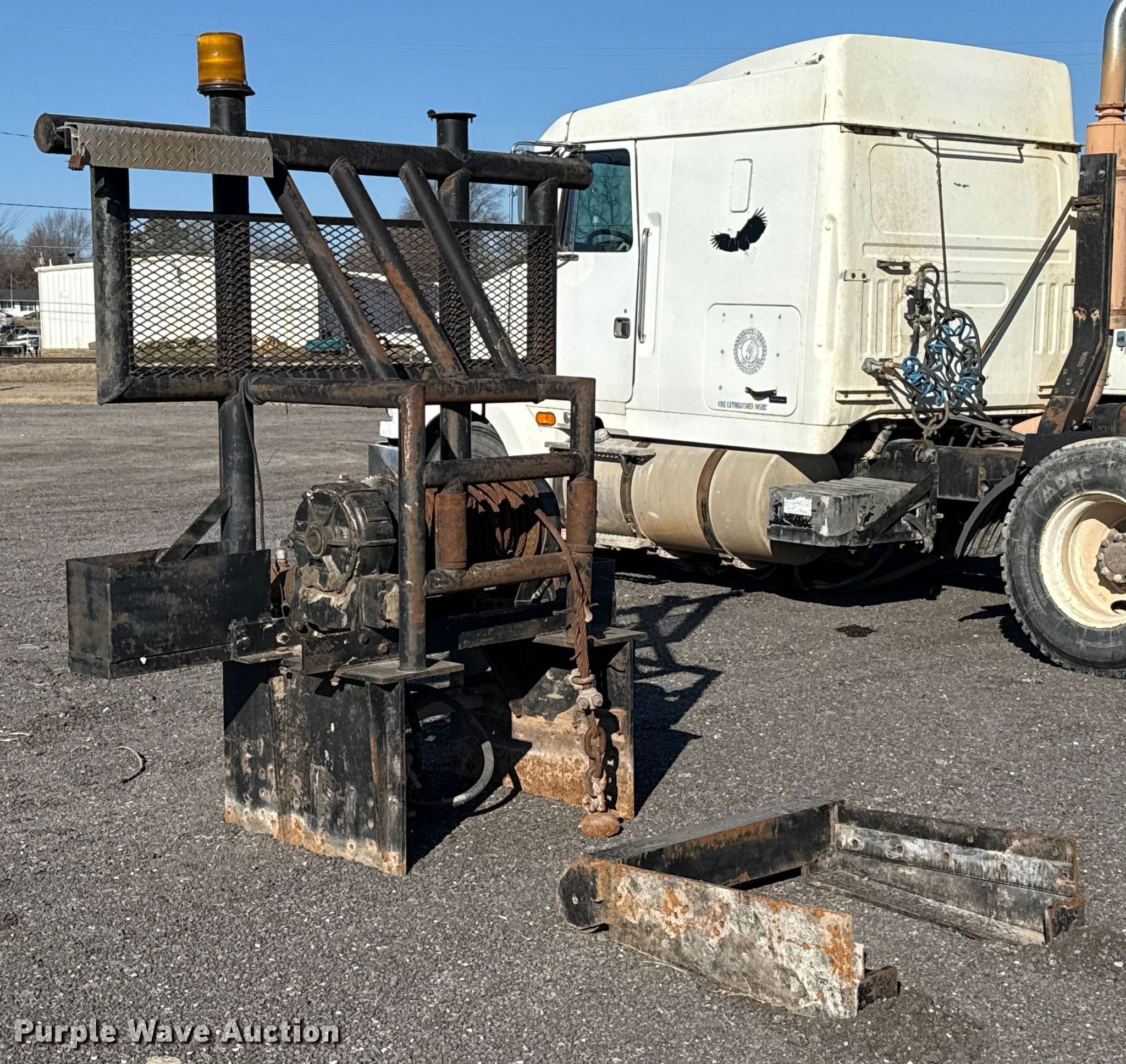 Purple Wave is selling a used Truck Part and Attach. in Oklahoma. This item is a Braden Winch AHS10-18 winch with the following: Length: 32", Width: 36", Capacity: 30,000 pounds, Rolling tail board, Fifth wheel plate, Sliding, Air operated