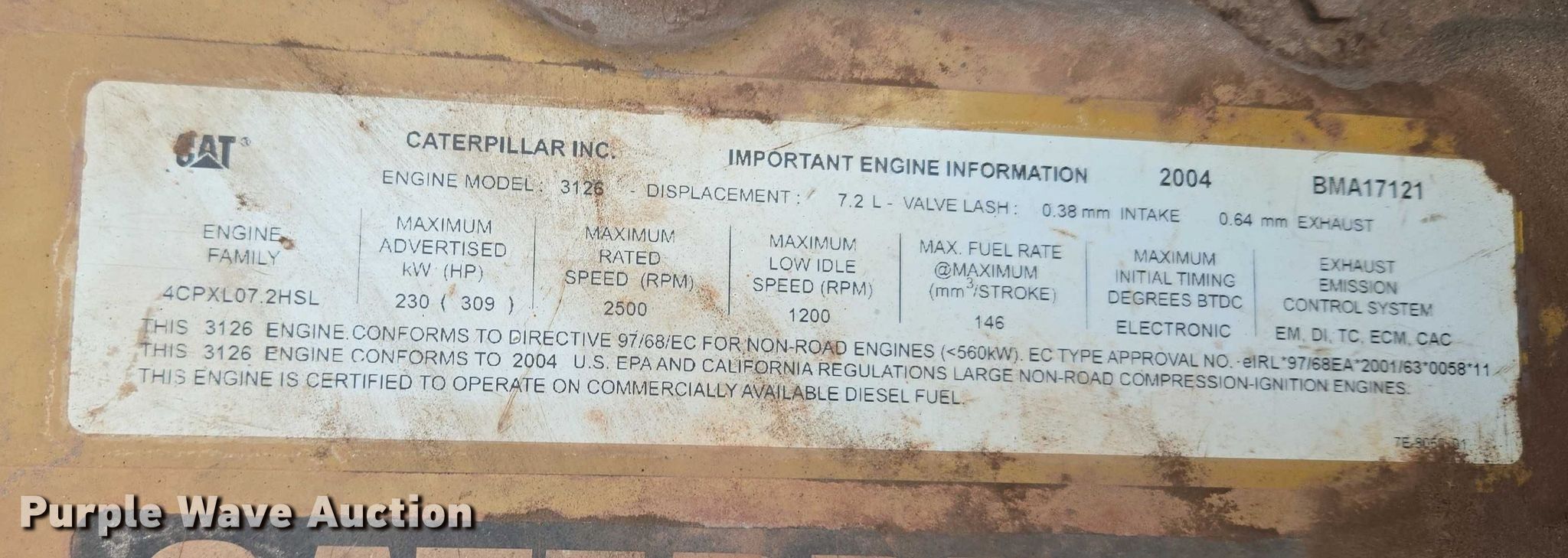 2006 Caterpillar 950G wheel loader. Hours: 6,206 on meter, Serial: CAT0950GC6AA00843. Engine Caterpillar 3126, Serial: BMA17121, Displacement: 7.2L, Cylinders: 6, Fuel type: Diesel. Transmission Powershift, 4F - 4R. Operators station Enclosed cab, AC, Heat, Steering: Combination, Bucket controls: Two-lever. Features Bucket Caterpillar, Width: 115", Cutting edge: Bolt-on. Tires Size: 23.5R25. Notes Glass cracked. Cleveland County. Oklahoma City, OK 73165
