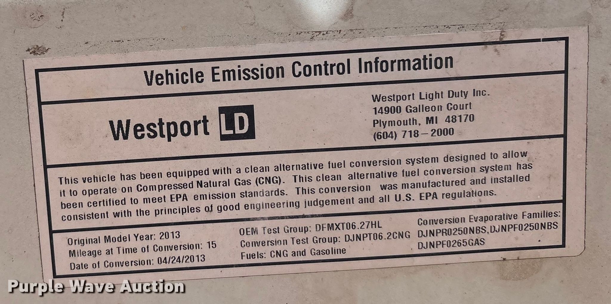 2013 Ford F250 Super Duty Crew Cab pickup truck. Miles: 98,145 on odometer, VIN: 1FT7W2B69DEB30393. Engine Displacement: 6.2L, Cylinders: 8, Fuel type: Gas, CNG. Transmission Automatic, Four wheel drive. Interior AC, Heat, Heated mirrors, Power windows, Power locks, Cruise control, Auxiliary controls, Brake controller. Features Lund fuel tank GPI pump, Hose, CNG tank, Automatic Fuel Type Switch. Tires Size: LT245/75R17. Notes Possible CNG tank issues, out of inspection, Dash warning indicator: TPMS. Oklahoma title. Title distribution may be delayed up to 30 days from verification of funds. Cleveland County. Oklahoma City, OK 73165