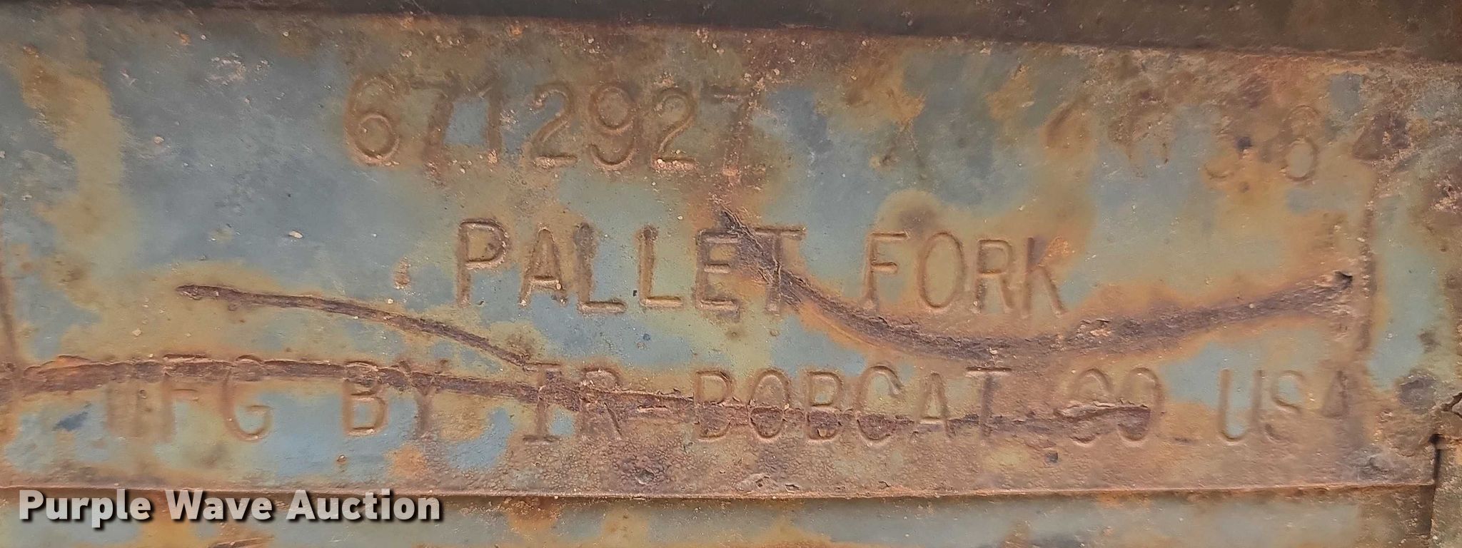 Purple Wave is selling a used Skid Steer Attach. in Oklahoma. This item is a Bobcat skid steer forks with the following: Serial: 6712927, Length: 47"