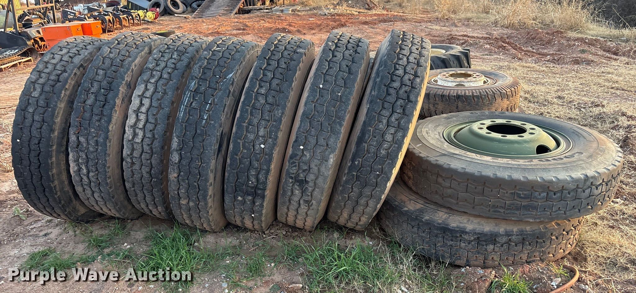 Purple Wave is selling a used Fleet Tires in Oklahoma. This item is a Wheels and tires with the following: (9) 11.00R24, (2) 10.00-20, (1) 18.4-30