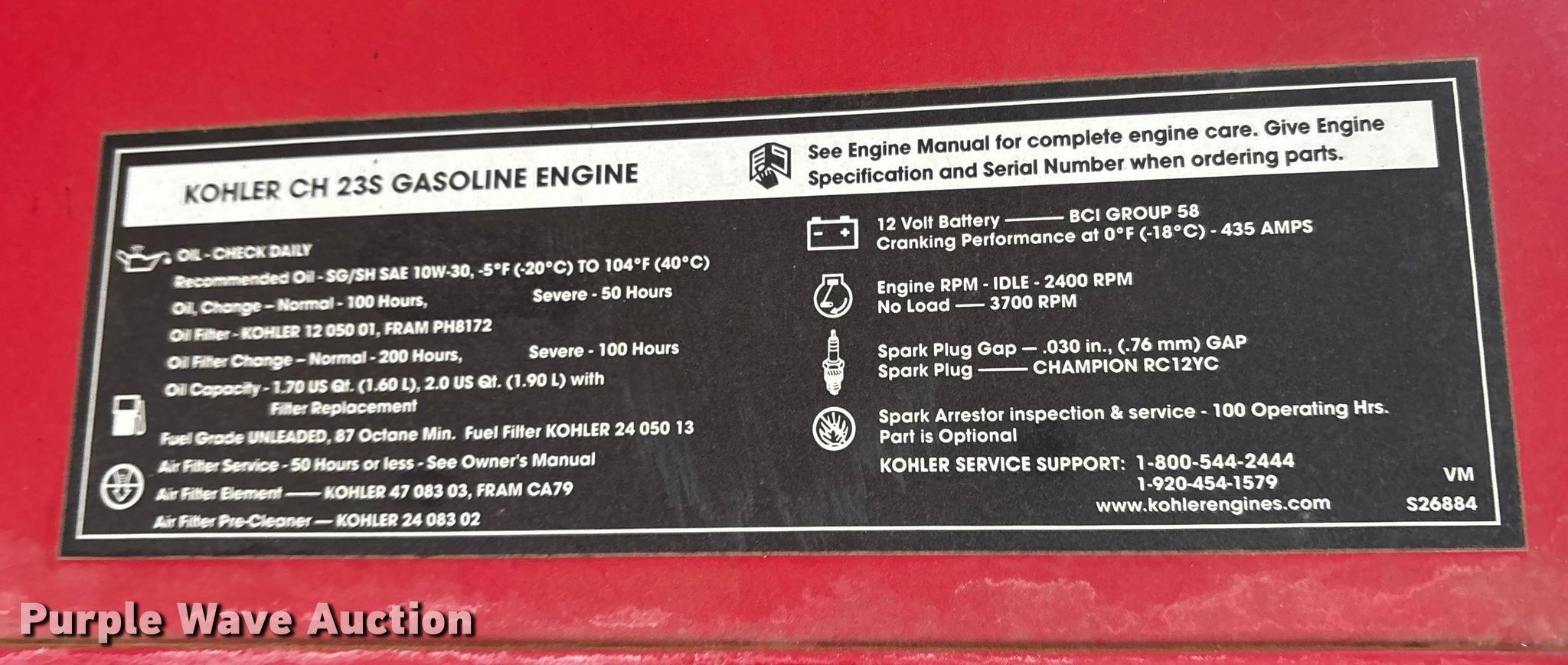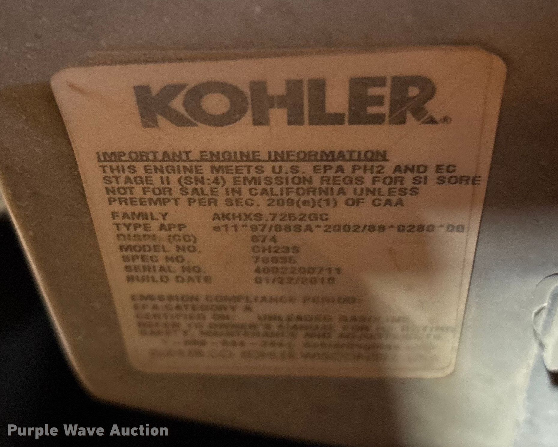 Eagle 10,000 Plus welder/generator. Hours: 391 on meter. Engine Kohler CH23S, Serial: 4002200711, Cylinders: 2, Fuel type: Gas. Features Welder Capabilities: Stick, Generator 240V outlets: 2, 120V outlets: 1. Notes Leads on hose not included, Contents not included, Trailer not included. Cleveland County. Oklahoma City, OK 73165