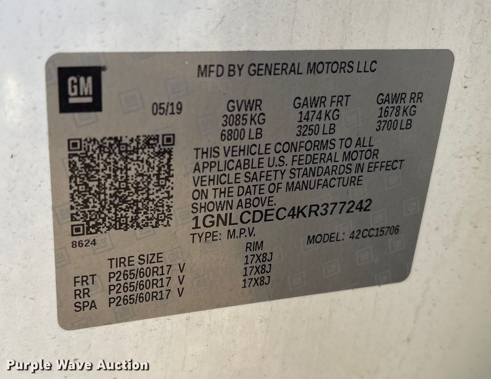 - VIN: 1GNLCDEC4KR377242