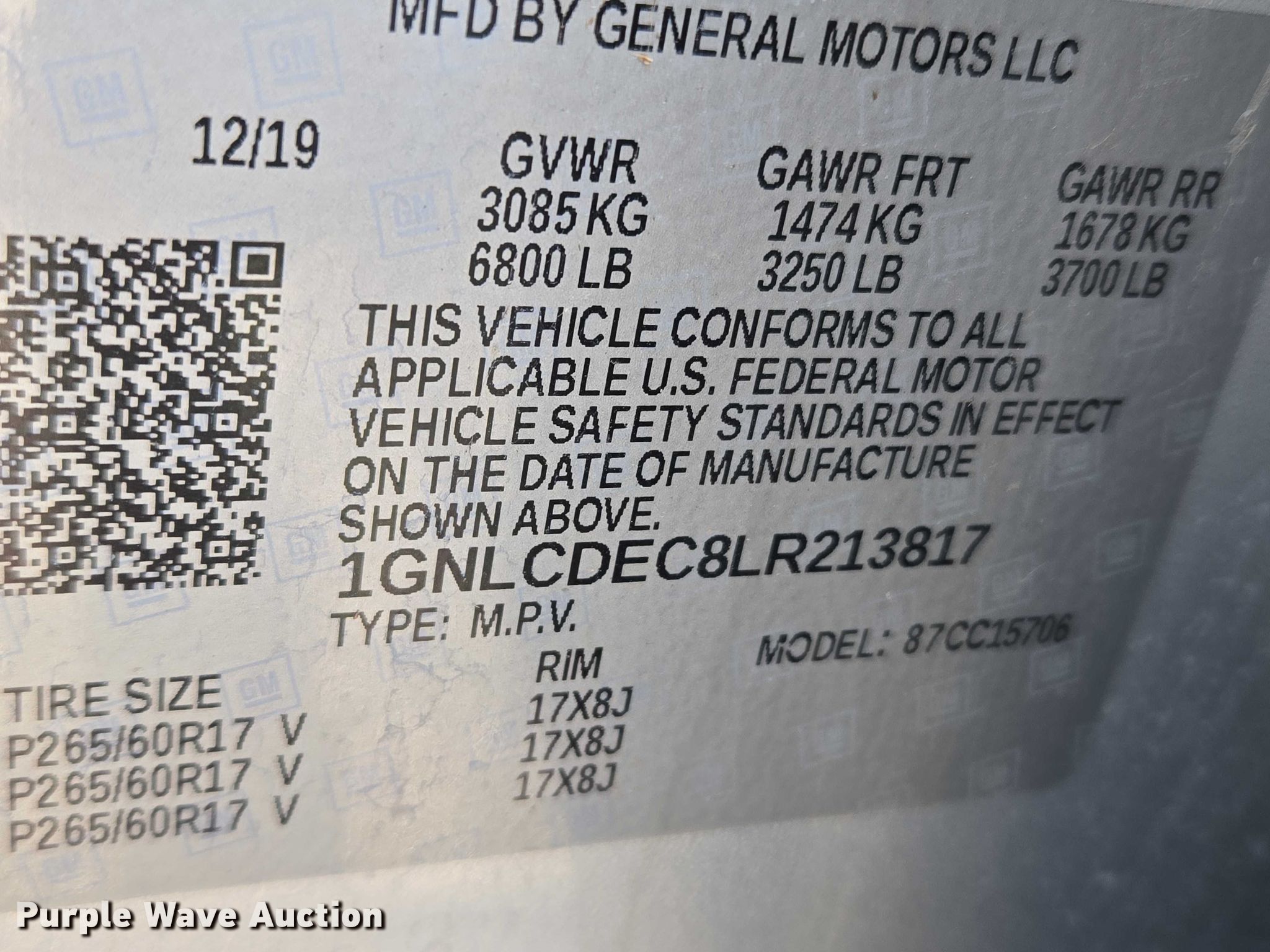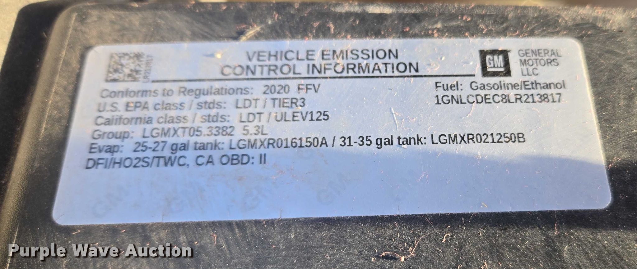 Purple Wave is selling a used Passenger Vehicle in Oklahoma. This item is a 2020 Chevrolet Tahoe Police SUV with the following: Miles: 111,068 on odometer, VIN: 1GNLCDEC8LR213817
