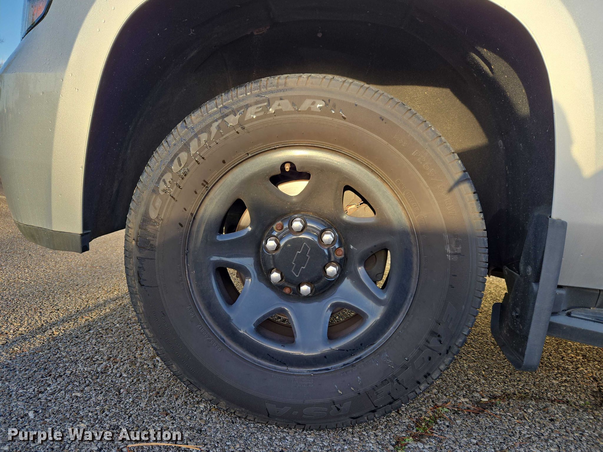 2020 Chevrolet Tahoe Police SUV. Miles: 111,068 on odometer, VIN: 1GNLCDEC8LR213817. Engine Displacement: 5.2L, Cylinders: 8, Fuel type: Gas. Transmission Automatic. Interior AC, Heat, Seat: Power driver, Power passenger, Heated mirrors, Power windows, Power locks, Cruise control, Backup camera. Tires Size: P265/60R17. Notes Dash warning indicator: TPMS, Fuse for back-up monitor removed. Oklahoma title. Title distribution may be delayed up to 14 days from verification of funds. Cleveland County Sheriff - Patrol Substation. Slaughterville, OK 73051