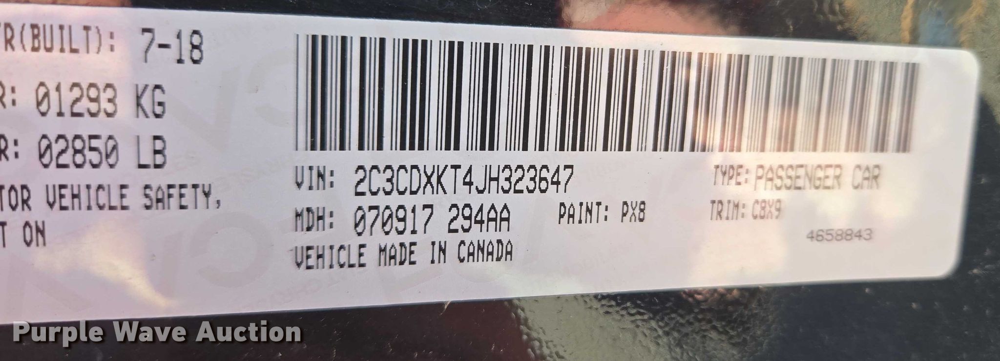 - VIN: 2C3CDXKT4JH323647