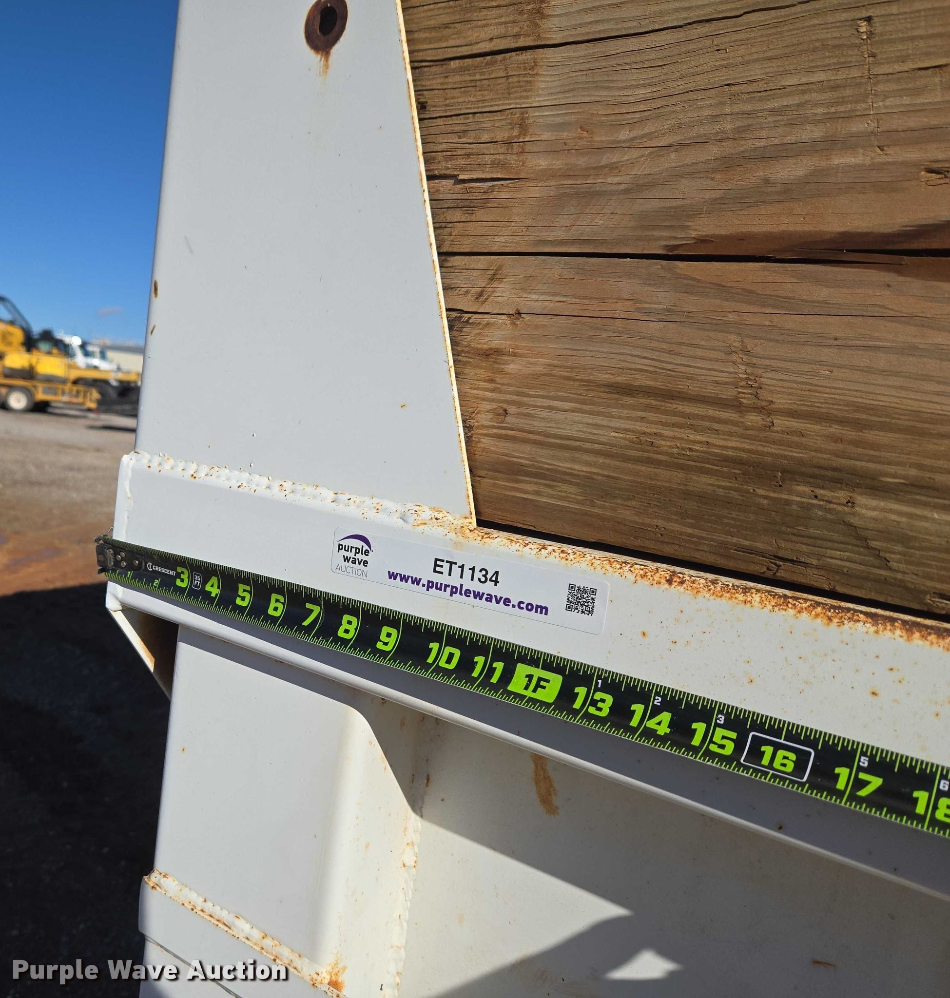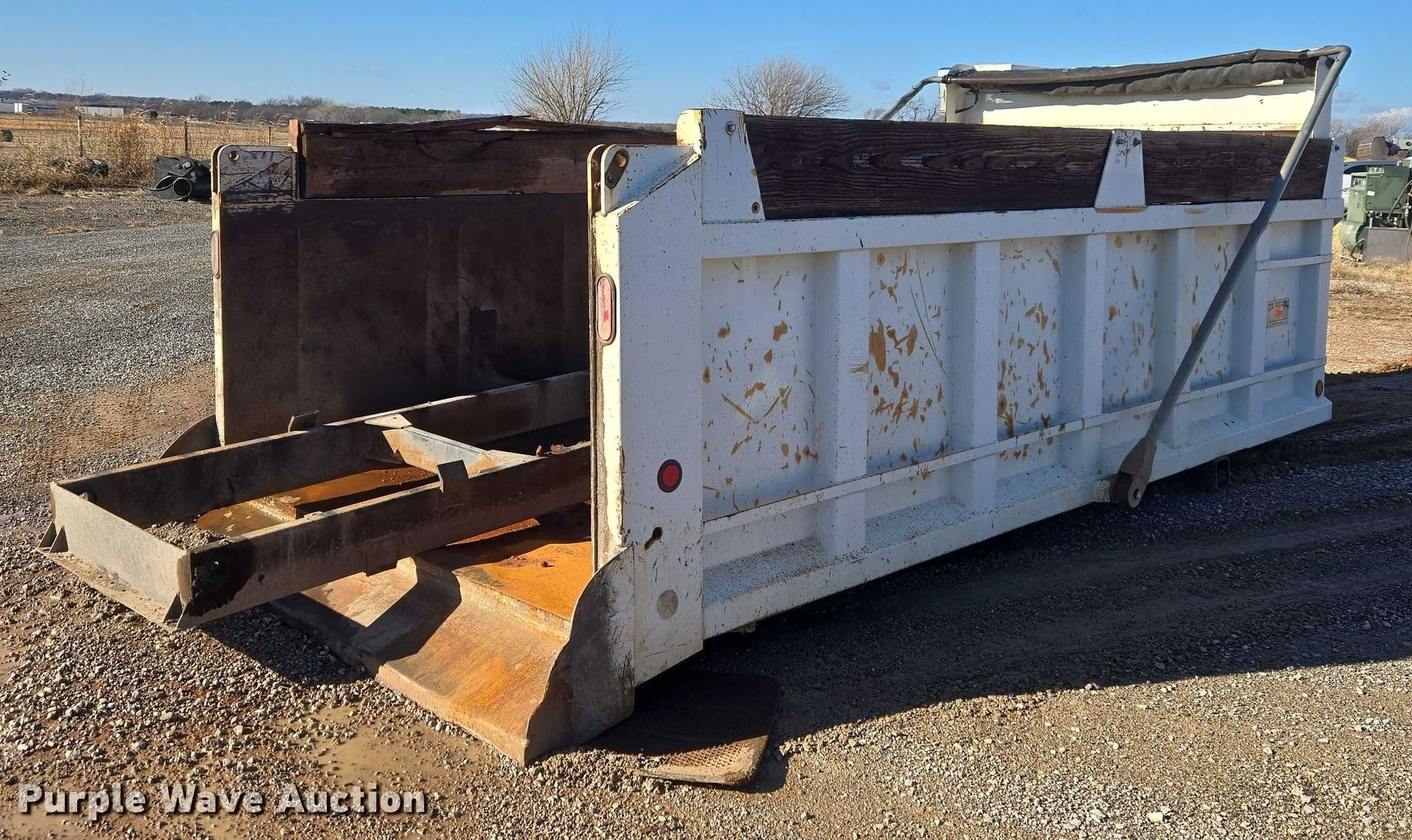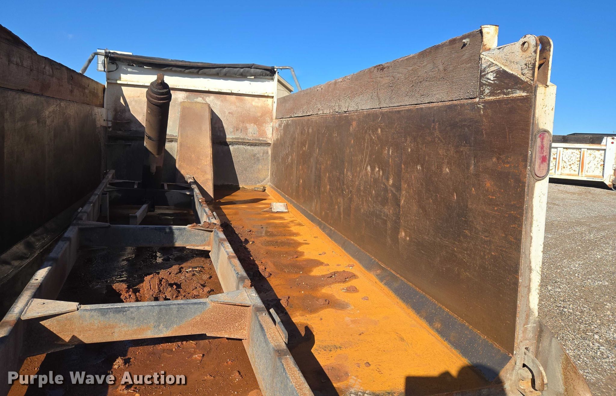 Purple Wave is selling a used Truck Part and Attach. in Oklahoma. This item is a OX Bodies dump bed with the following: Bed, Dump bed, Length: 16' 11", Width: 8' 2", Side height: 45", Side board height: 12", Bed type: Steel, Roll tarp, Ram: Single