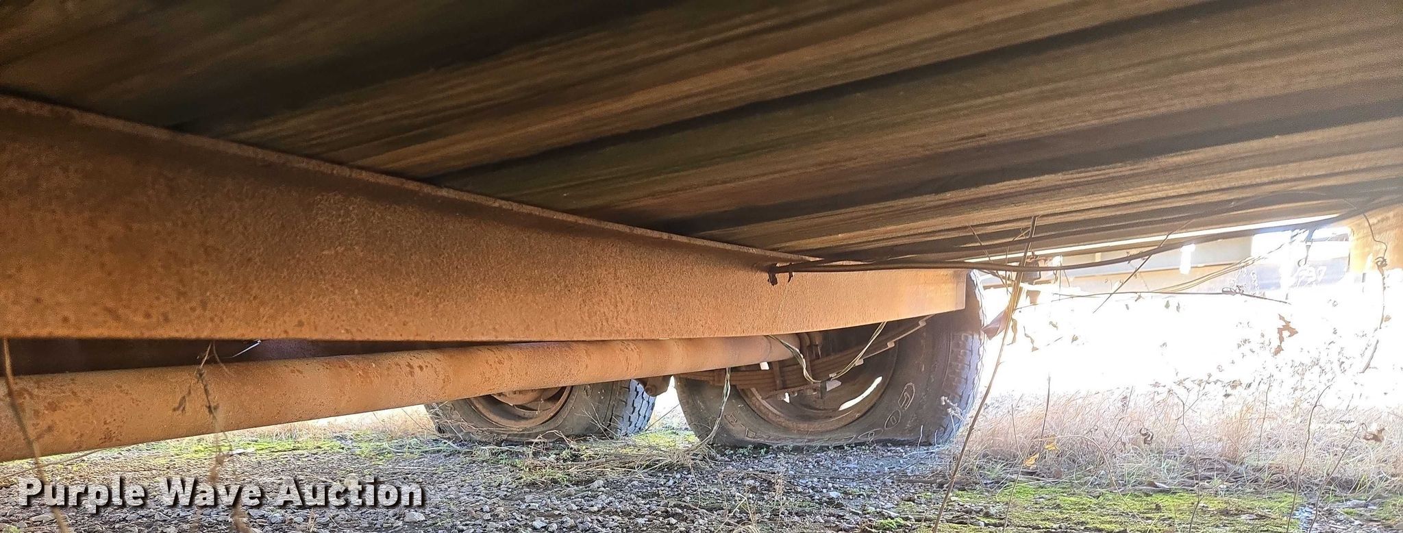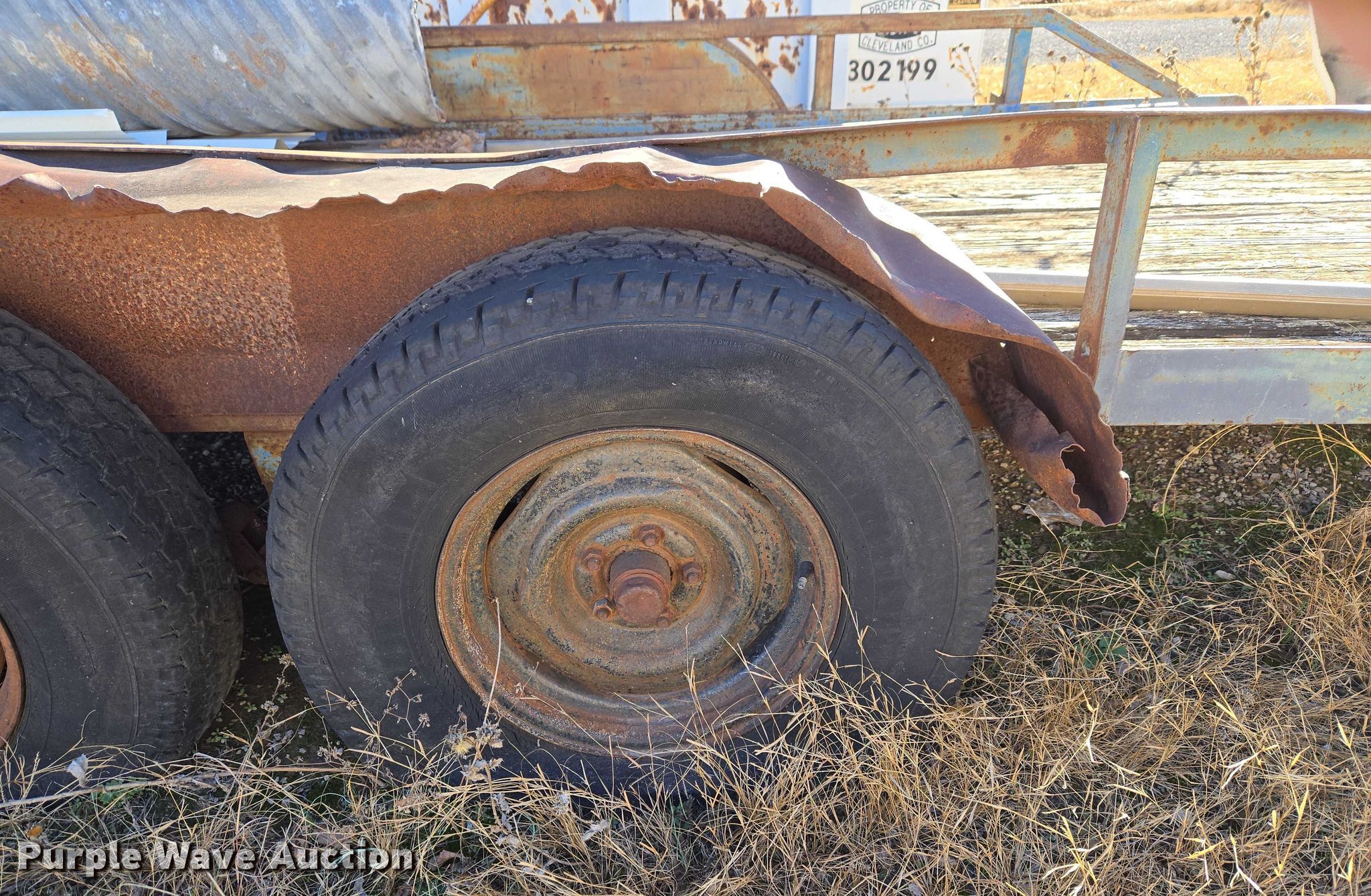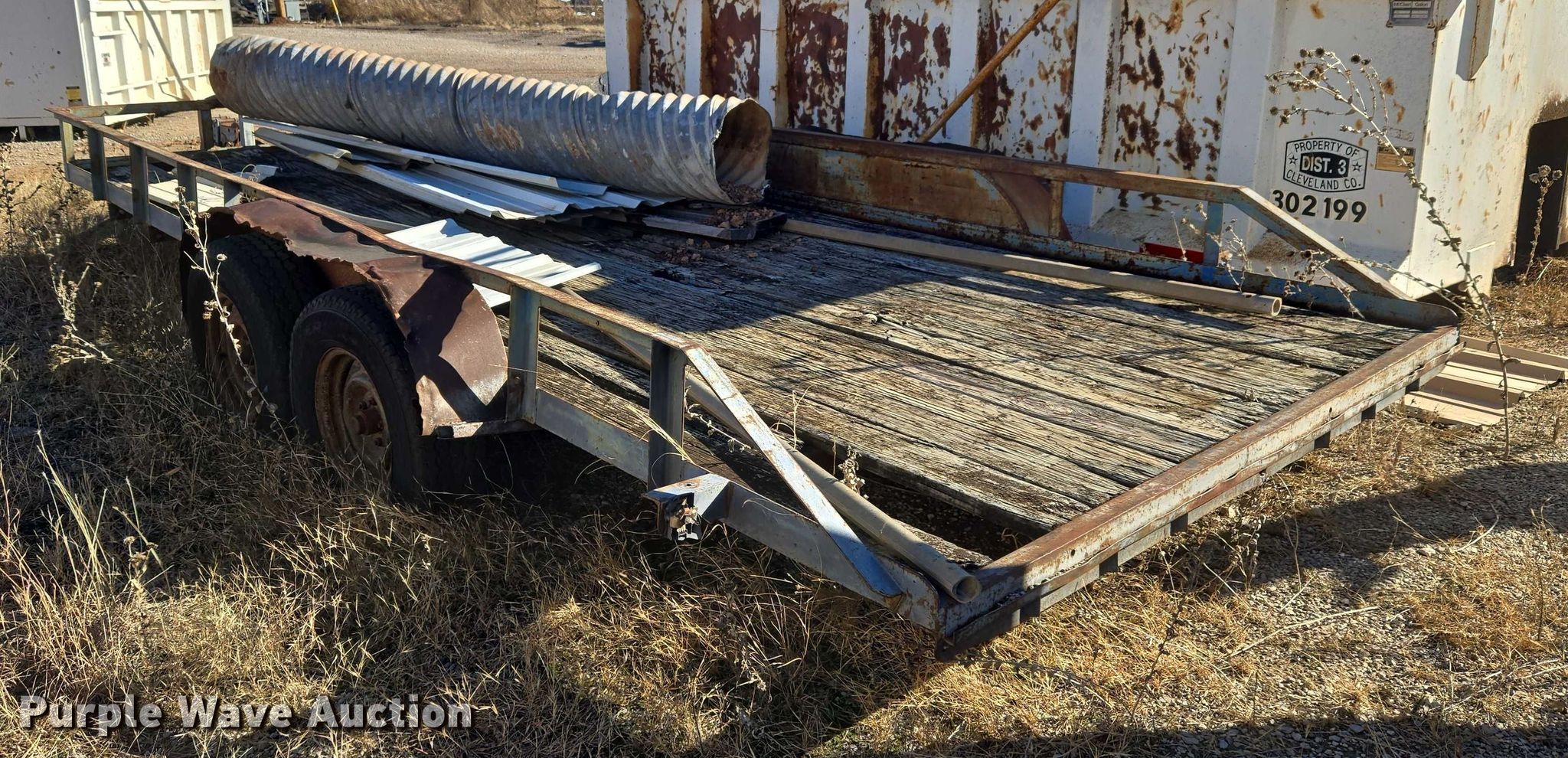 Shop built utility trailer. Dimensions. Overall Length: 22', Width: 8' 4", Deck Length: 18', Width: 7'. Features Deck type: Wood. Chassis Ball hitch: 2", Landing gear: Single, Suspension: Spring, Axles: Tandem. Tires Steel wheels, Size: P235/75R15. Notes Flat tires, Deck board damaged, Unknown operating condition. Transfer of ownership documentation will be a bill of sale. Cleveland County - District 3. Noble, OK 73068