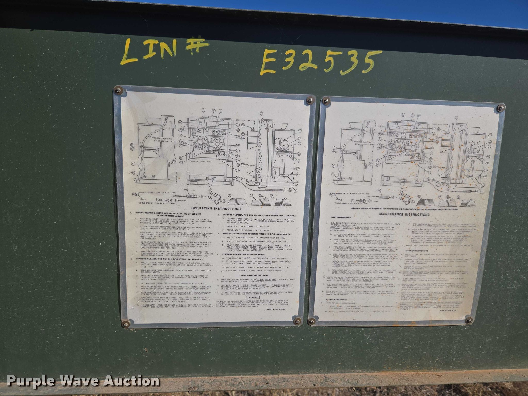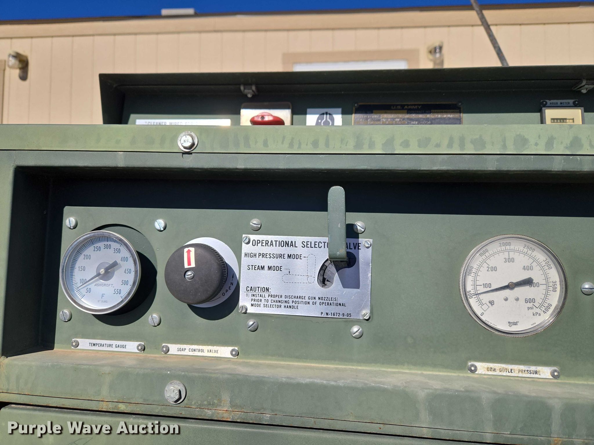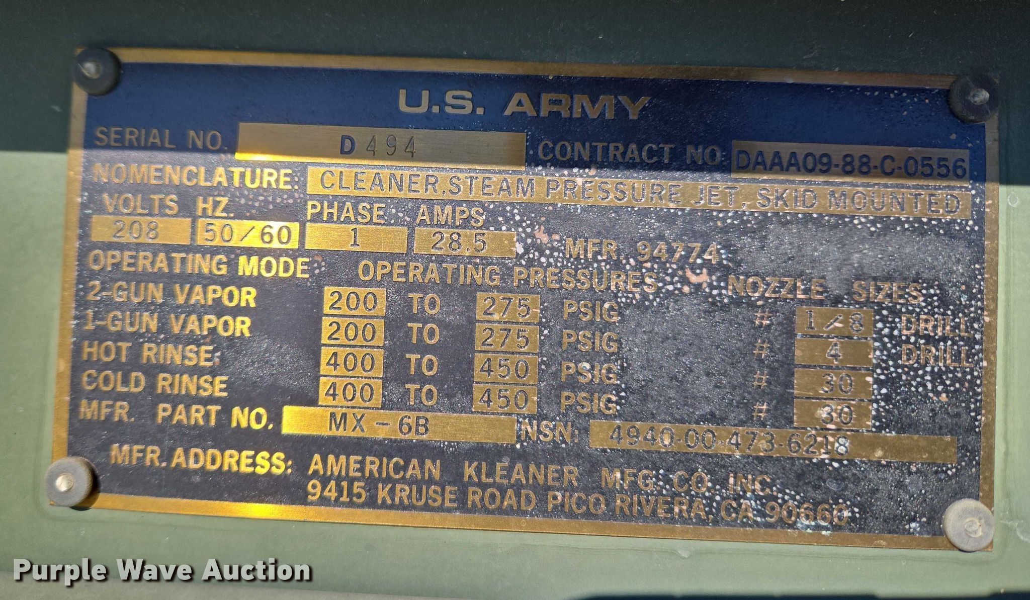 Purple Wave is selling a used Pressure Washer in Oklahoma. This item is a American Kleaner Mft. Co. pressure washer with the following: Hours: 12 on meter, Serial: D494