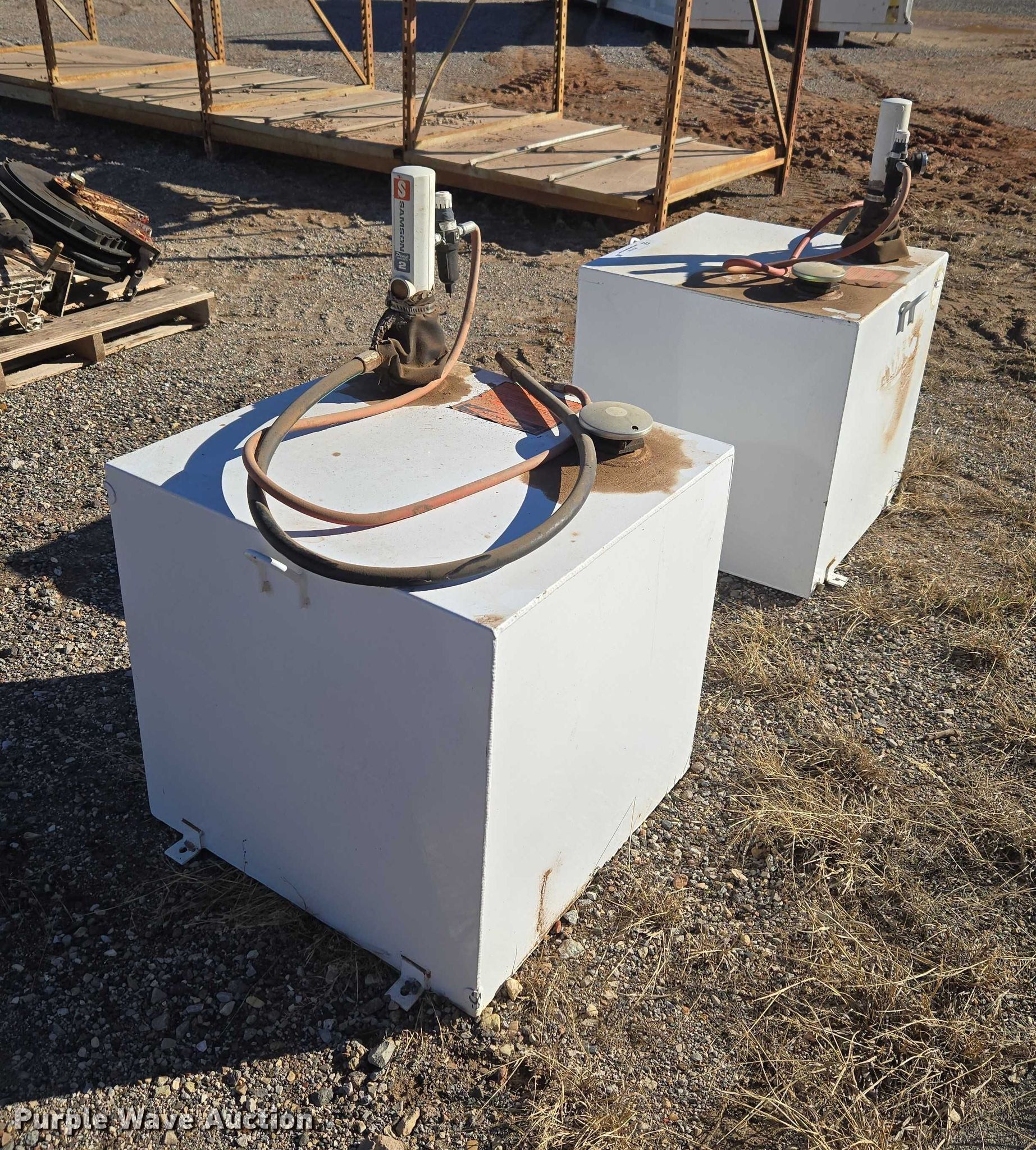 Purple Wave is selling a used Fuel and Lube in Oklahoma. This item is a (2) oil tanks with the following: Unknown operating condition