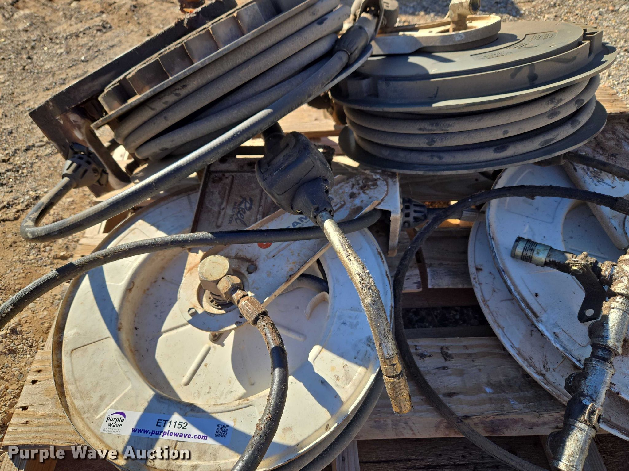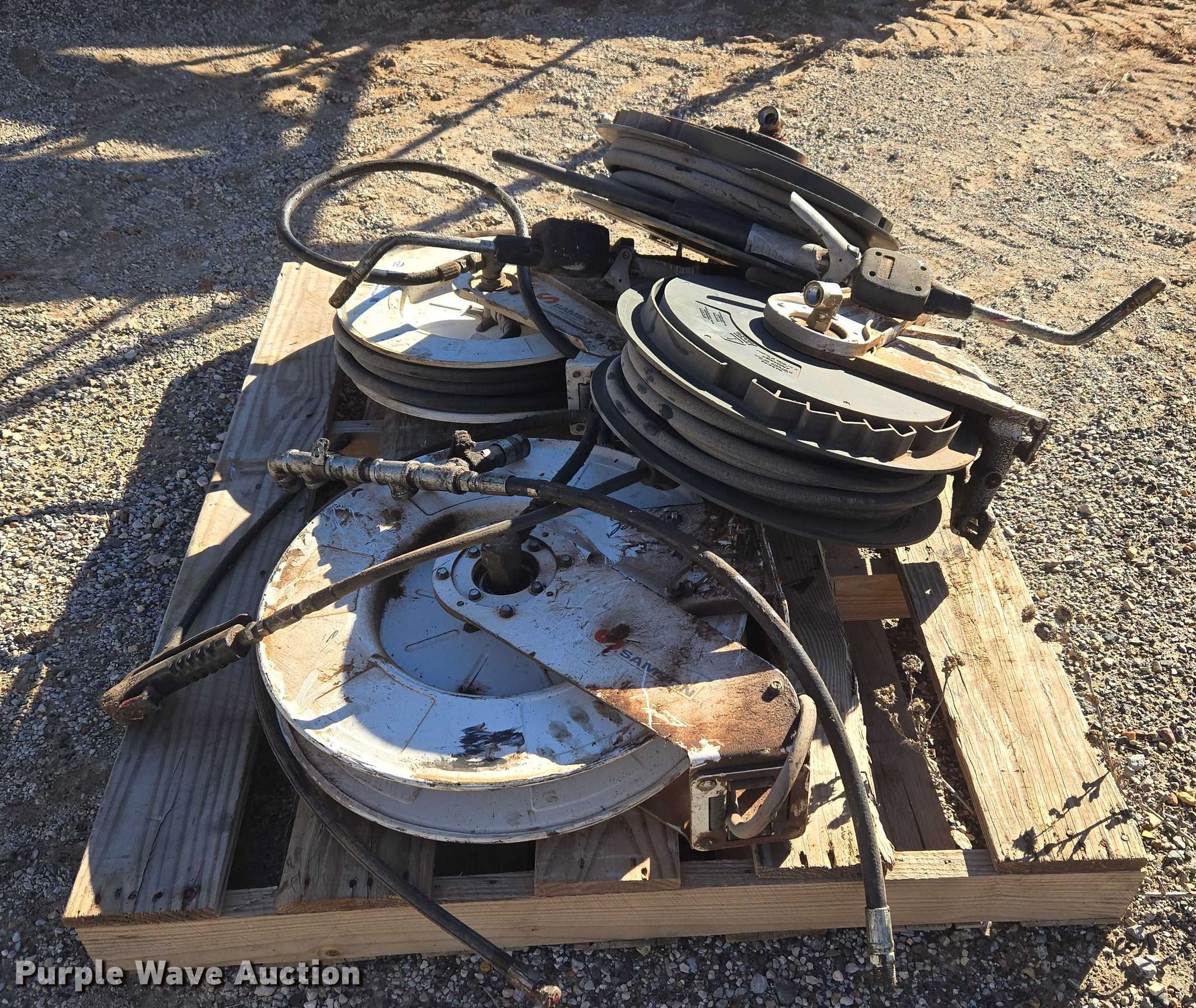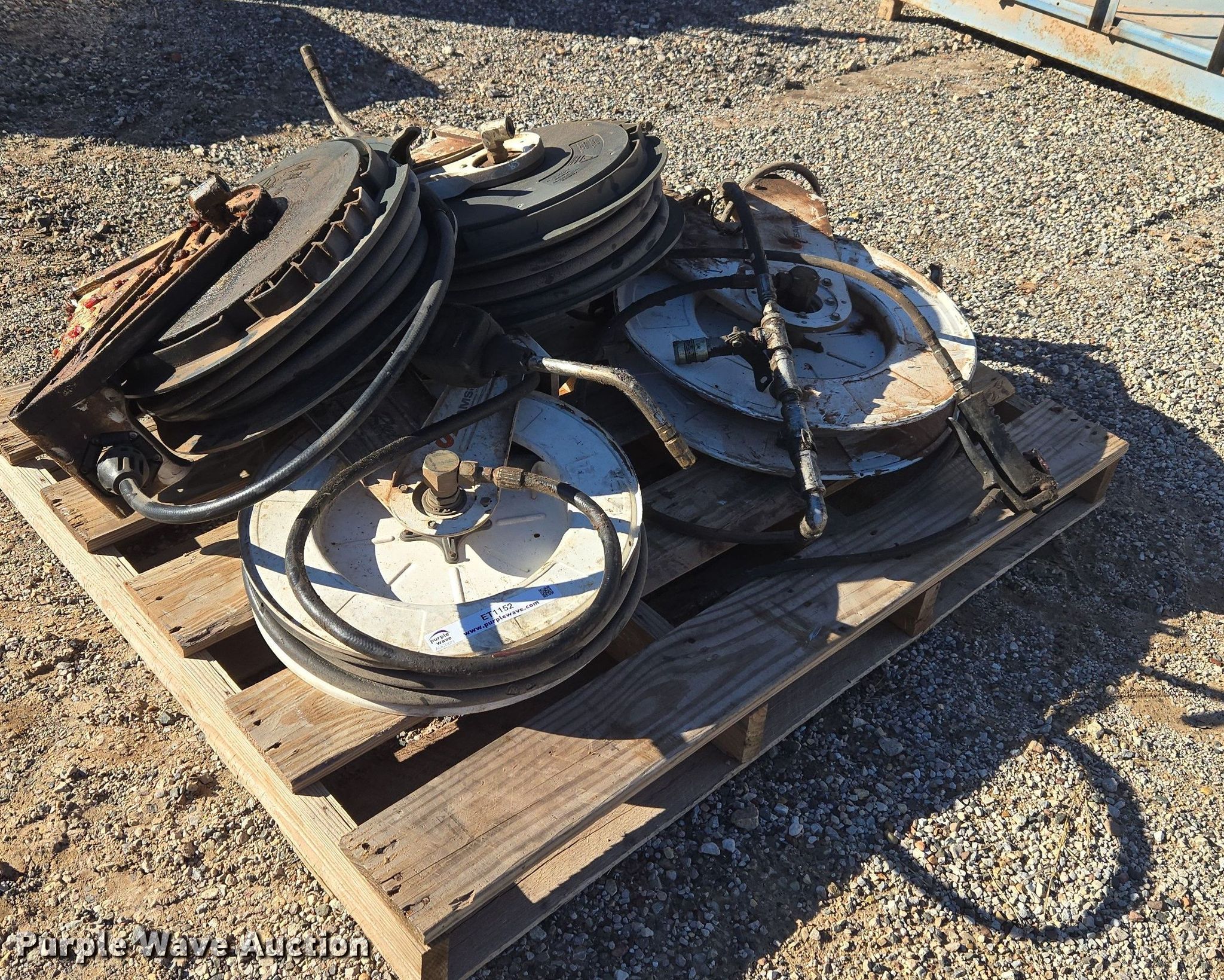 Purple Wave is selling a used Tools in Oklahoma. This item is a (4) Samson hose reels with the following: Hose, Lube gun