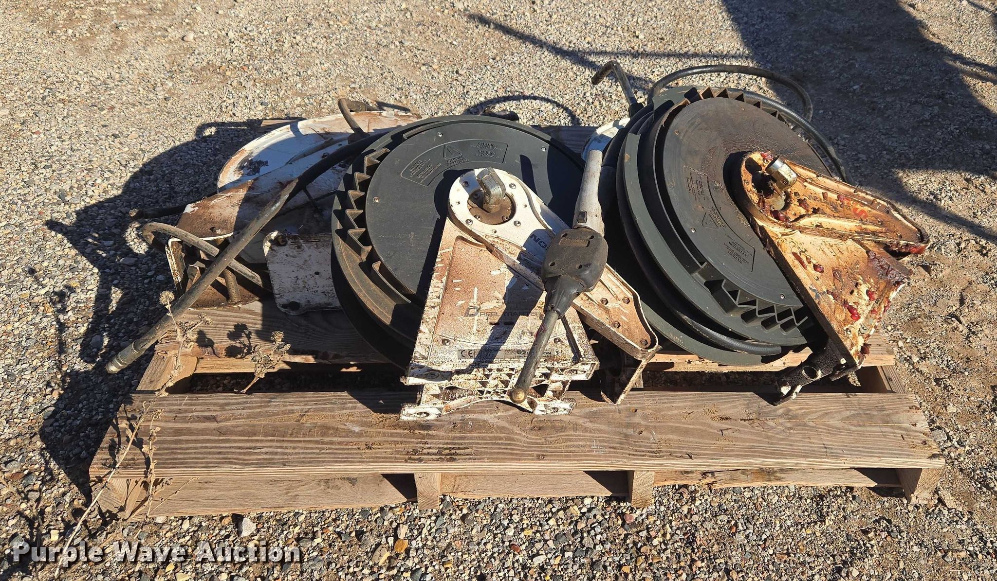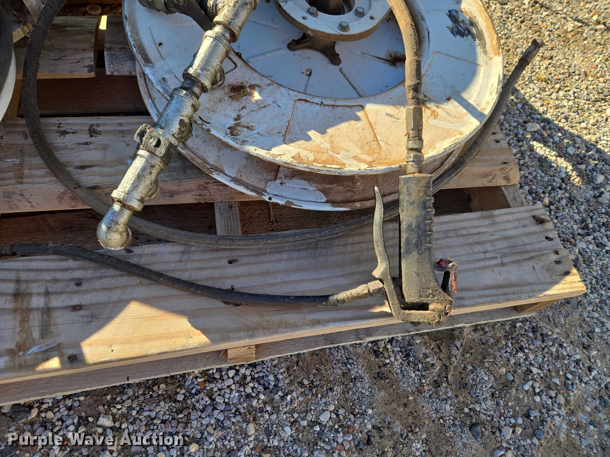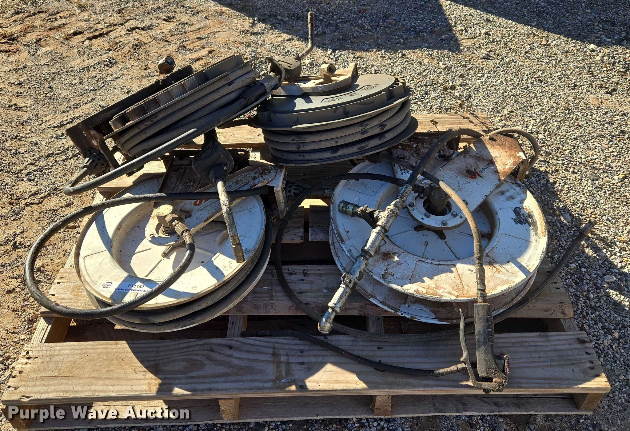 Purple Wave is selling a used Tools in Oklahoma. This item is a (4) Samson hose reels with the following: Hose, Lube gun