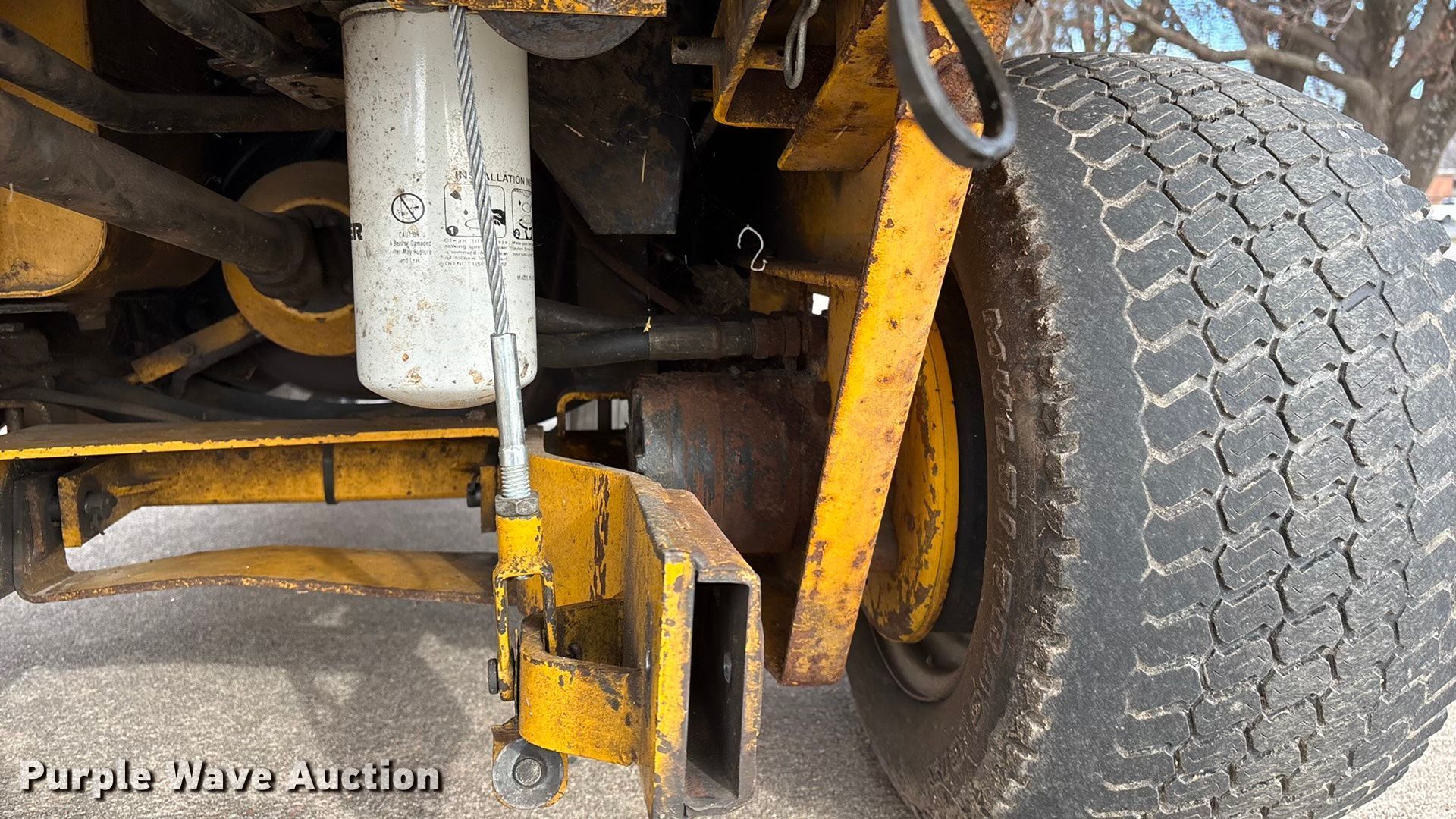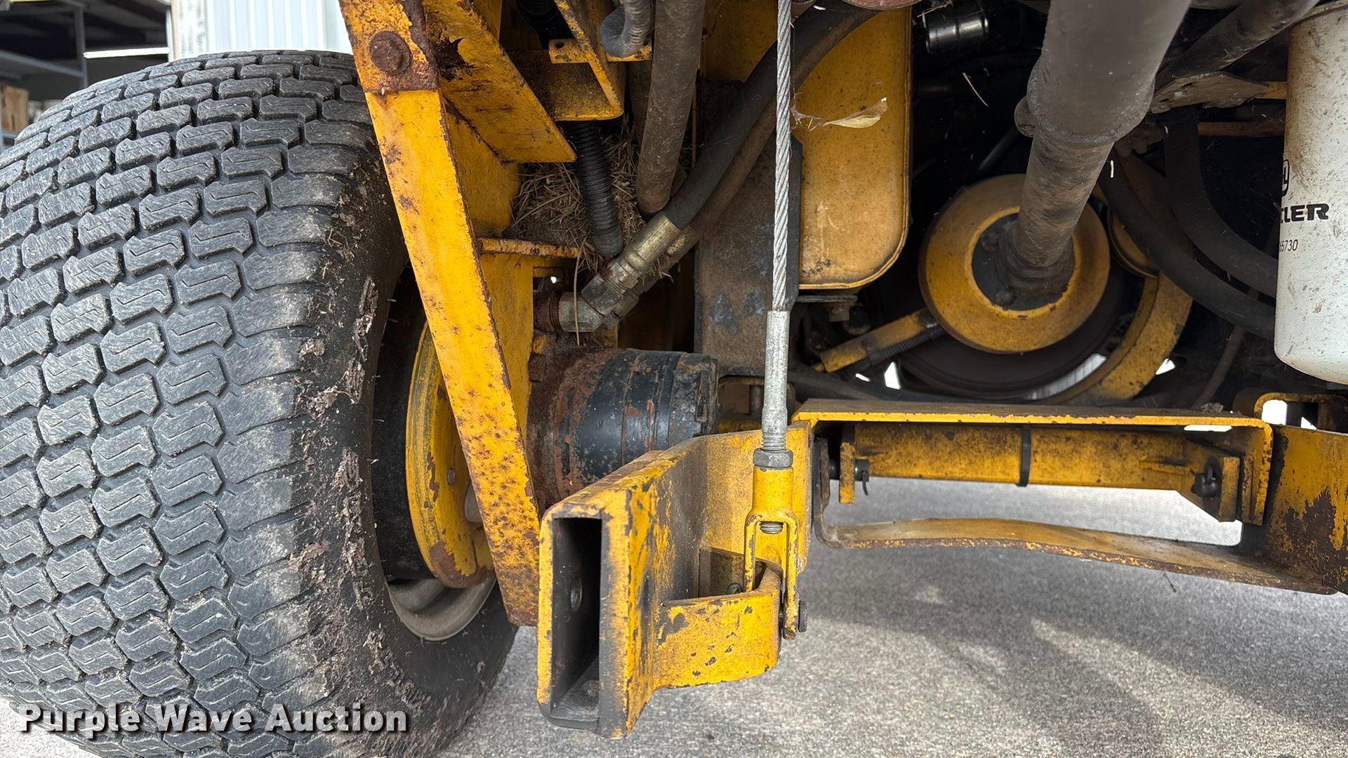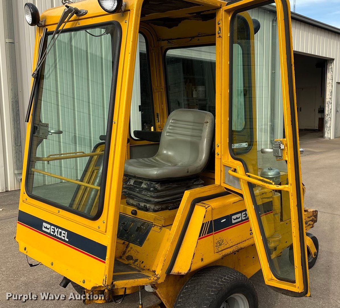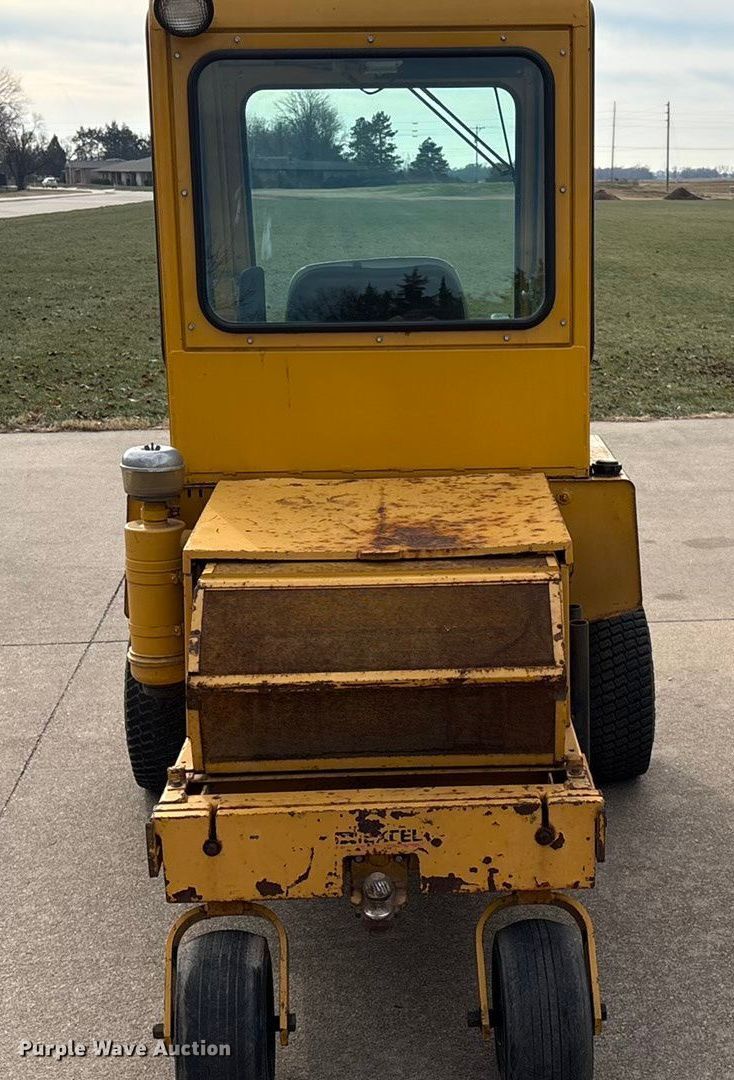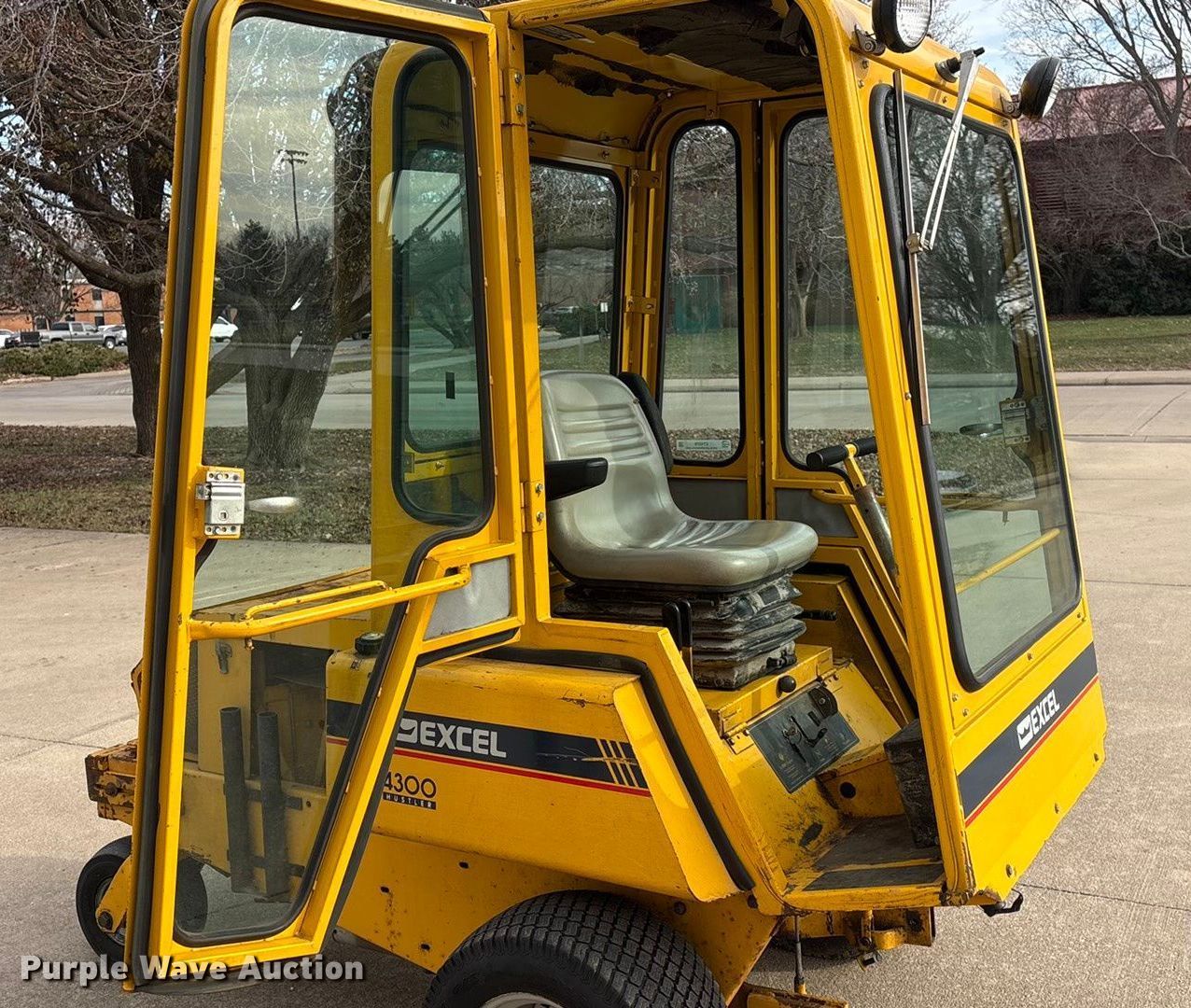 Excel 4300 Hustler lawn mower. Hours: 3,573 on meter, Serial: 4310012. Engine Ford VSG-4111-6005-A, Serial: 04208 L-17-RL, Cylinders: 4, Fuel type: Gas. Transmission Hydrostatic. Chassis PTO. Operators station Enclosed cab, Heat. Features Hydraulic remote sets Front: 1, Counter weights. Tires Front: 23x10.50-12, Rear: 13x6.50-6. Hesston College. Hesston, KS 67062