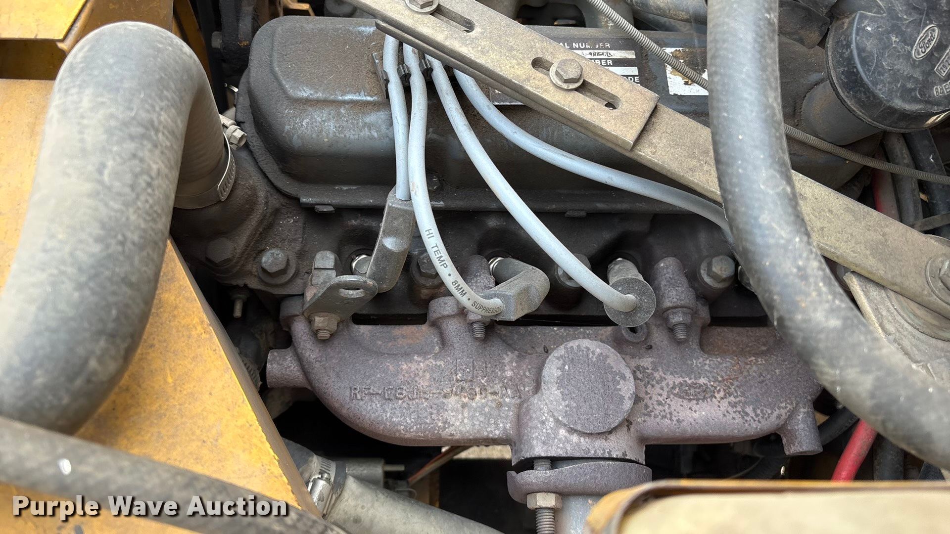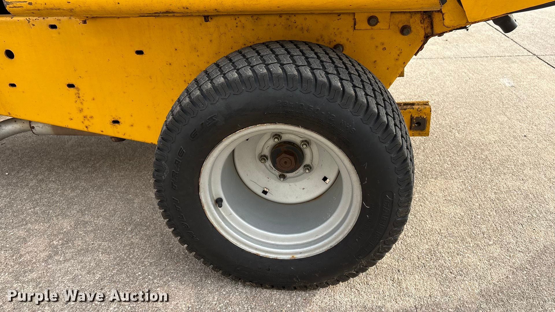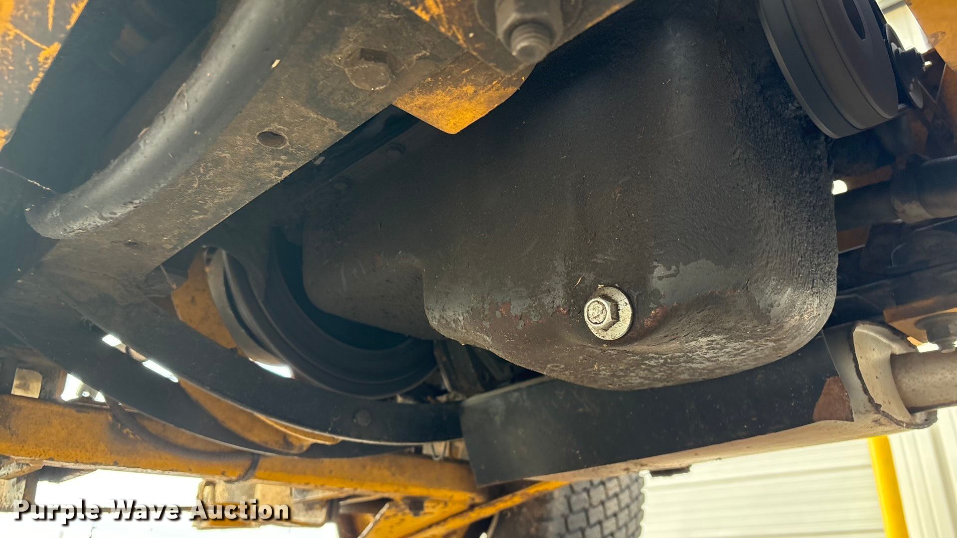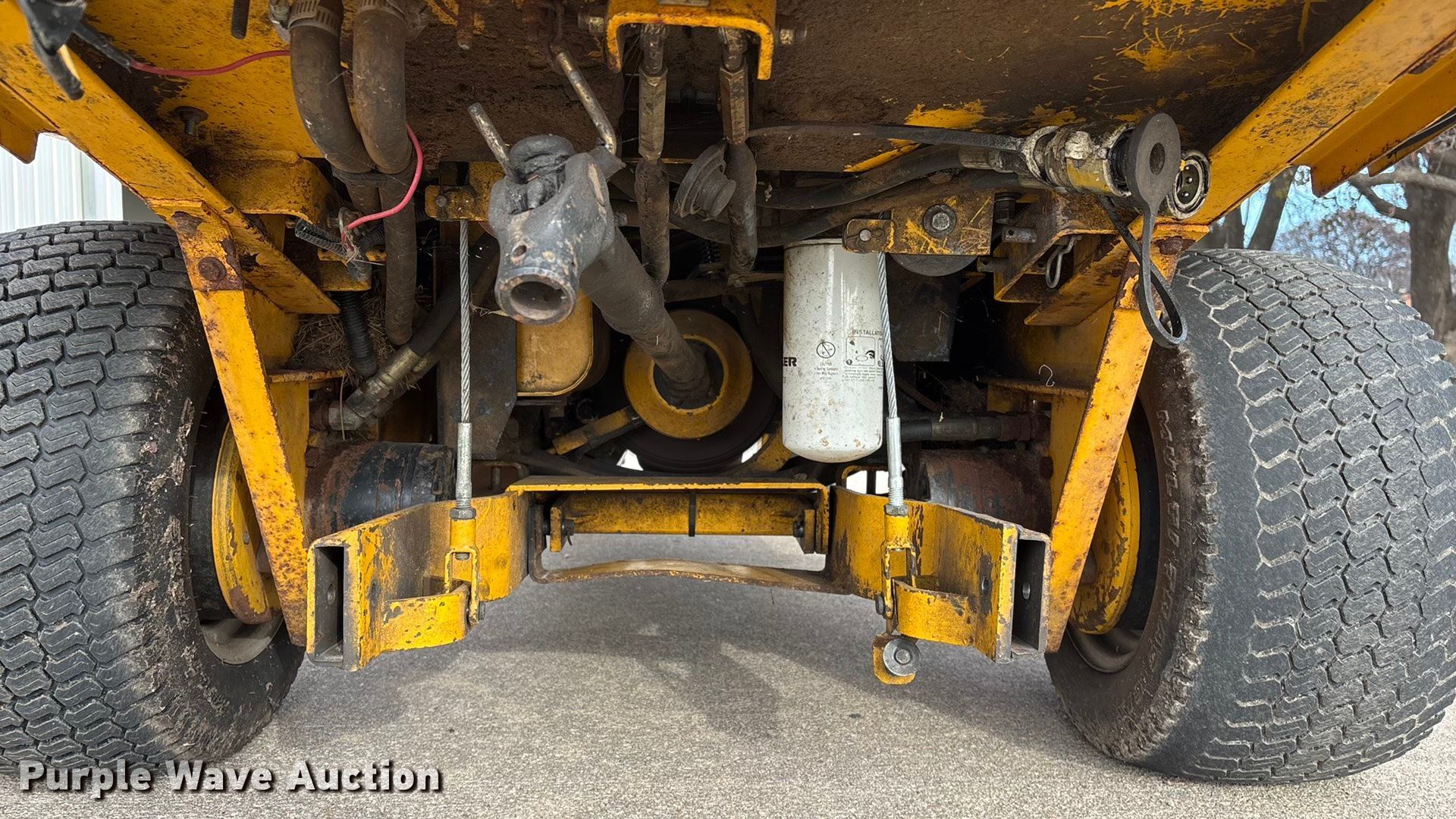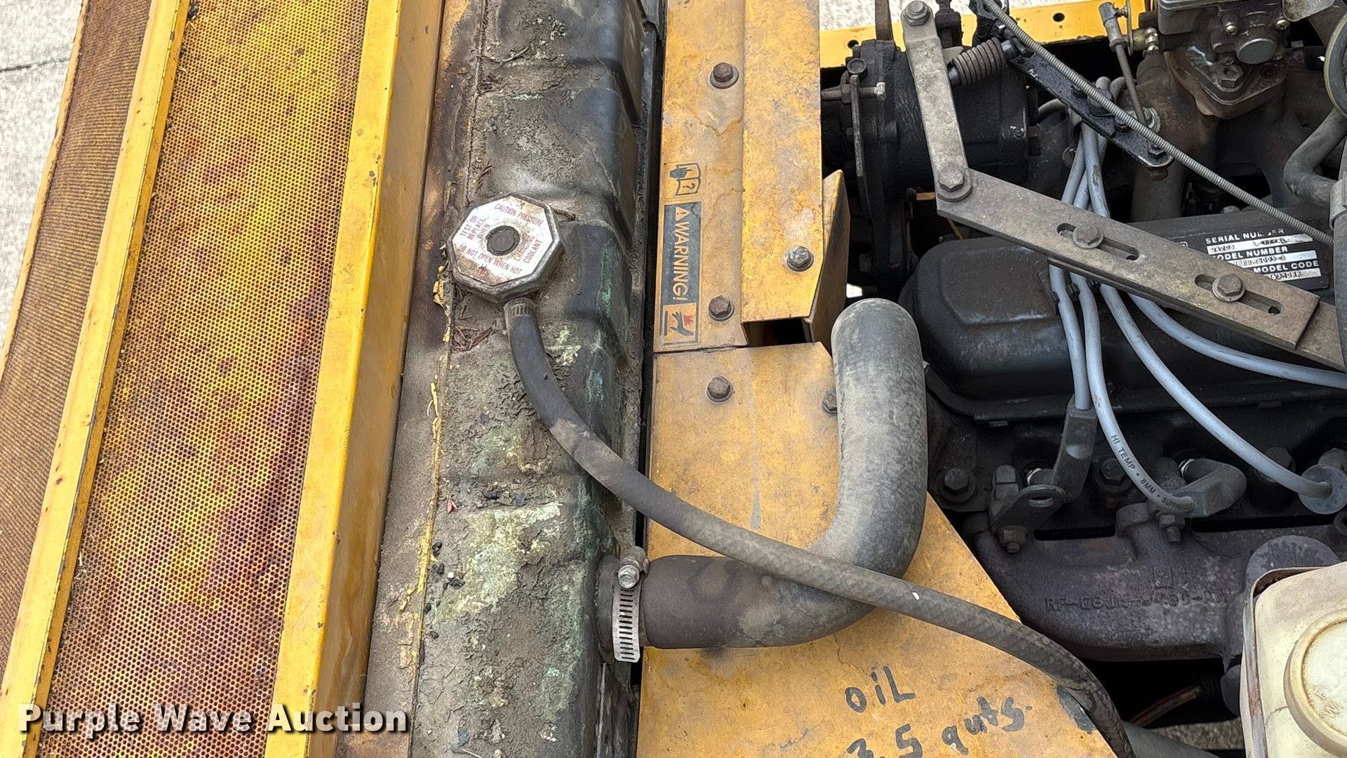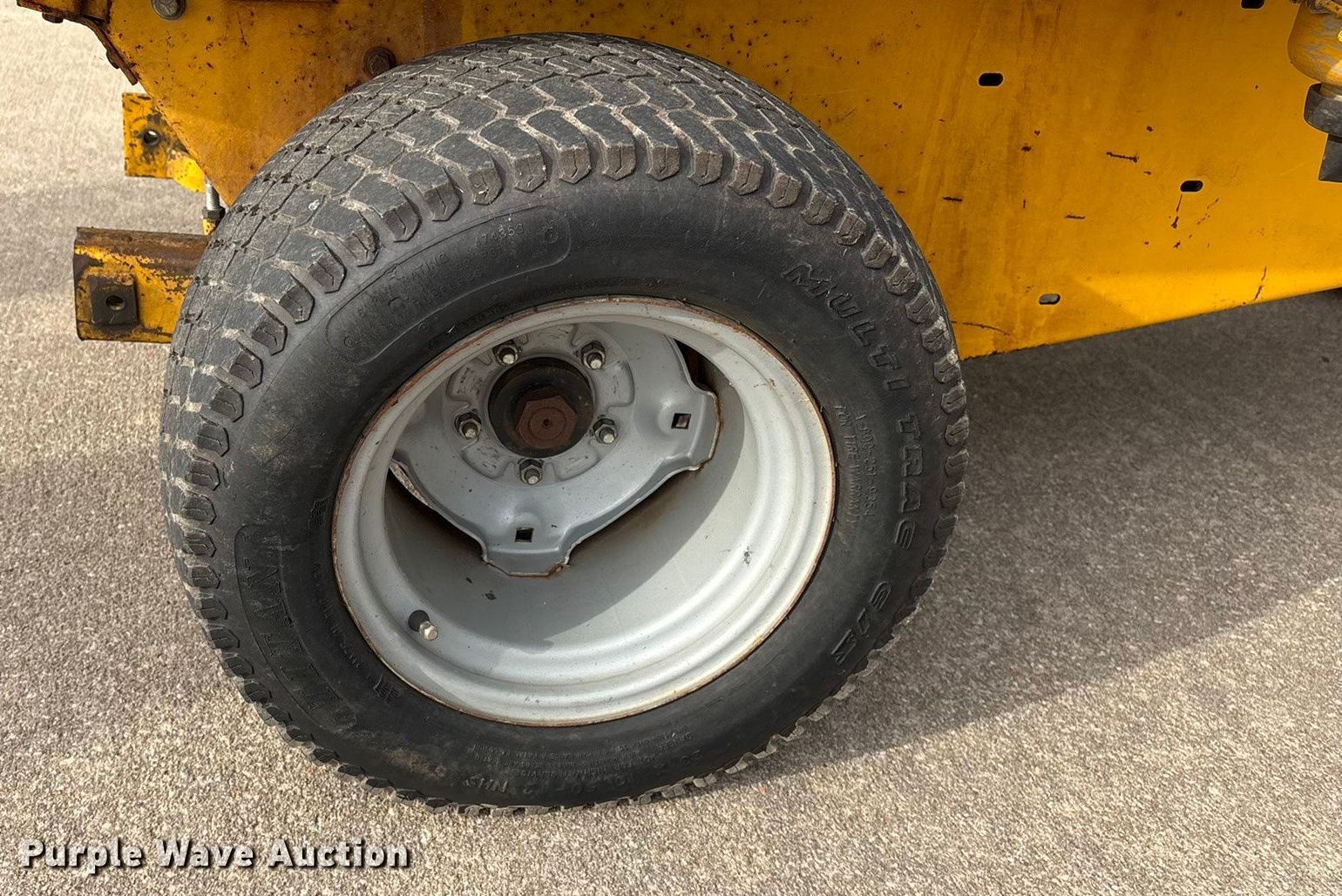 Excel 4300 Hustler lawn mower. Hours: 3,573 on meter, Serial: 4310012. Engine Ford VSG-4111-6005-A, Serial: 04208 L-17-RL, Cylinders: 4, Fuel type: Gas. Transmission Hydrostatic. Chassis PTO. Operators station Enclosed cab, Heat. Features Hydraulic remote sets Front: 1, Counter weights. Tires Front: 23x10.50-12, Rear: 13x6.50-6. Hesston College. Hesston, KS 67062