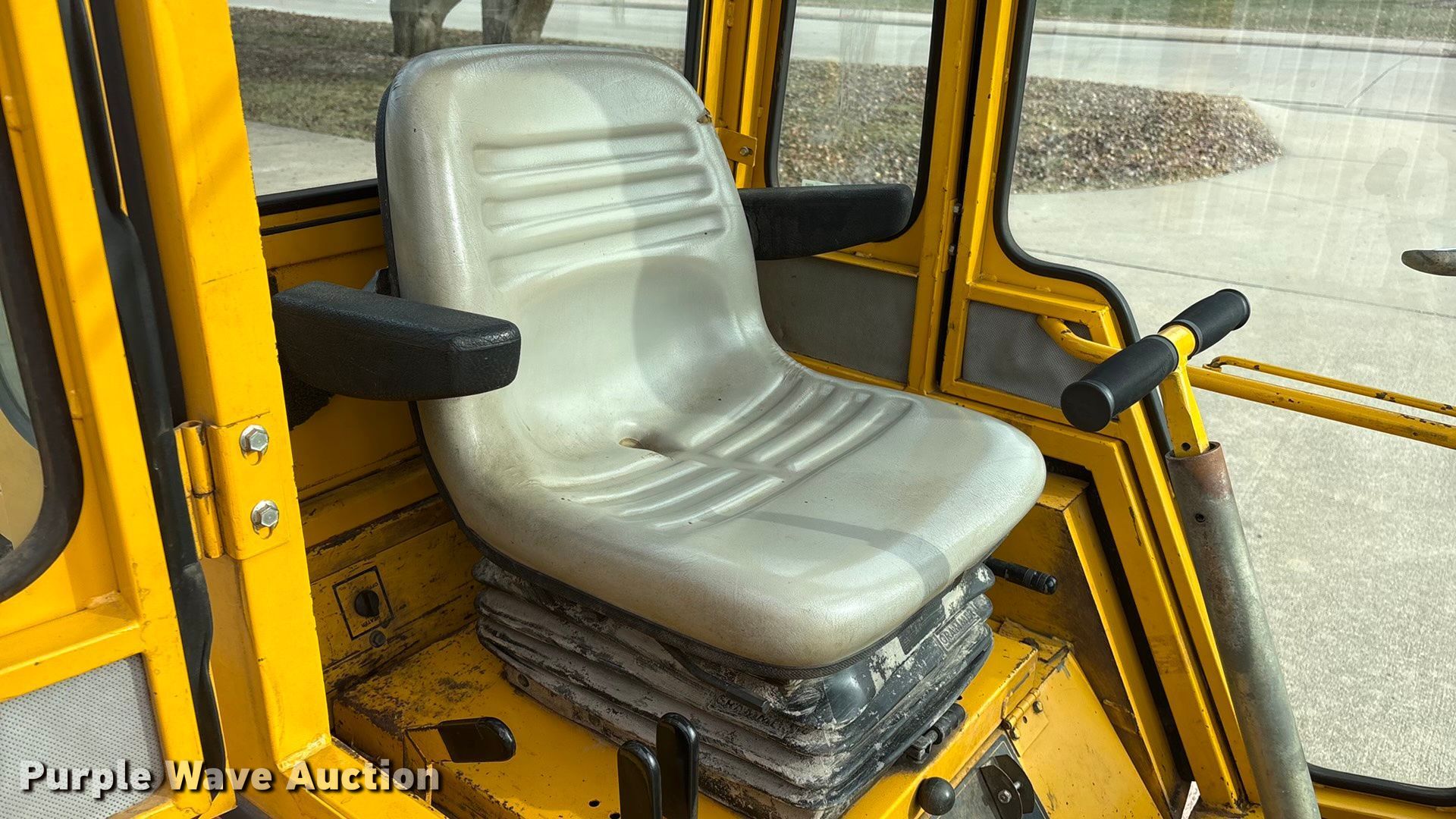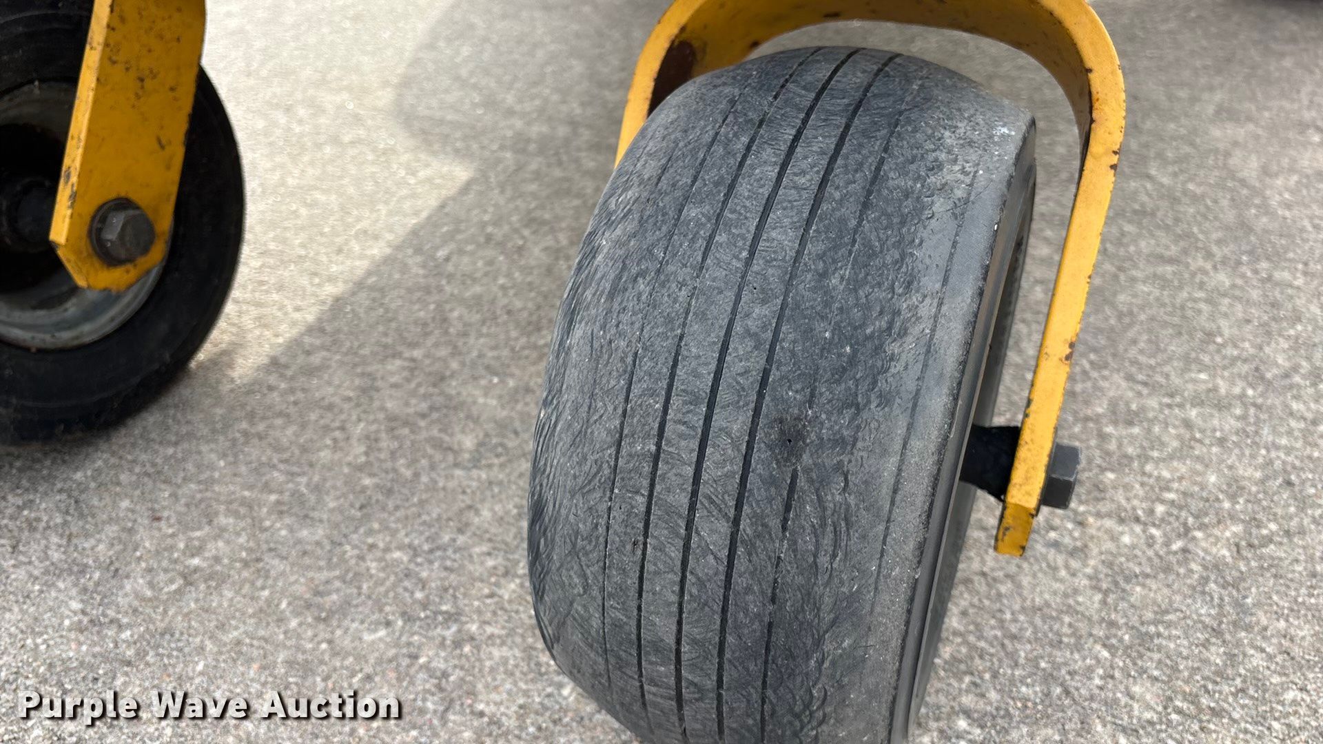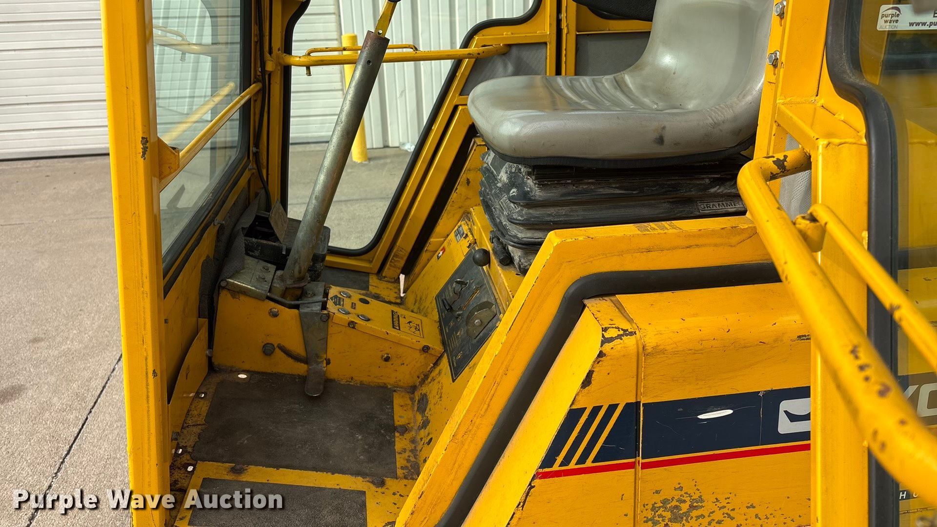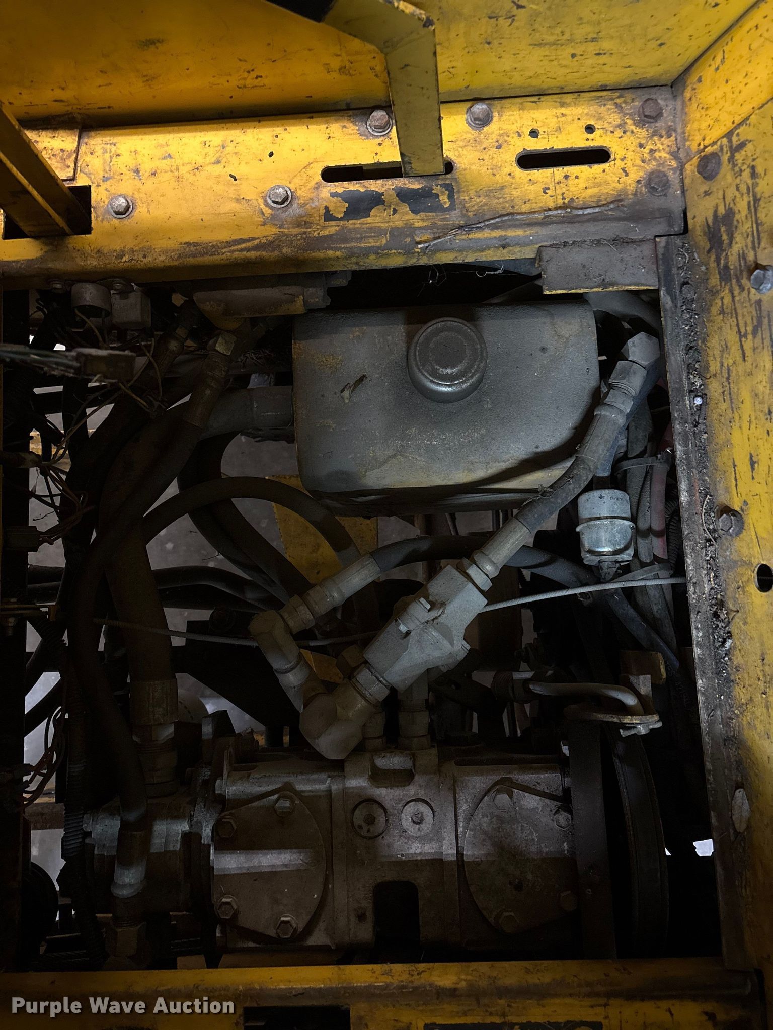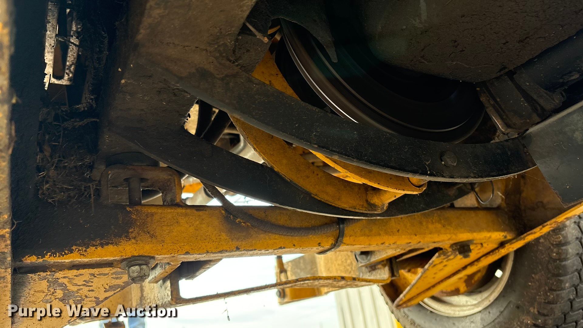 Excel 4300 Hustler lawn mower. Hours: 3,573 on meter, Serial: 4310012. Engine Ford VSG-4111-6005-A, Serial: 04208 L-17-RL, Cylinders: 4, Fuel type: Gas. Transmission Hydrostatic. Chassis PTO. Operators station Enclosed cab, Heat. Features Hydraulic remote sets Front: 1, Counter weights. Tires Front: 23x10.50-12, Rear: 13x6.50-6. Hesston College. Hesston, KS 67062
