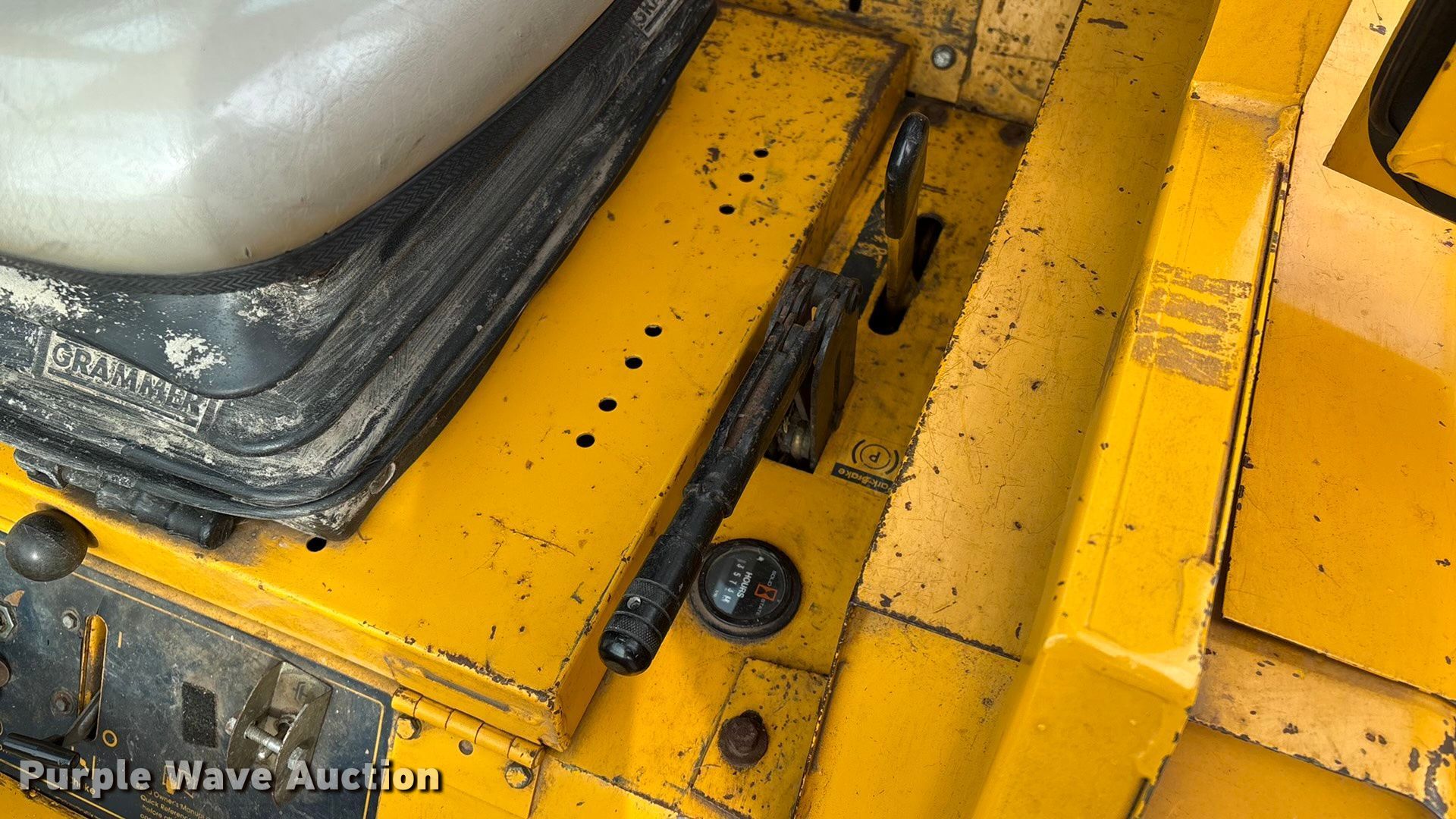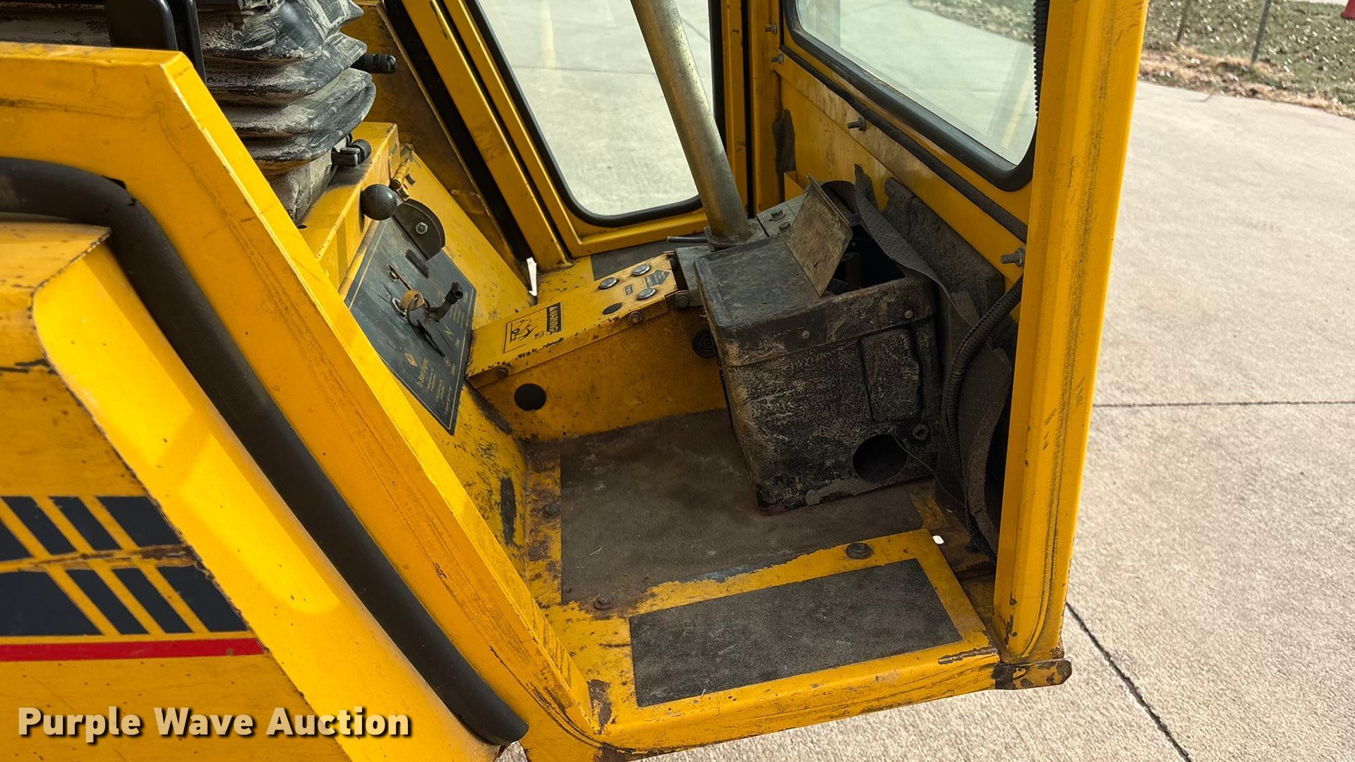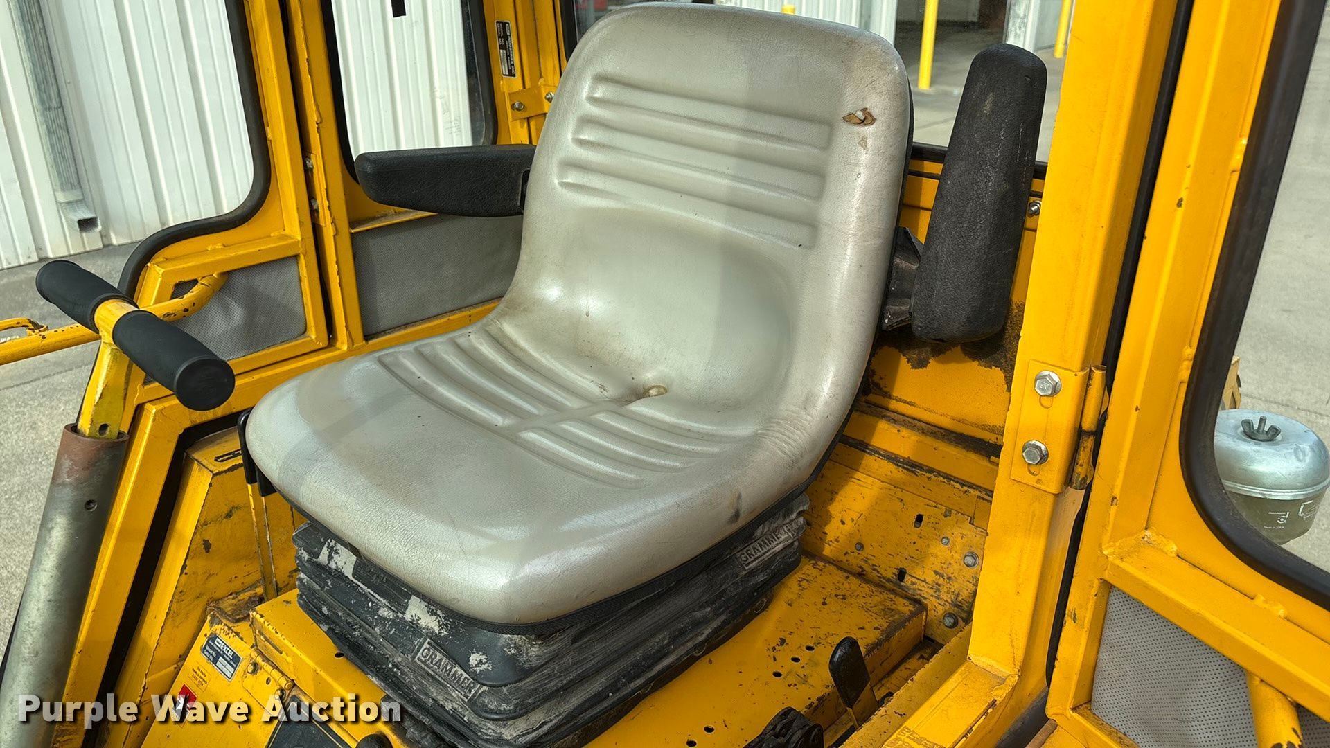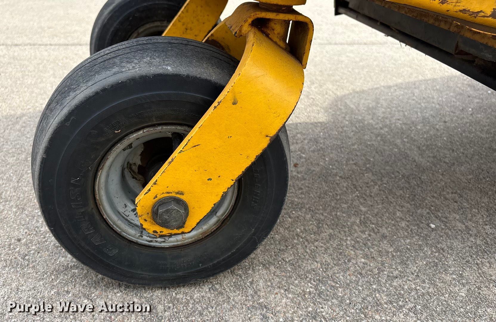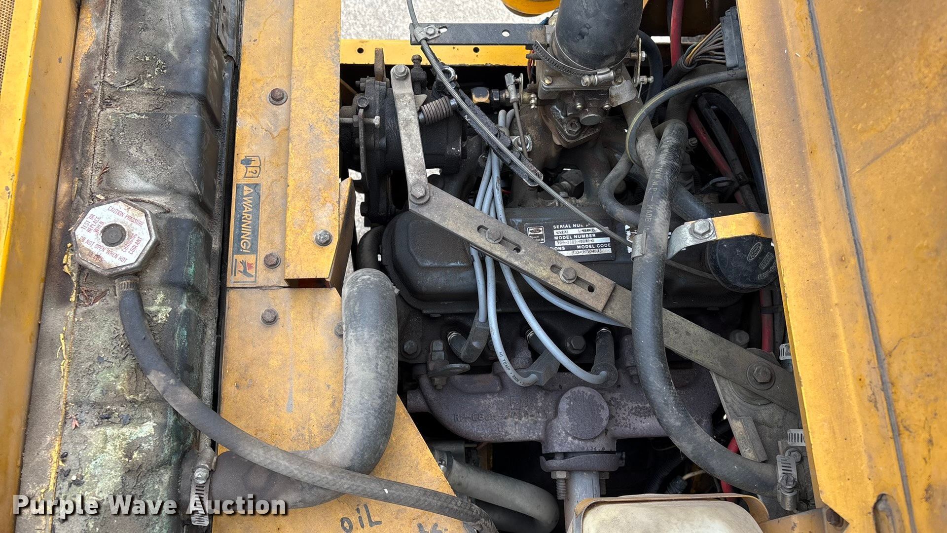 Excel 4300 Hustler lawn mower. Hours: 3,573 on meter, Serial: 4310012. Engine Ford VSG-4111-6005-A, Serial: 04208 L-17-RL, Cylinders: 4, Fuel type: Gas. Transmission Hydrostatic. Chassis PTO. Operators station Enclosed cab, Heat. Features Hydraulic remote sets Front: 1, Counter weights. Tires Front: 23x10.50-12, Rear: 13x6.50-6. Hesston College. Hesston, KS 67062