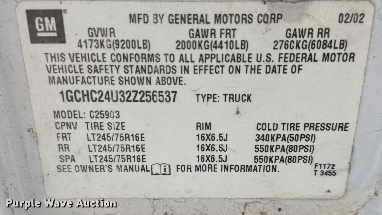 - VIN: 1GCHC24U32Z256537