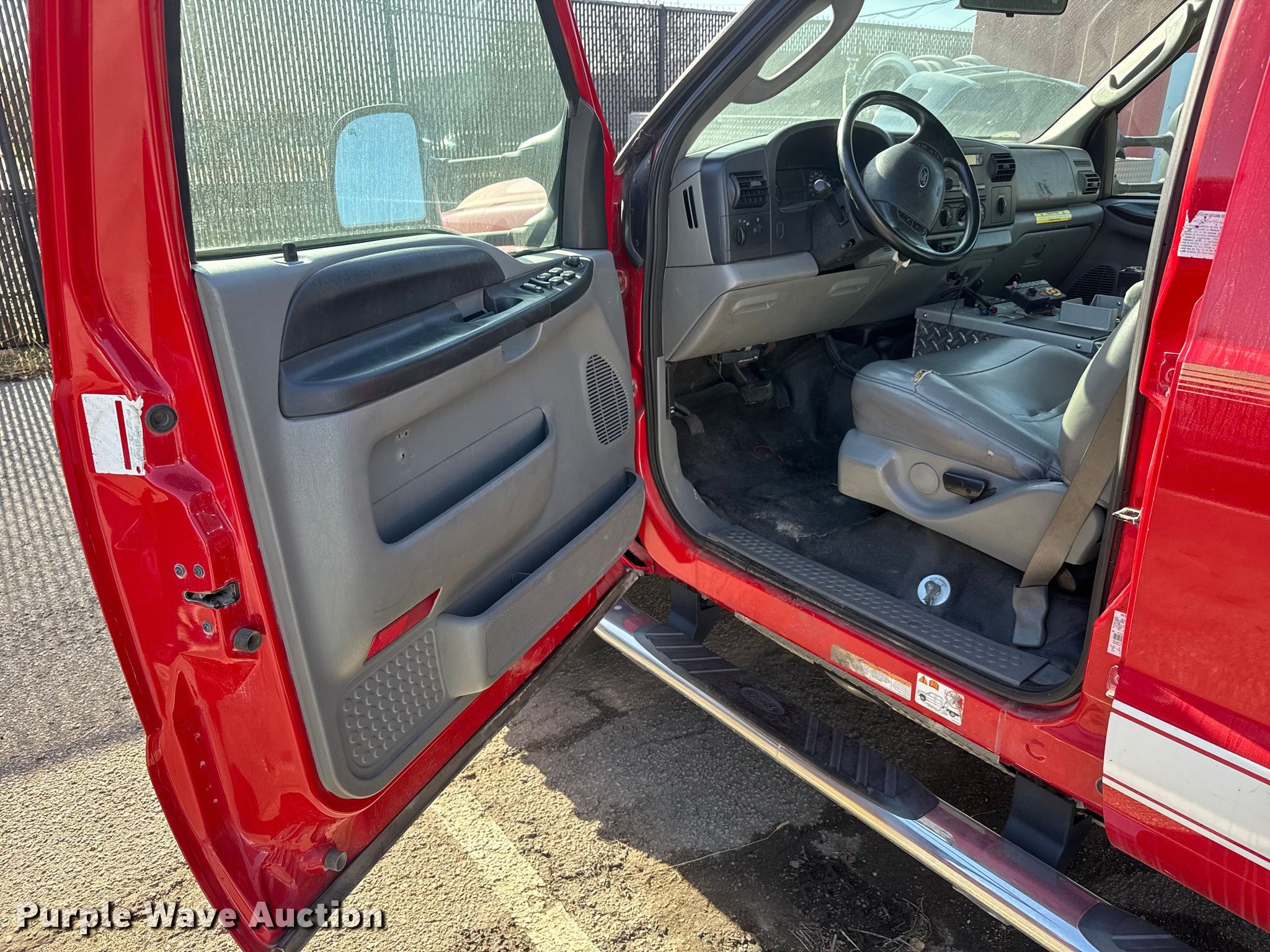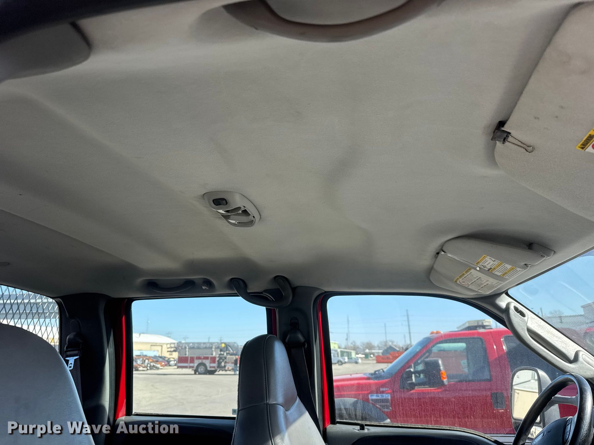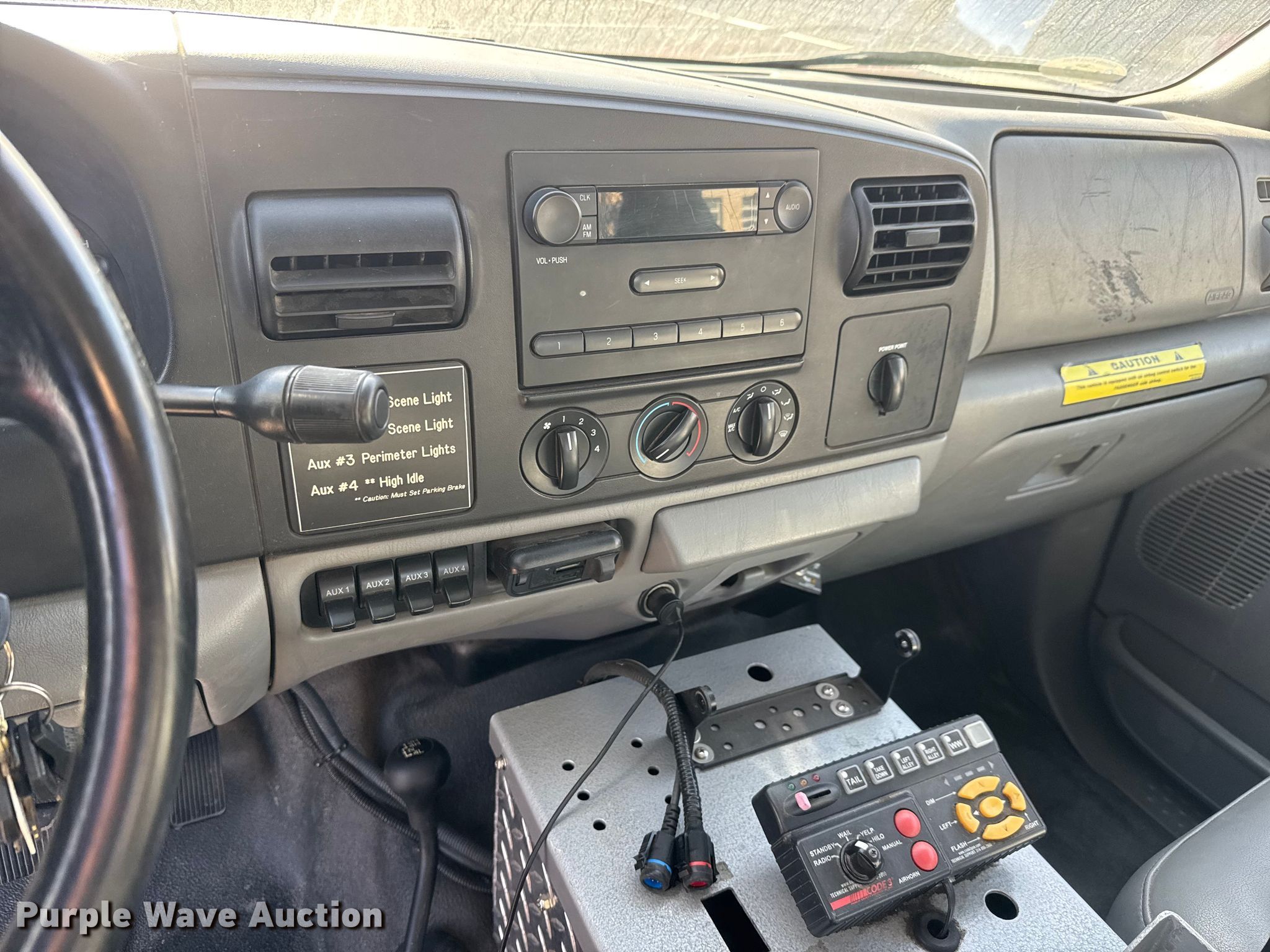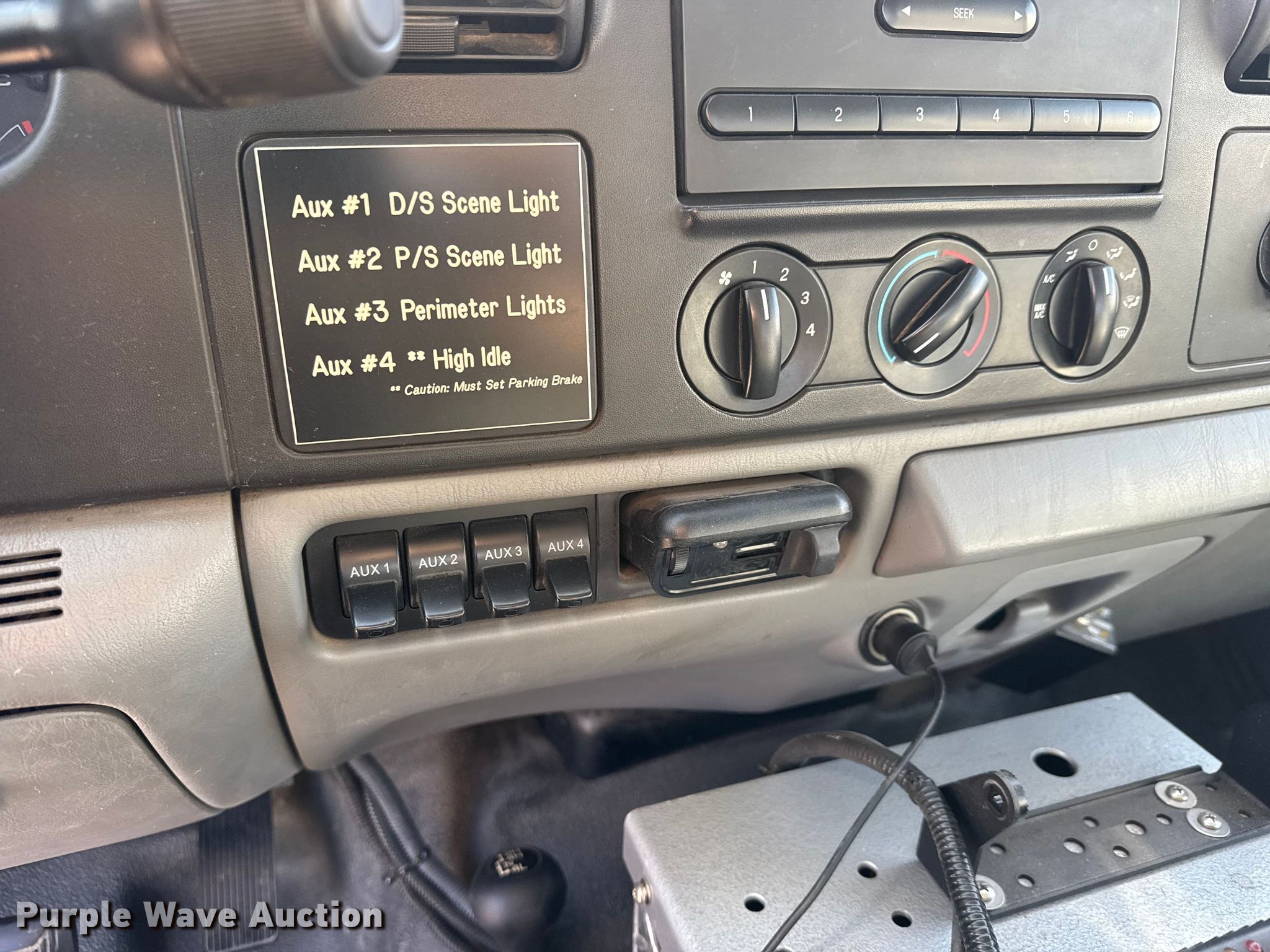 2007 Ford F550 Crew Cab flatbed pickup truck. Miles: 116,563 on odometer, Hours: 5,017 on meter, VIN: 1FDAW57P97EA85447. Engine Displacement: 6.0L, Cylinders: 8, Fuel type: Diesel. Transmission Automatic. Chassis Four wheel drive, Axles: Single, Suspension: Spring, Brakes: Hydraulic, GVWR: 17,950 lbs. Interior AC, Heat, Heated mirrors, Power windows, Power locks, Cruise control, Auxiliary controls, Brake controller. Features Bed Flatbed, Winkel, Length: 9', Width: 96" Removable sides, End gate lift Tommy Gate Tommy Lift, Capacity: 1,600 lbs, Winch. Tires Size: 225/70R19.5. Notes Fuel system issues Unit must be towed or hauled, Unknown operating condition. Kansas title. Title distribution may be delayed up to 14 days from verification of funds. Sedgwick County Fire Department. Wichita, KS 67213