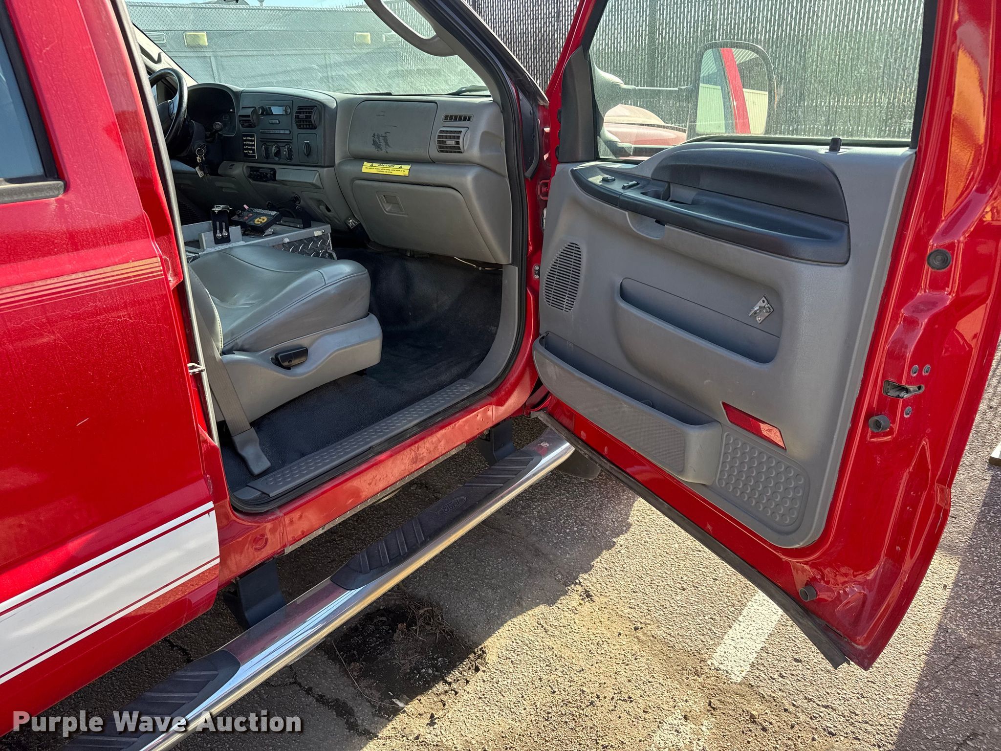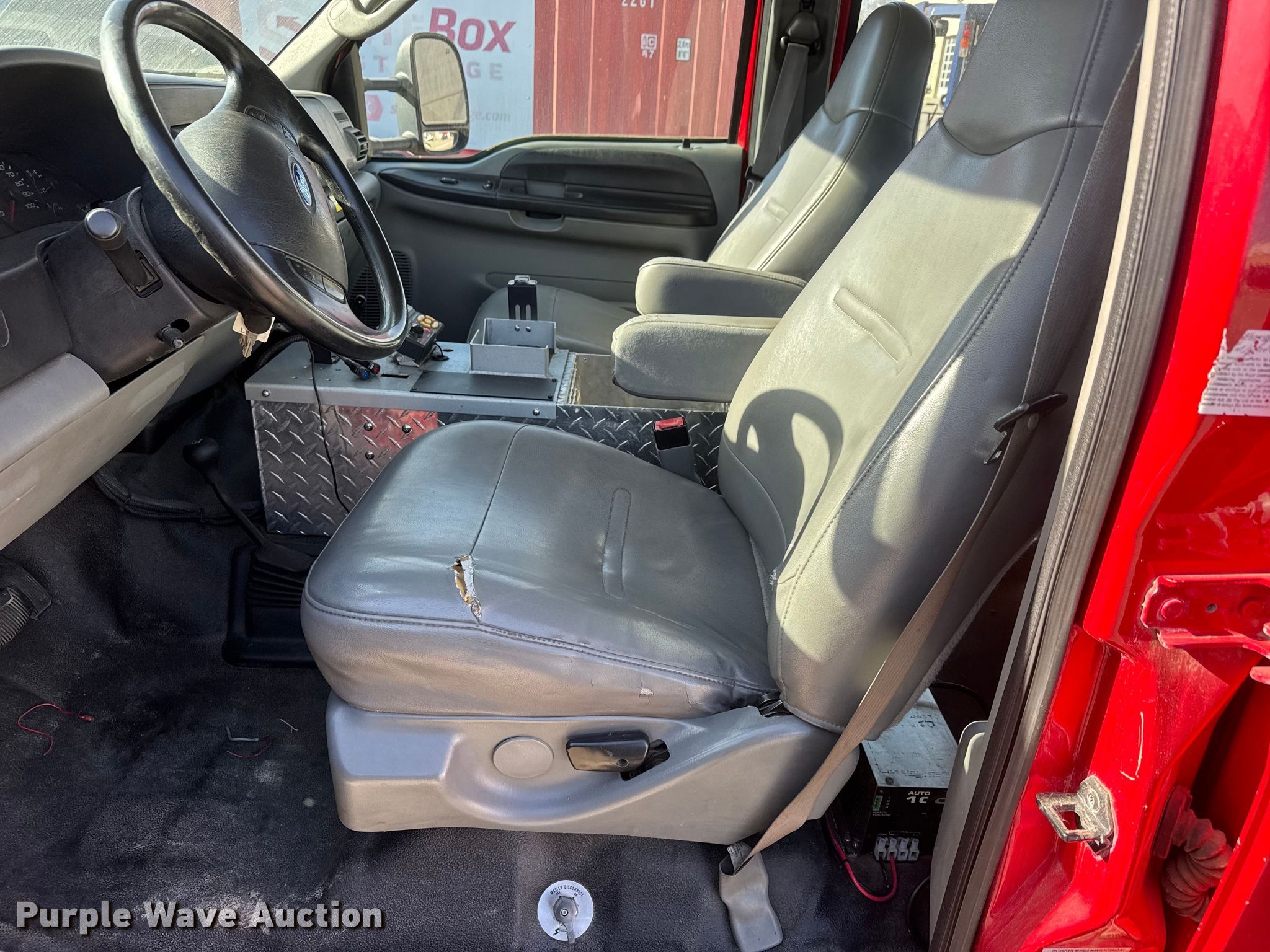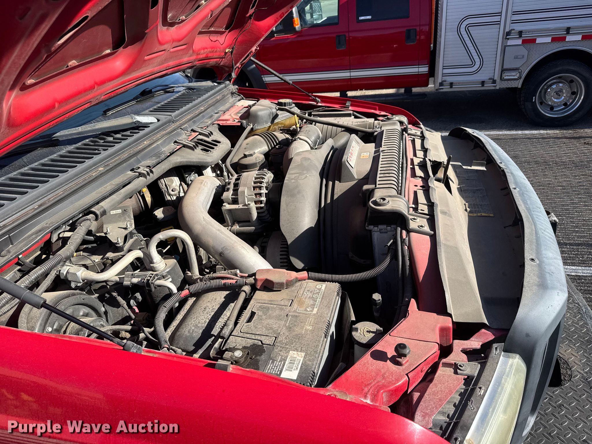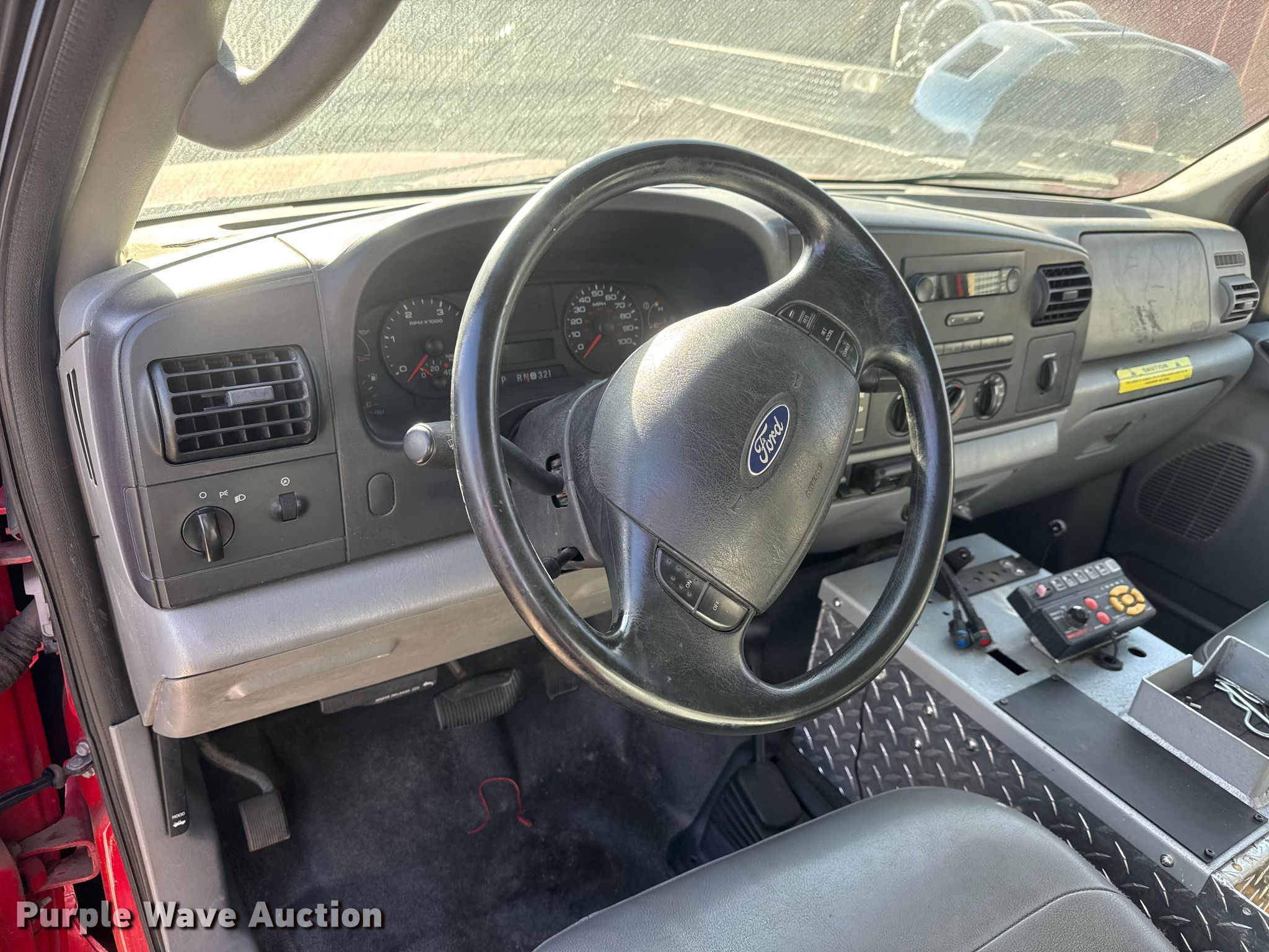 2007 Ford F550 Crew Cab flatbed pickup truck. Miles: 116,563 on odometer, Hours: 5,017 on meter, VIN: 1FDAW57P97EA85447. Engine Displacement: 6.0L, Cylinders: 8, Fuel type: Diesel. Transmission Automatic. Chassis Four wheel drive, Axles: Single, Suspension: Spring, Brakes: Hydraulic, GVWR: 17,950 lbs. Interior AC, Heat, Heated mirrors, Power windows, Power locks, Cruise control, Auxiliary controls, Brake controller. Features Bed Flatbed, Winkel, Length: 9', Width: 96" Removable sides, End gate lift Tommy Gate Tommy Lift, Capacity: 1,600 lbs, Winch. Tires Size: 225/70R19.5. Notes Fuel system issues Unit must be towed or hauled, Unknown operating condition. Kansas title. Title distribution may be delayed up to 14 days from verification of funds. Sedgwick County Fire Department. Wichita, KS 67213