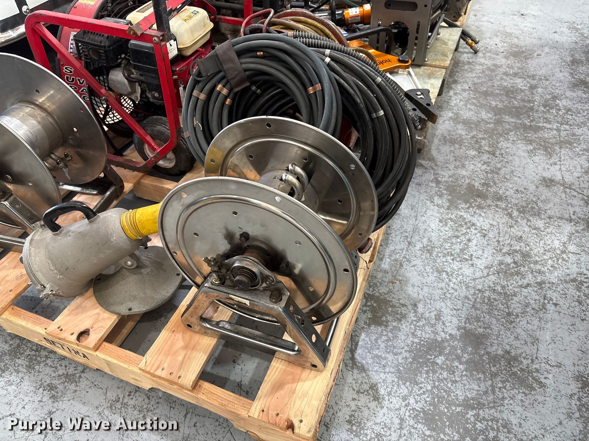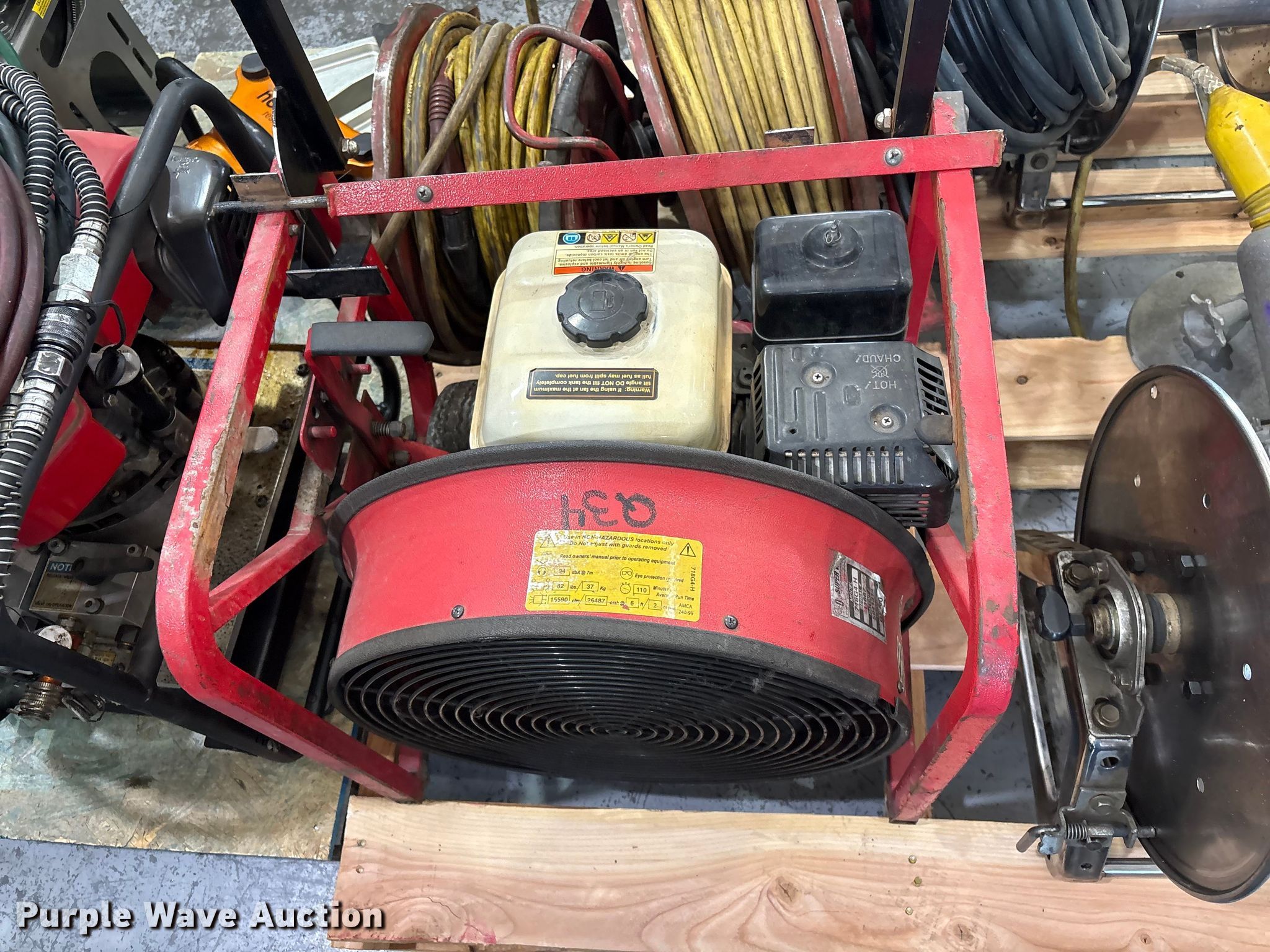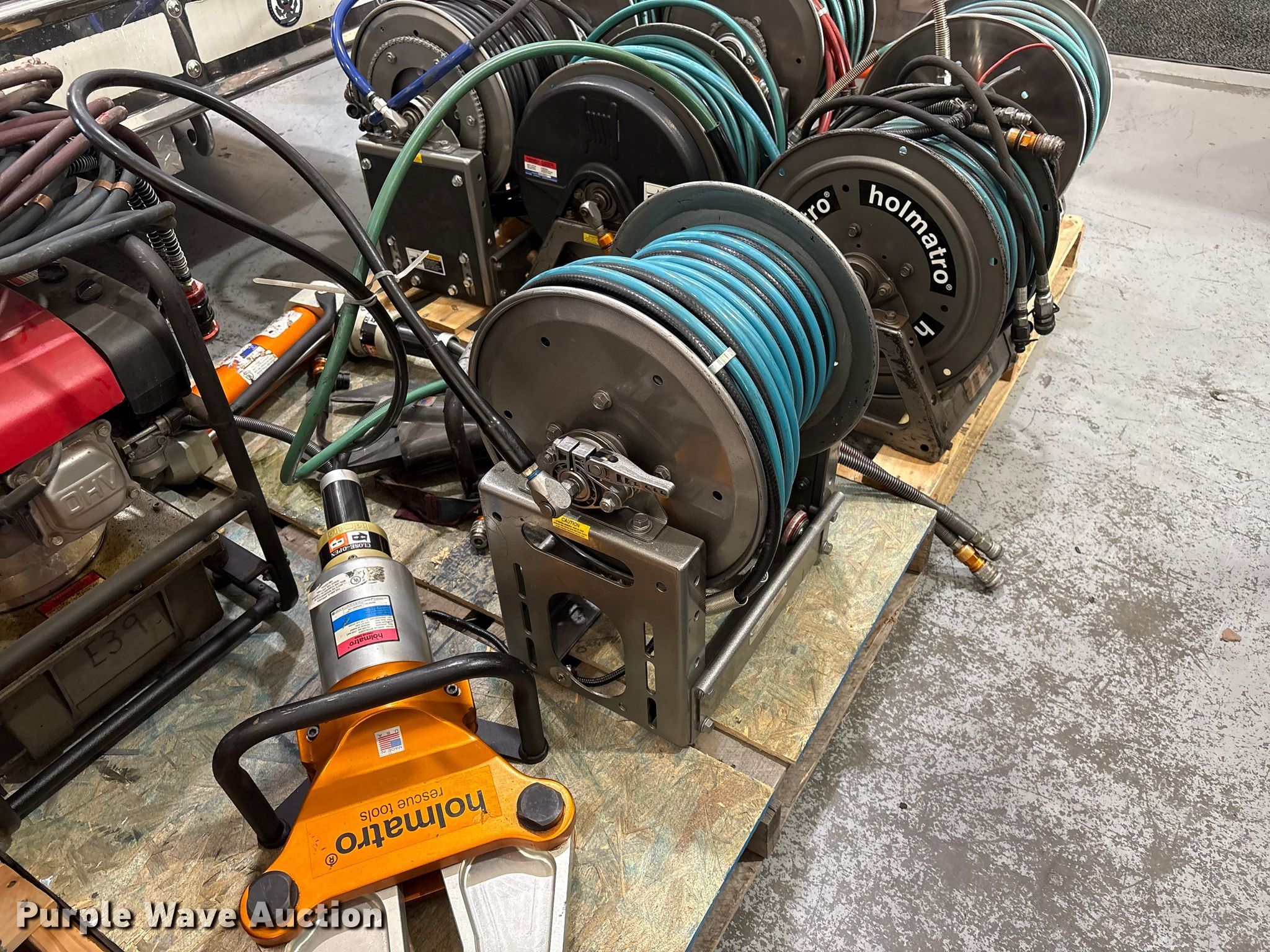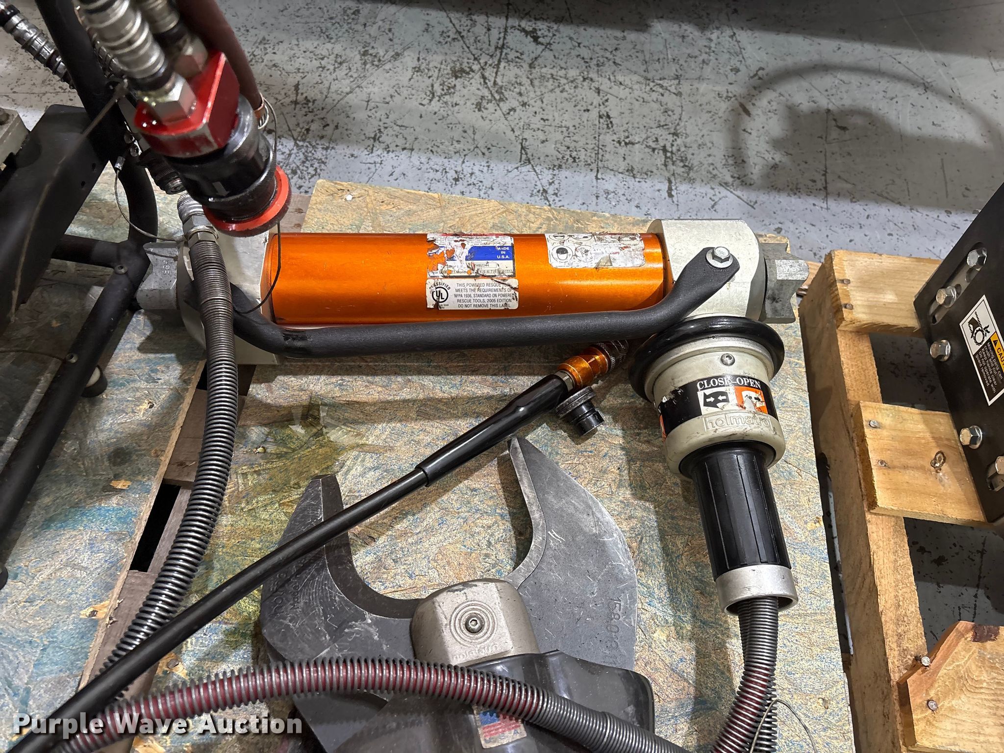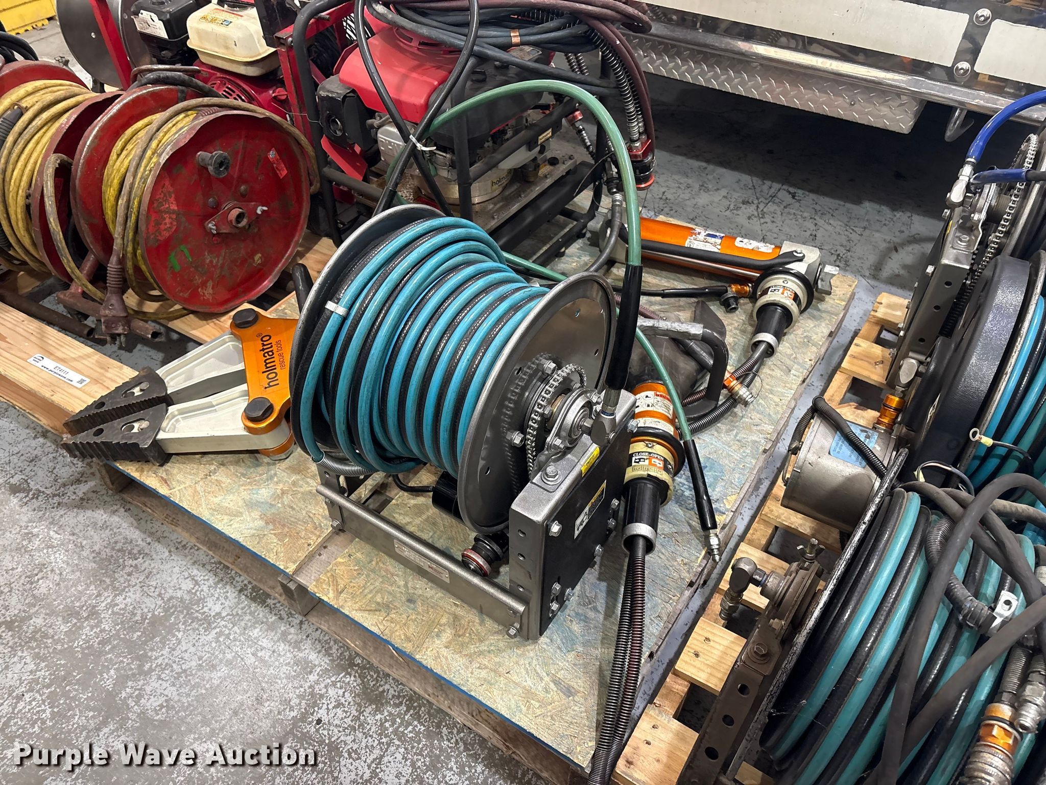 Purple Wave is selling a used Tools in Kansas. This item is a Jaws of life equipment with the following: Hollmatro DPU60PH hydraulic pump, Spreader, Ram, Cutter, (11) hose reels, Approx. 14 hydraulic hoses, Super Vac Model 718G4-H fan, Honda engine, Fuel type: Gas, HP: 6.5,