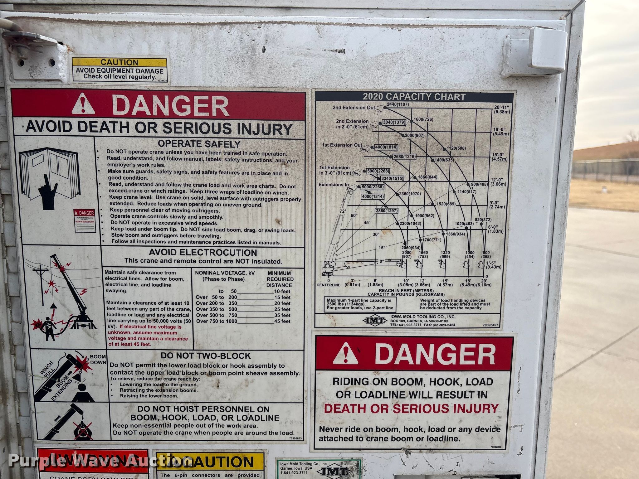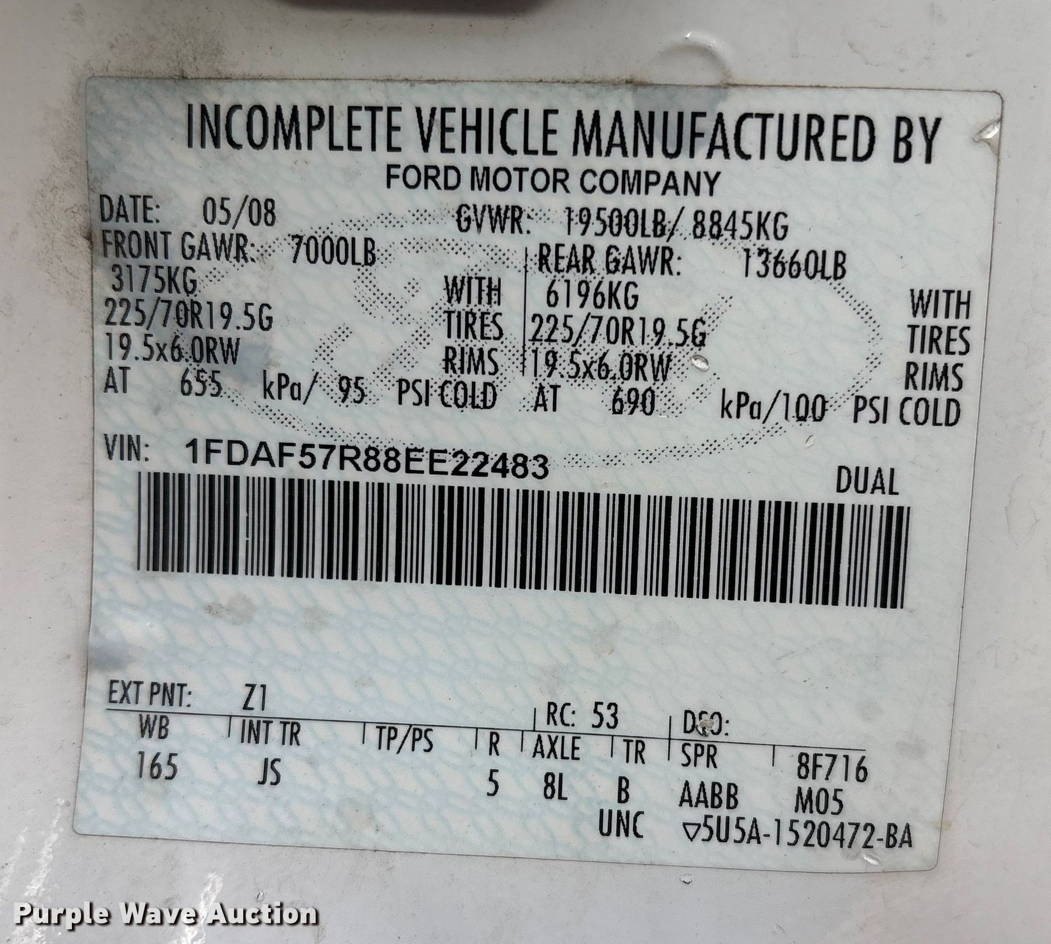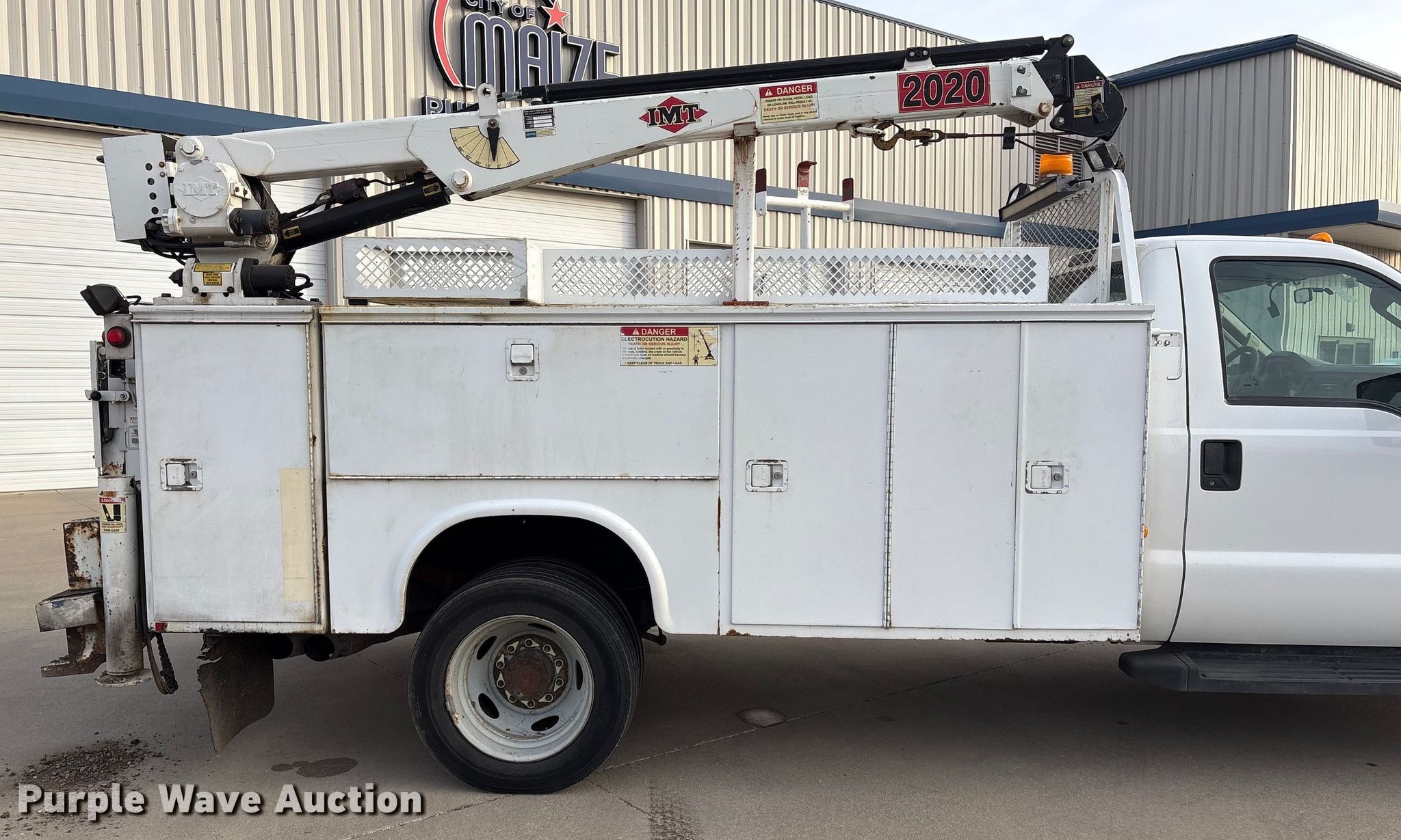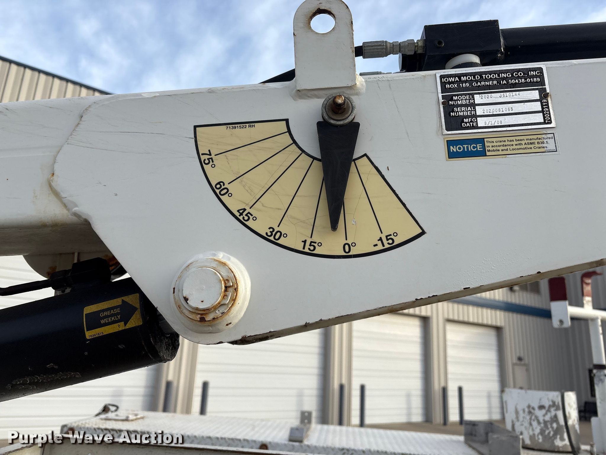 2008 Ford F550 utility / service truck. Miles: 160,484 on odometer, Hours: 8,441 on meter, VIN: 1FDAF57R88EE22483. Engine Displacement: 6.4L, Cylinders: 8, Fuel type: Diesel. Transmission Automatic. Chassis Four wheel drive, Axles: Single, Suspension: Spring, Brakes: Hydraulic, GVWR: 19,500 lbs. Interior AC, Heat, Heated mirrors, Power windows, Power locks, Cruise control, Auxiliary controls, Brake controller. Features Bed Hook lift bed, Knapheide 6132DL-38J, Serial: 20080901-0129488, Length: 11' 5", Width: 94", Crane Iowa Mold Tooling 2020 J610144, Maximum boom length: 20' Maximum lift capacity: 5,000 lbs, End gate lift Tommy Gate SUW54-1340S27TP00, Capacity: 1,300 lbs. Tires Size: 225/70R19.5. Notes Hydraulic leak, Oil leak, Non-operational AC. Kansas title. Title distribution may be delayed up to 14 days from verification of funds. Maize, KS 67101