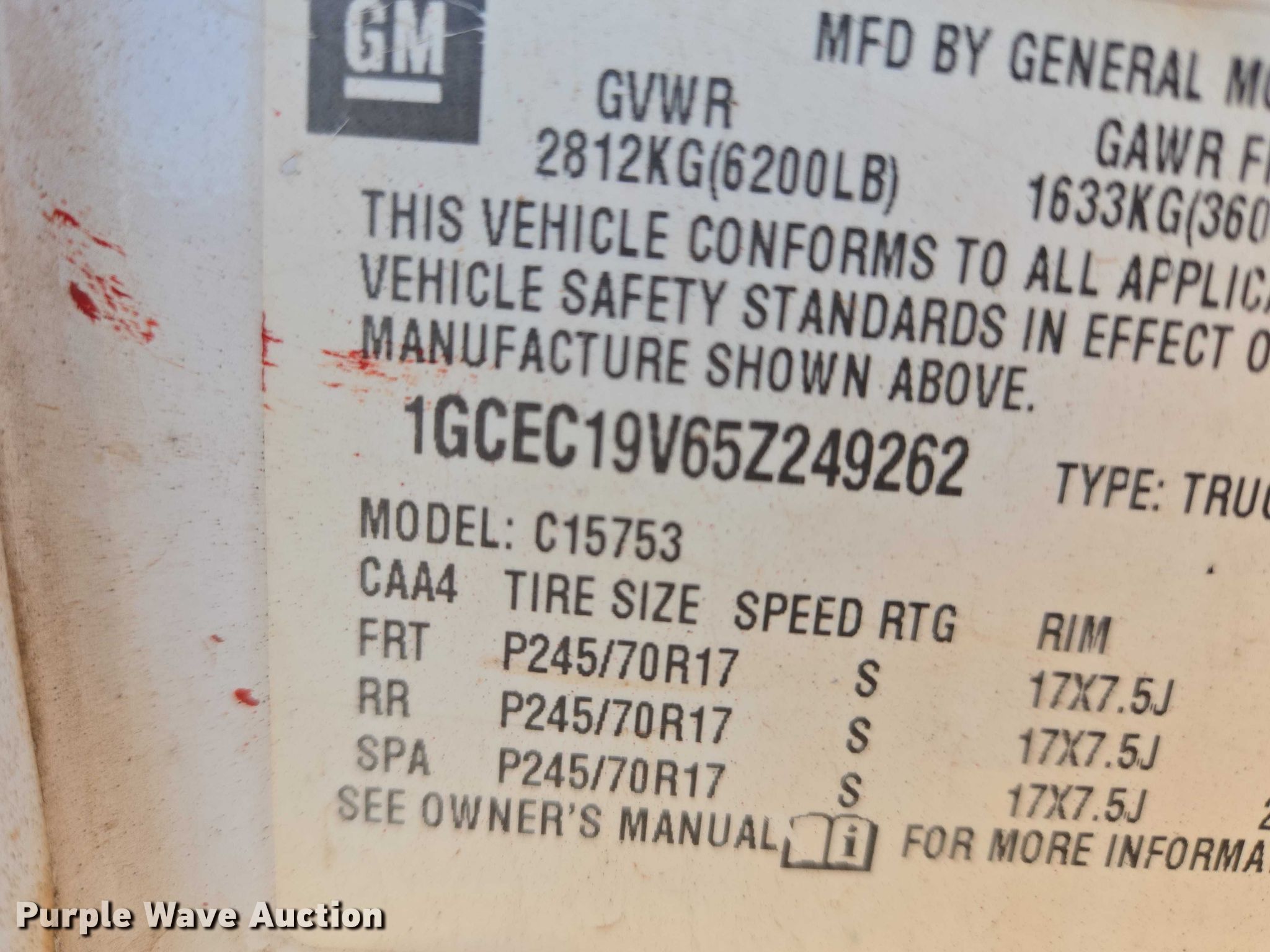 - VIN: 1GCEC19V65Z249262