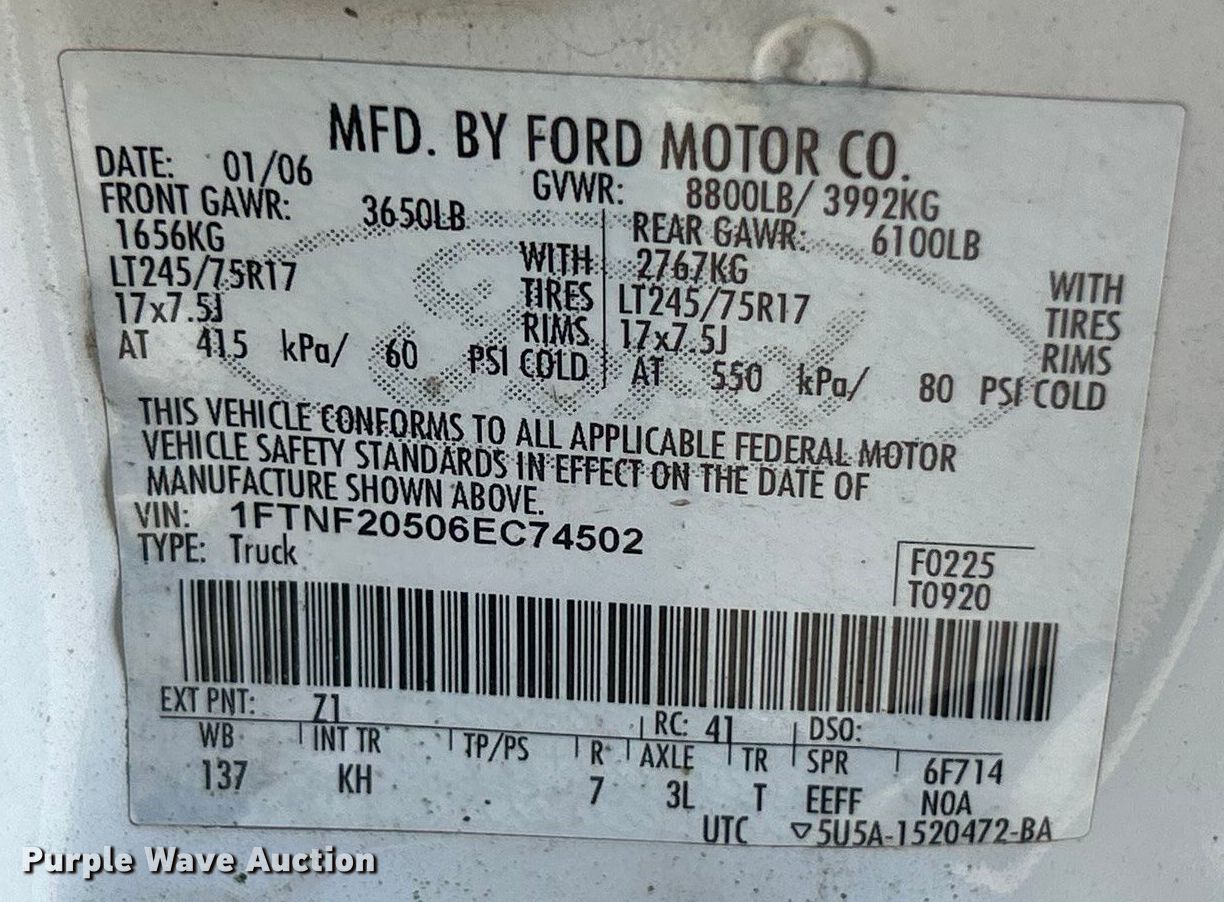- VIN: 1FTNF20506EC74502