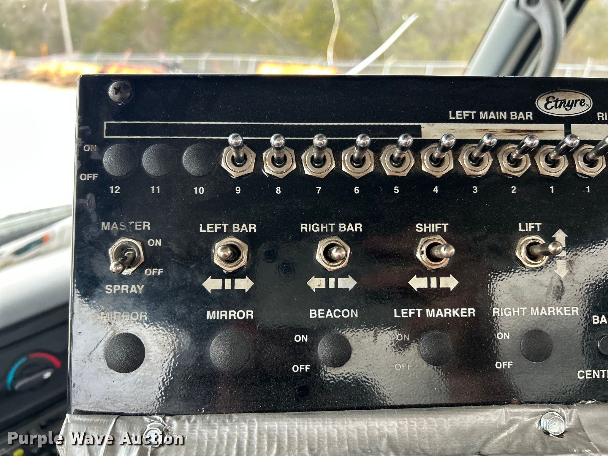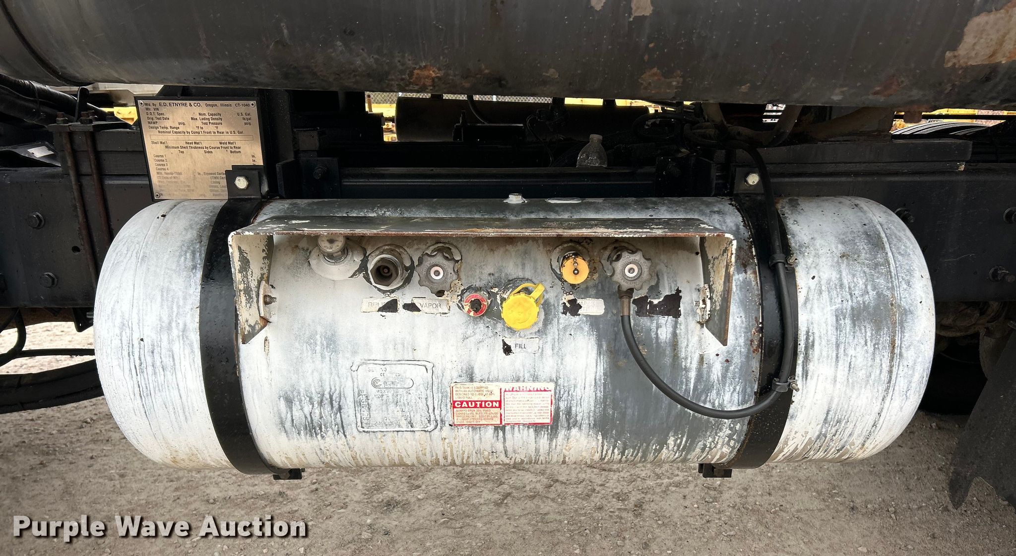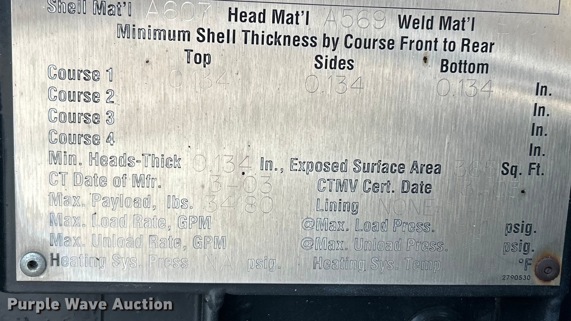 2003 International 7400 oil distributor truck. Miles: 32,155 on odometer, Hours: 5,456 on meter, VIN: 1HTWHAATX3J078529. Engine International CH250, Displacement: 7.6L, Cylinders: 6, Fuel type: Diesel. Transmission Eaton Fuller 8 Speed Lo & Lo-Lo, Manual. Chassis Axles: Tandem, Differential lock: Inter-axle, Suspension: Spring over walking beam, Brakes: Air, PTO, GVWR: 58,000 lbs. Interior AC, Heat, Heated mirrors, Cruise control, Auxiliary controls. Features Bed Tank bed, Etnyre Black - Topper Centennial, Serial: S3464, Length: 15', Capacity: 3,500 gallons, Burner: LPG, In-cab controls, Spray boom Width: 18', Folding, Nozzles: 54.. Tires Front: 315/80r22.5, Rear: 11R22.5. Notes Spare tire included, Windshield chipped or cracked. Missouri title. Title distribution may be delayed up to 14 days from verification of funds. Jefferson County Public Works. Hillsboro, MO 63050