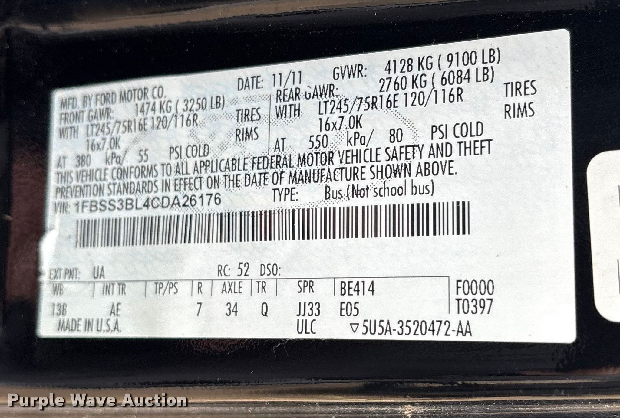 - VIN: 1FBSS3BL4CDA26176