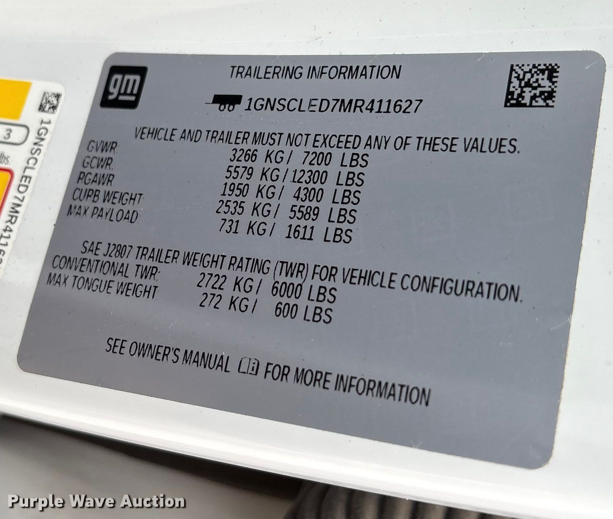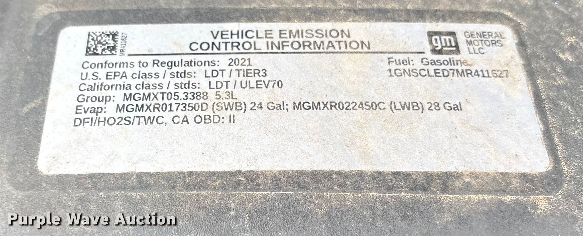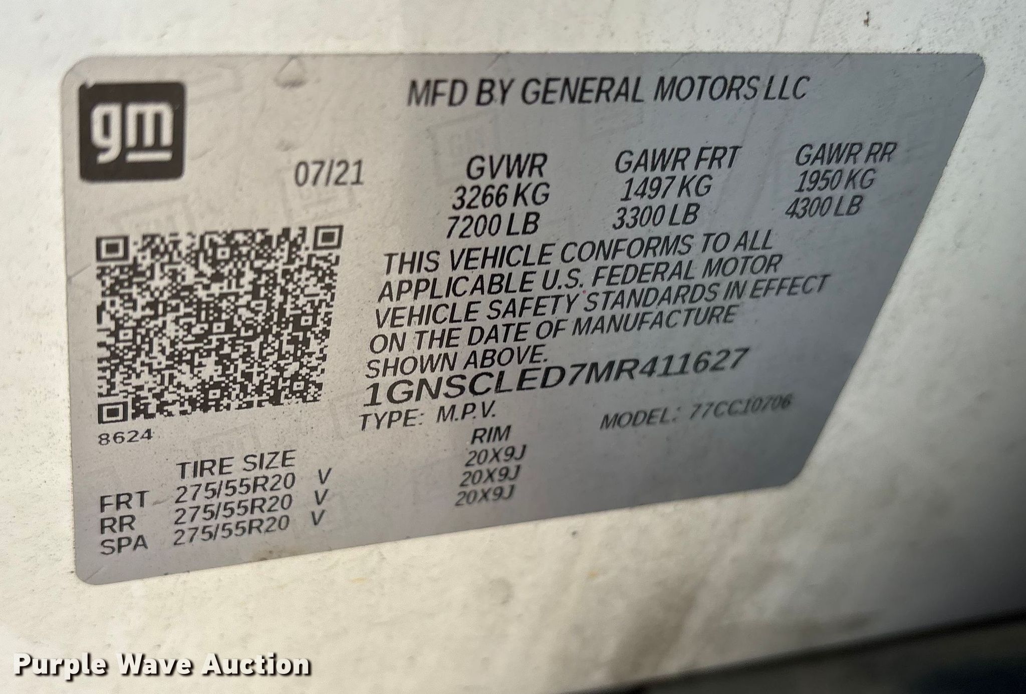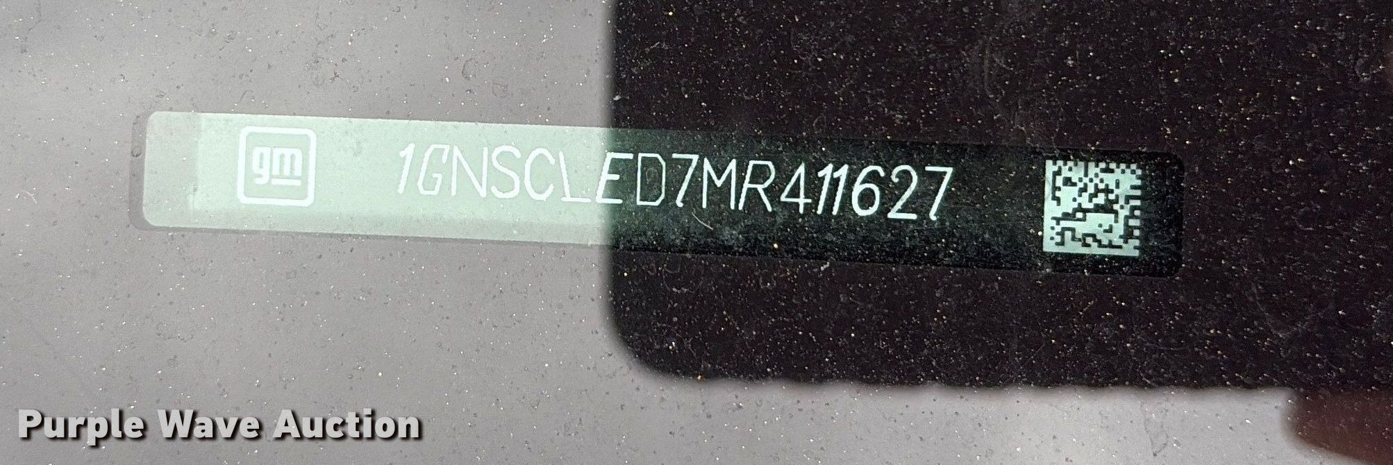 Purple Wave is selling a used Passenger Vehicle in Texas. This item is a 2021 Chevrolet Tahoe SUV with the following: Miles: 115,149 on odometer, VIN: 1GNSCLED7MR411627, Unit #: 2102