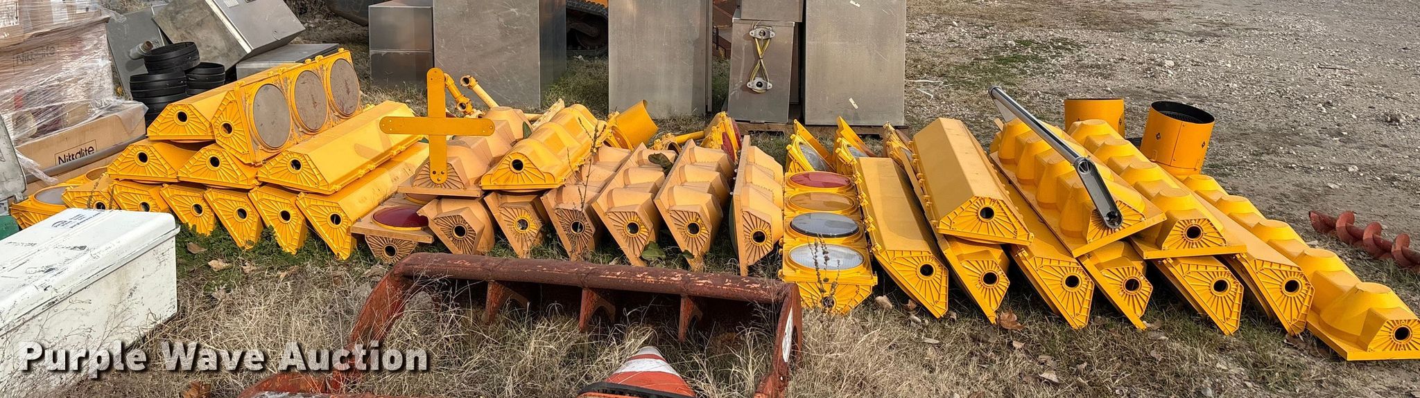 Purple Wave is selling a used Road Safety Equip. in Texas. This item is a Traffic light equipment with the following: Traffic signal lights, Light covers, Traffic boxes