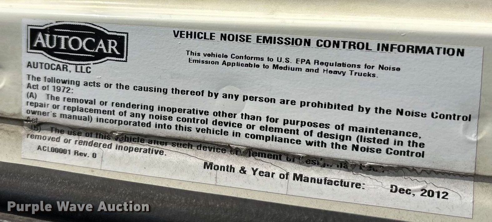 Take a look at this used 2013 Autocar ACX Xpeditor refuse truck being sold on January 20th, 2026 in the Tuesday January 20 Government Auction made by Autocar. Take a look at all of the item information below or take a look at similar auctions for Trucks.