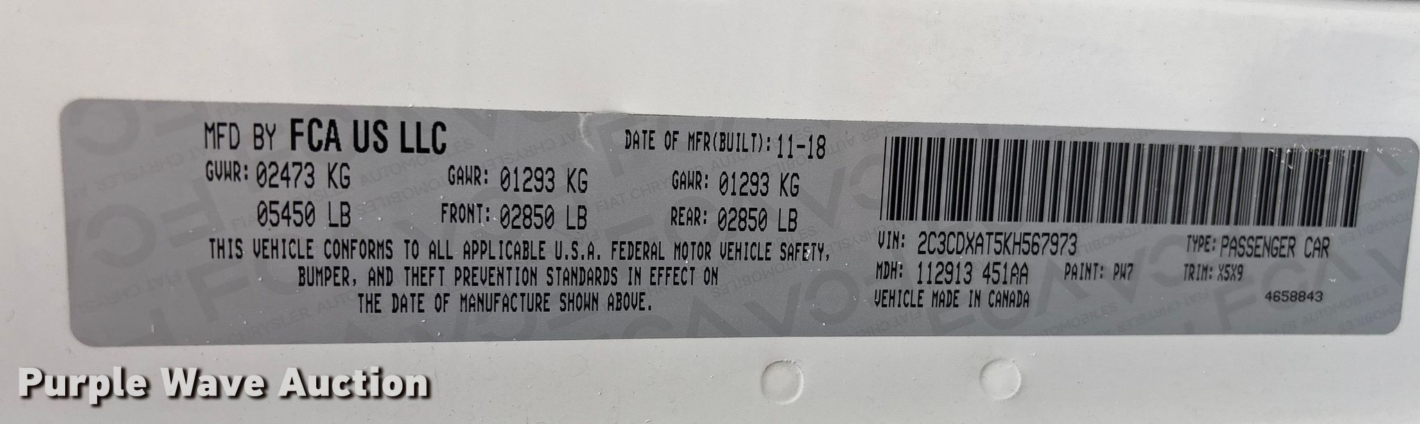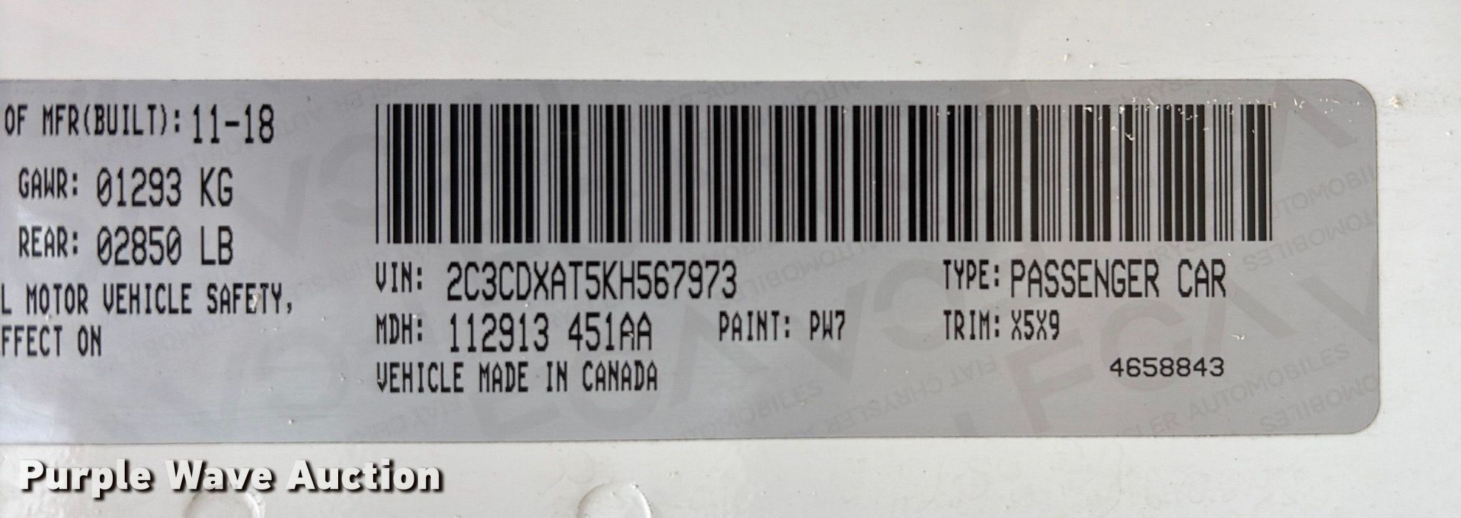 - VIN: 2C3CDXAT5KH567973