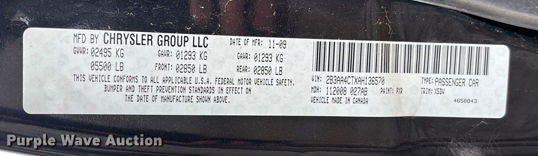 Purple Wave is selling a used Passenger Vehicle in Oklahoma. This item is a 2010 Dodge Charger Police with the following: Miles: 125,434 on odometer, VIN: 2B3AA4CTXAH136570