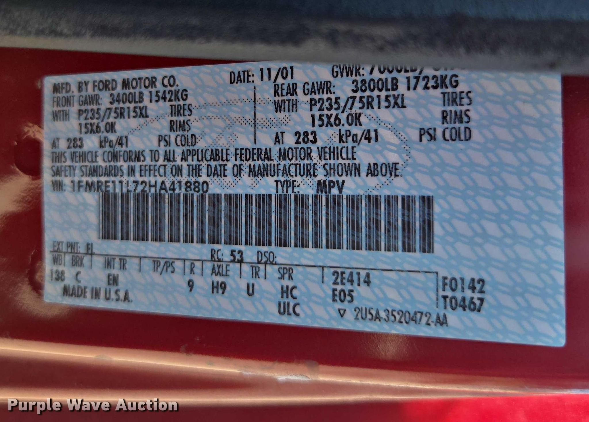 Purple Wave is selling a used 1/2 Ton Pickup or Van in Kansas. This item is a 2002 Ford E150 van with the following: Miles: 93,390 on odometer, VIN: 1FMRE11L72HA41880