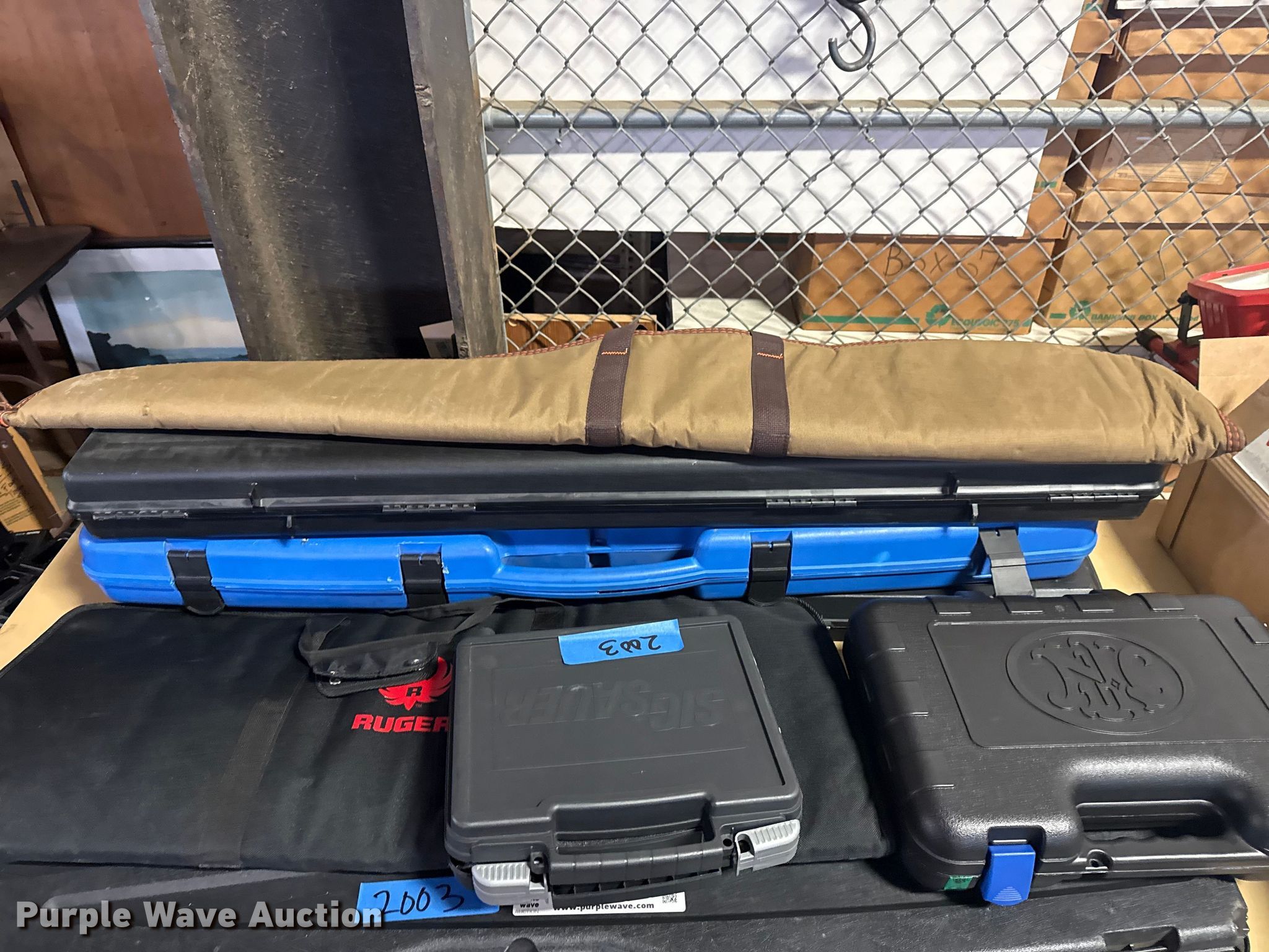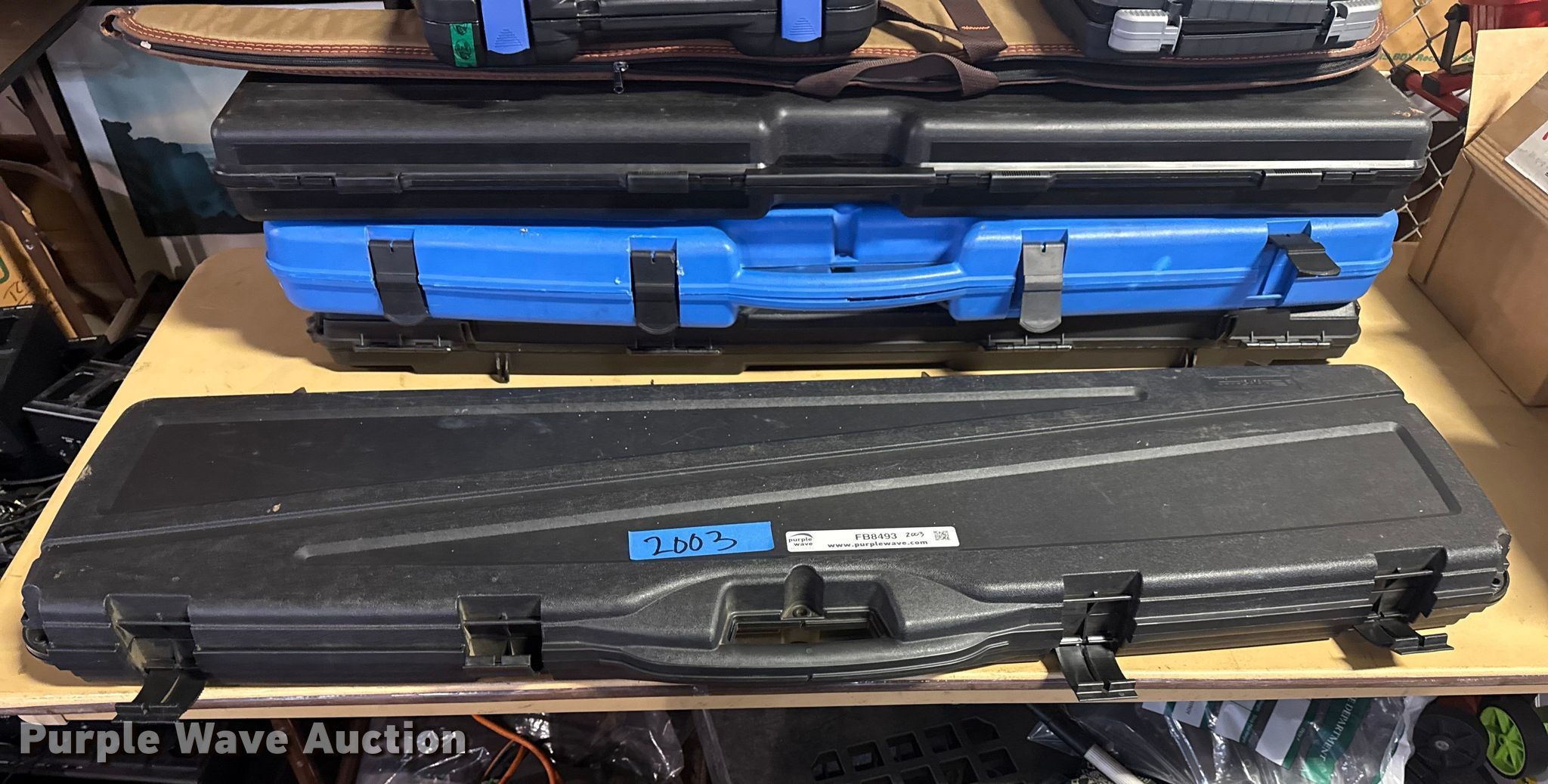 Purple Wave is selling a used Sporting Goods in Oklahoma. This item is a (6) rifle cases with the following: (2) pistol cases, Unit #: 2003