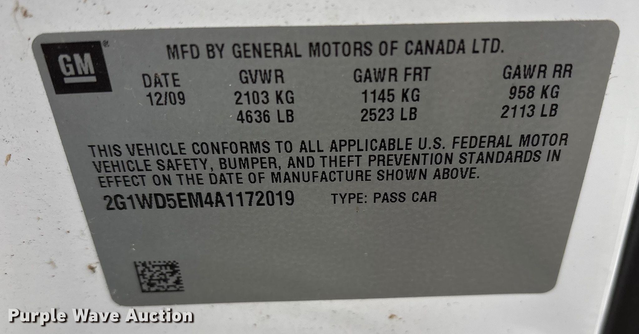 Purple Wave is selling a used Passenger Vehicle in Oklahoma. This item is a 2010 Chevrolet Impala Police Cruiser with the following: Miles: 37,646 on odometer, VIN: 2G1WD5EM4A1172019, Unit #: 211
