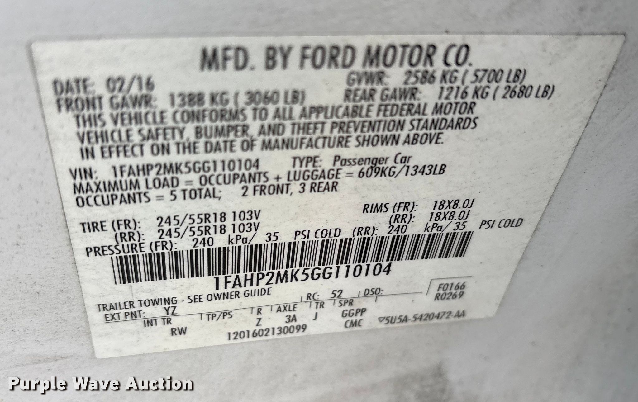 - VIN: 1FAHP2MK5GG110104