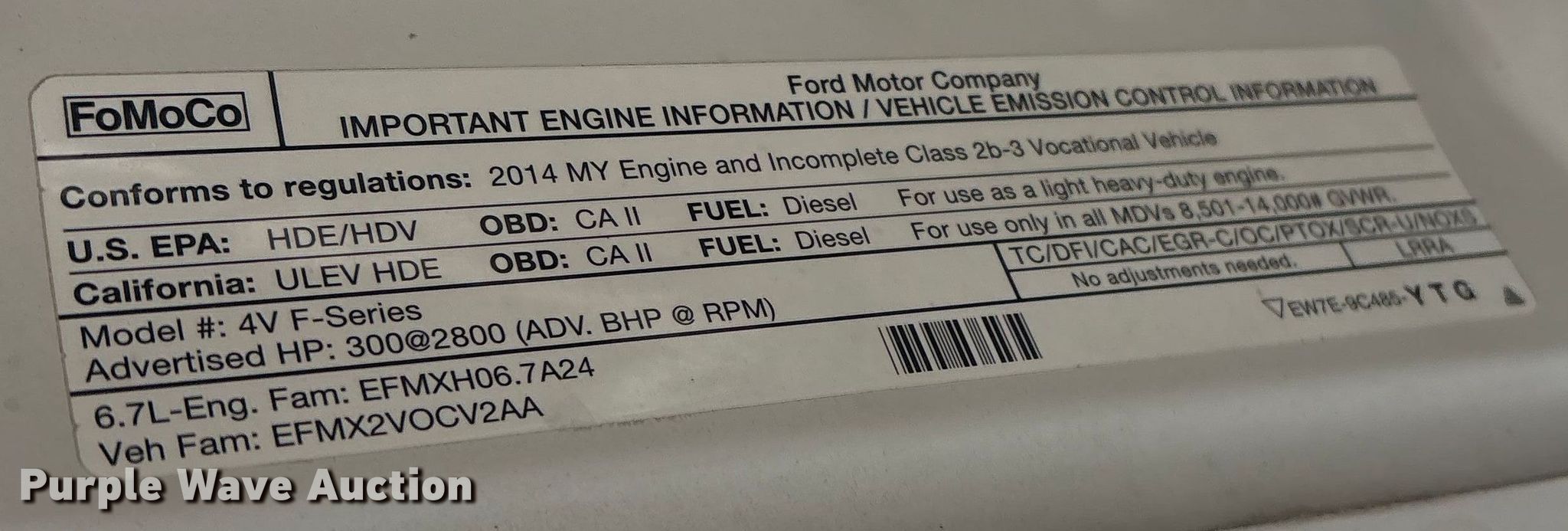 2014 Ford F350 Super Duty Ext. Cab utility bed pickup truck. Miles: Unknown, VIN: 1FD8X3HT8EEA16578, Unit #: 107. Engine Displacement: 6.7L, Cylinders: 8, Fuel type: Diesel. Transmission Automatic. Chassis Four wheel drive, Axles: Single, Suspension: Spring, Brakes: Hydraulic, GVWR: 14,000 lbs. Interior AC, Heat, Auxiliary controls. Features Bed Utility bed, Omaha Standard, Serial: 10-62269, Length: 10' 10", Width: 94", Winch Warn VR 10. Tires Size: LT245/75R17. Notes Drive belt issues, Alignment issues, Idler pulley issues, Steering linkage issues, DEF pump and sender issues, MAF and MAP sensor issues, PCM parameter issues, needs replaced, Unit must be towed or hauled , Unknown operating condition. Oklahoma title. Seller is a government entity who will be assigning and distributing the title. Please contact the seller for distribution questions. Title distribution may be delayed up to 30 days from verification of funds. City of Tulsa. 108 N Trenton Ave. Tulsa, OK 74120