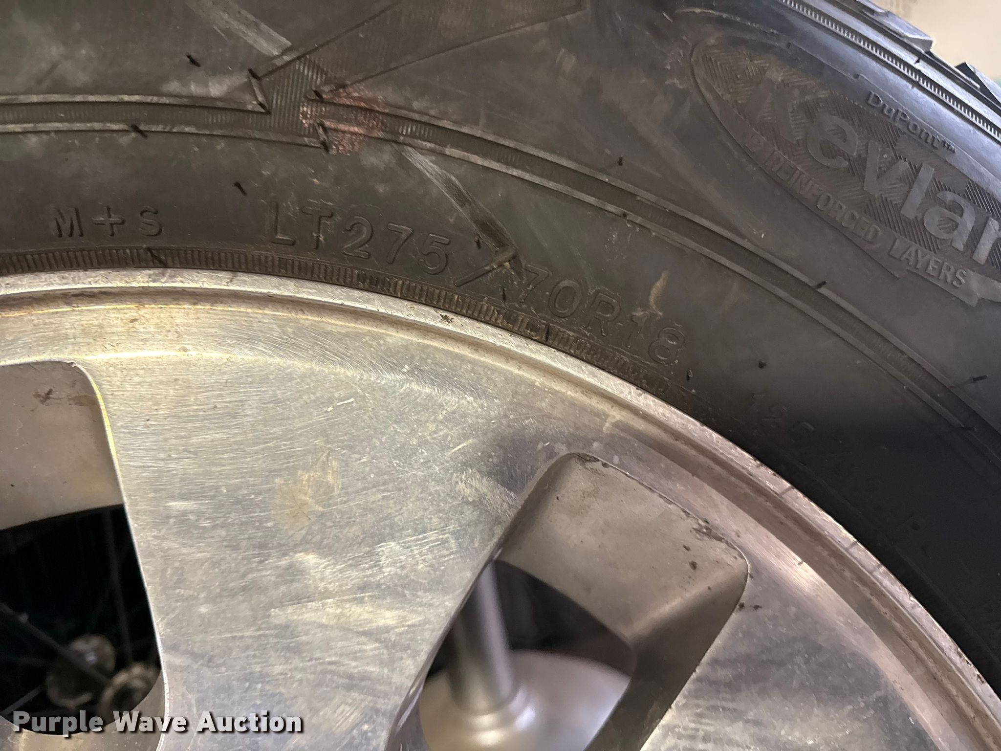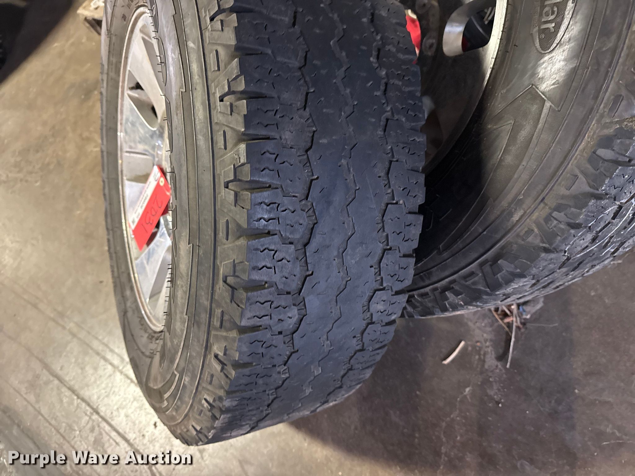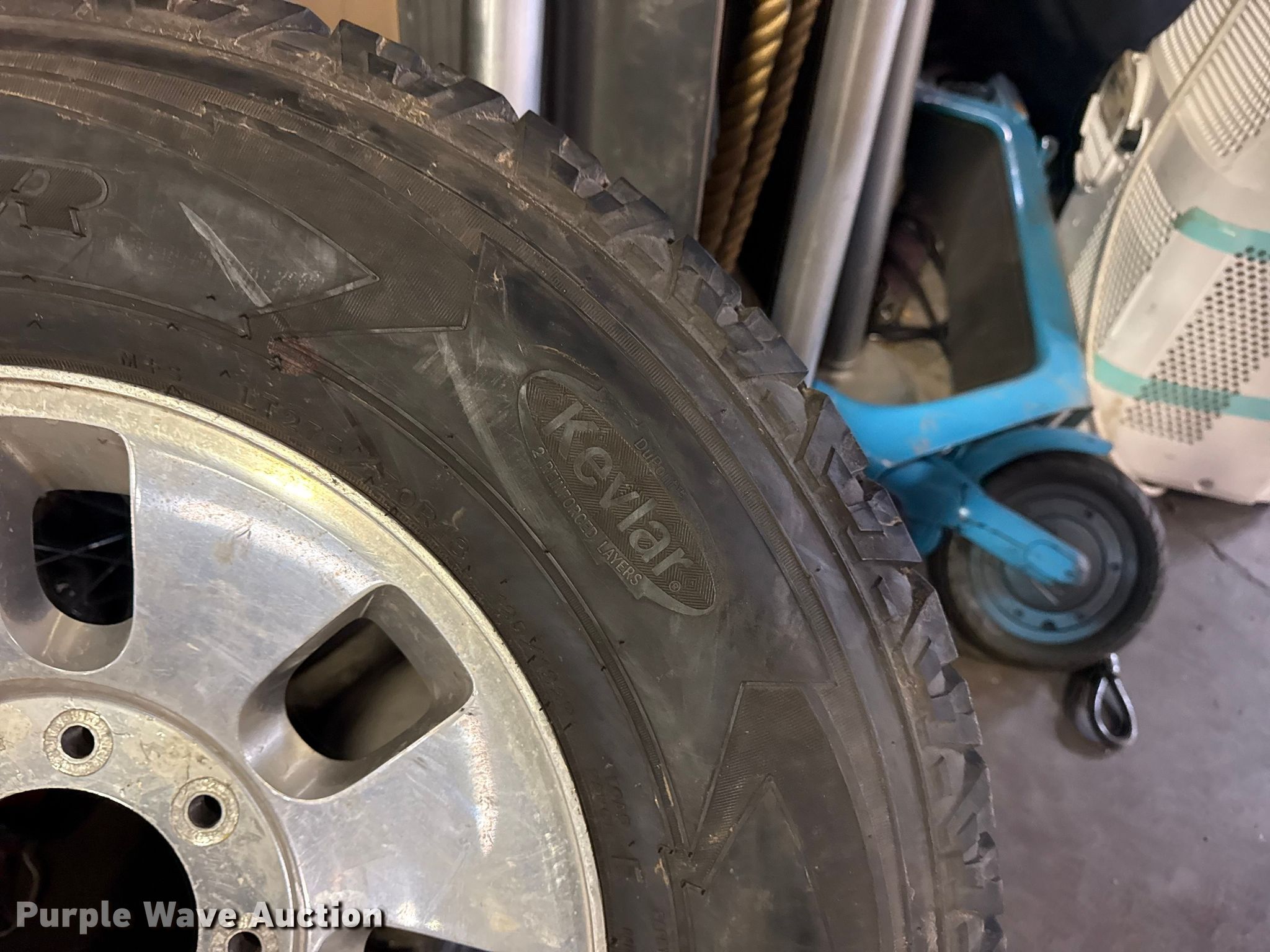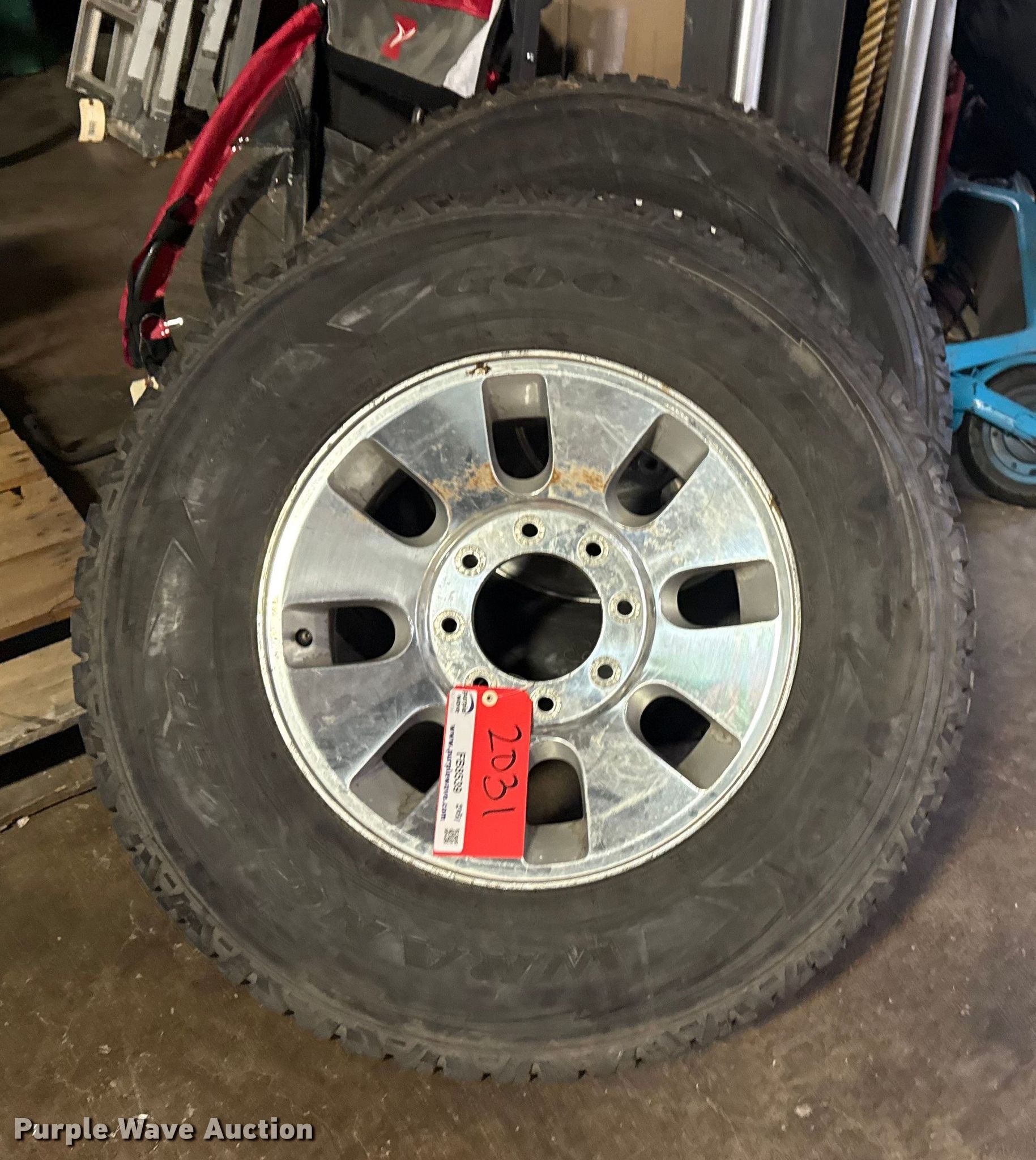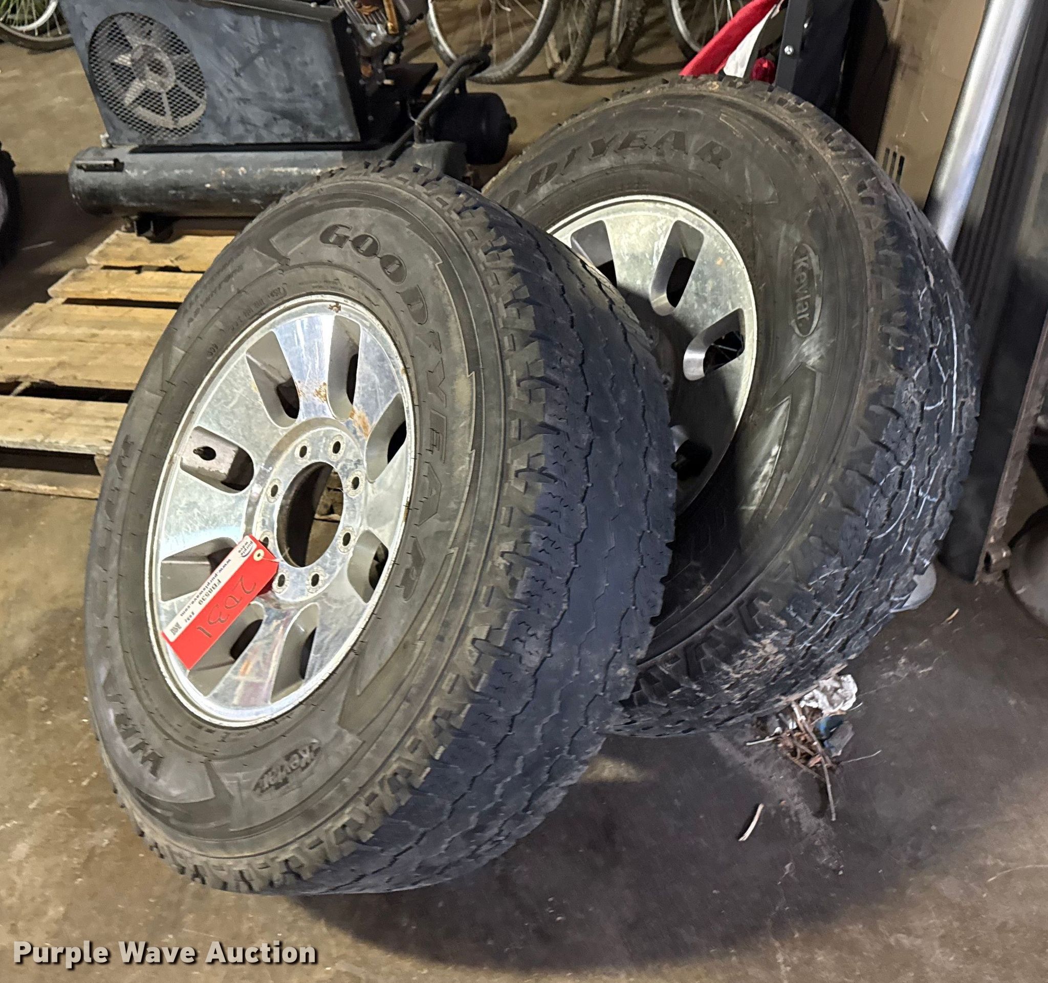 Purple Wave is selling a used Tires Other in Oklahoma. This item is a (2) tires with the following: (2) Goodyear Wrangler, Size: 70R18, (2) 8 lug aluminum rims, Unit #: 2031