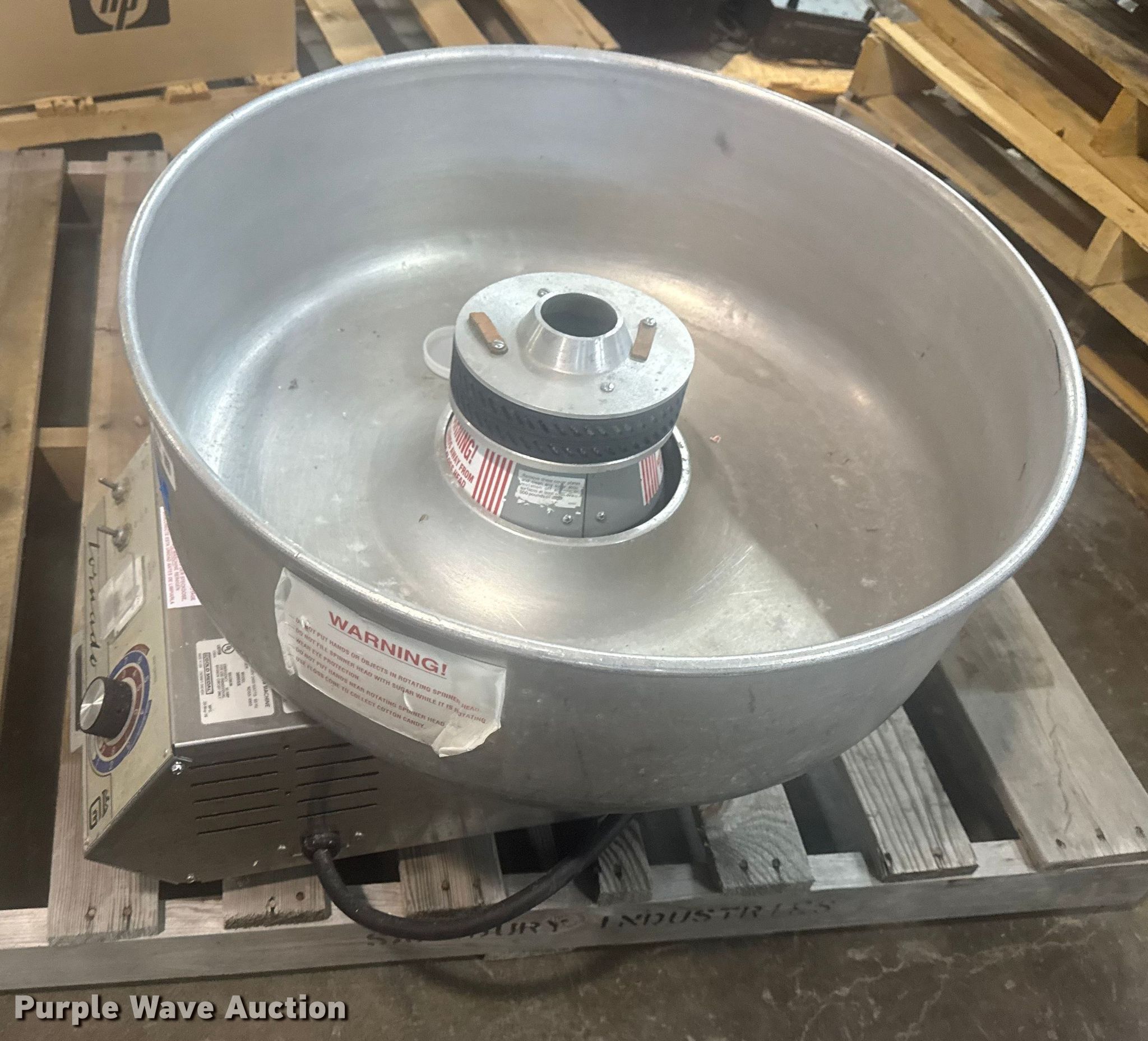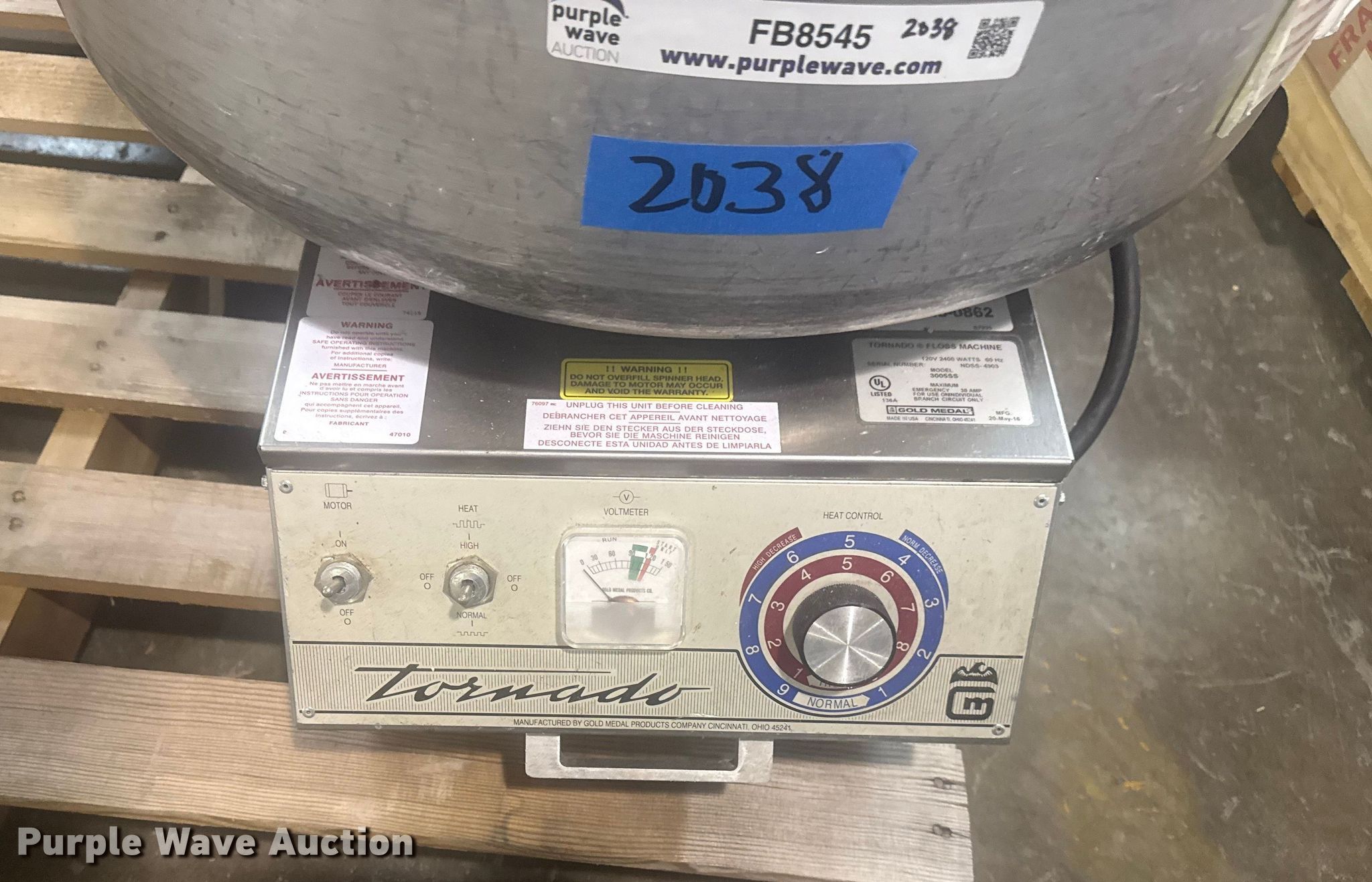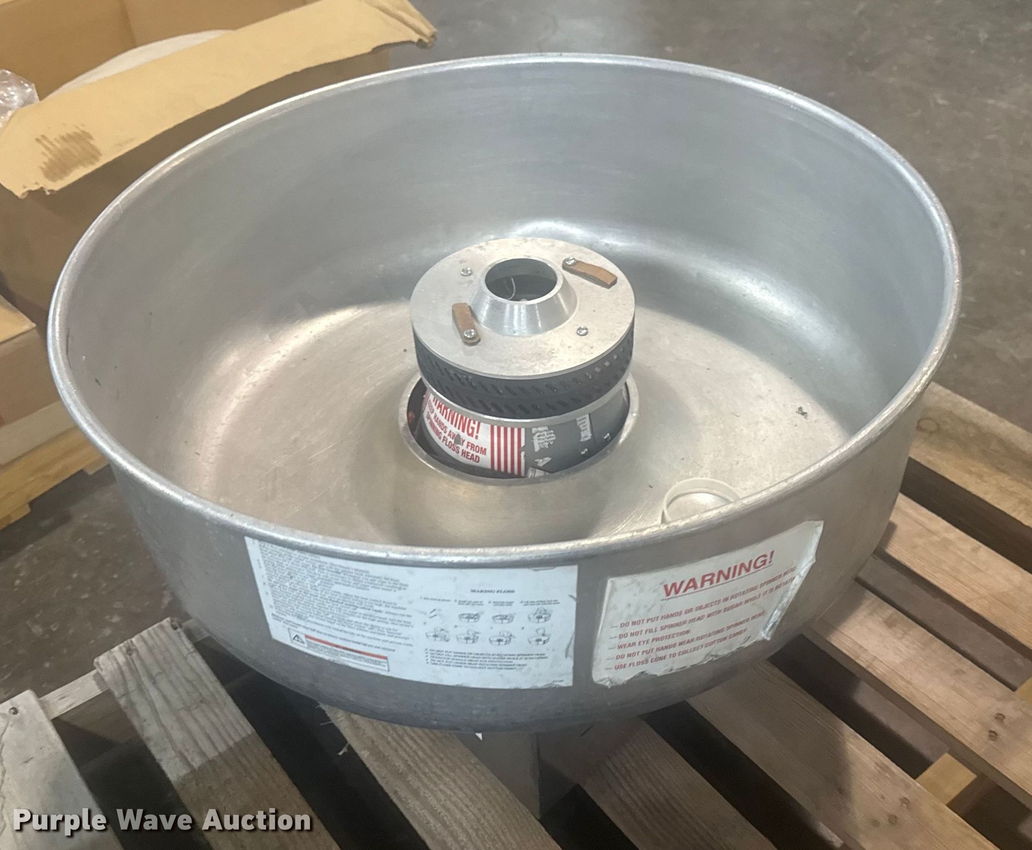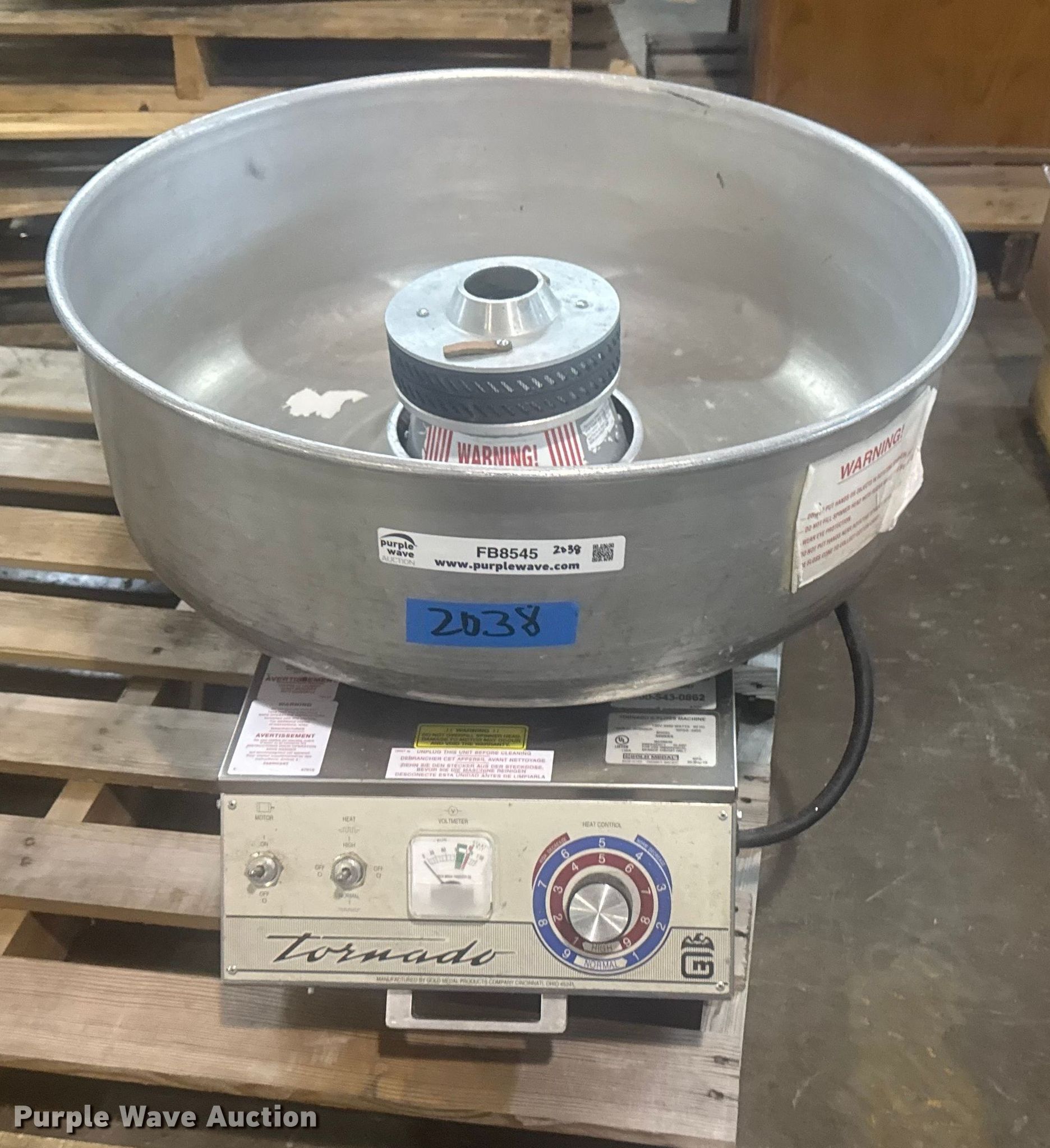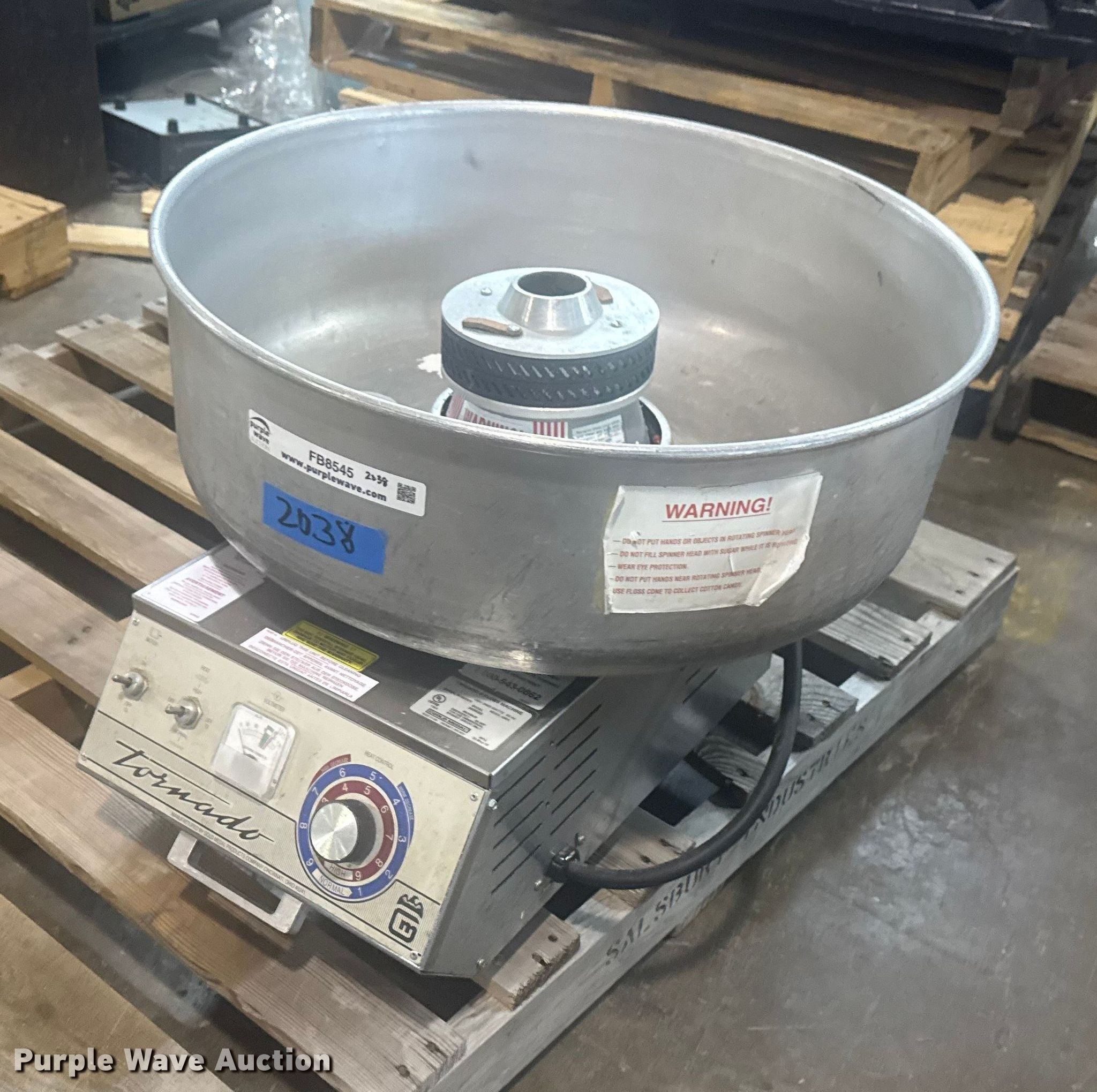 Purple Wave is selling a used Restaurant Equip. in Oklahoma. This item is a 3005SS Tornado cotton candy machine with bowl with the following: Cover missing, Unit #: 2038