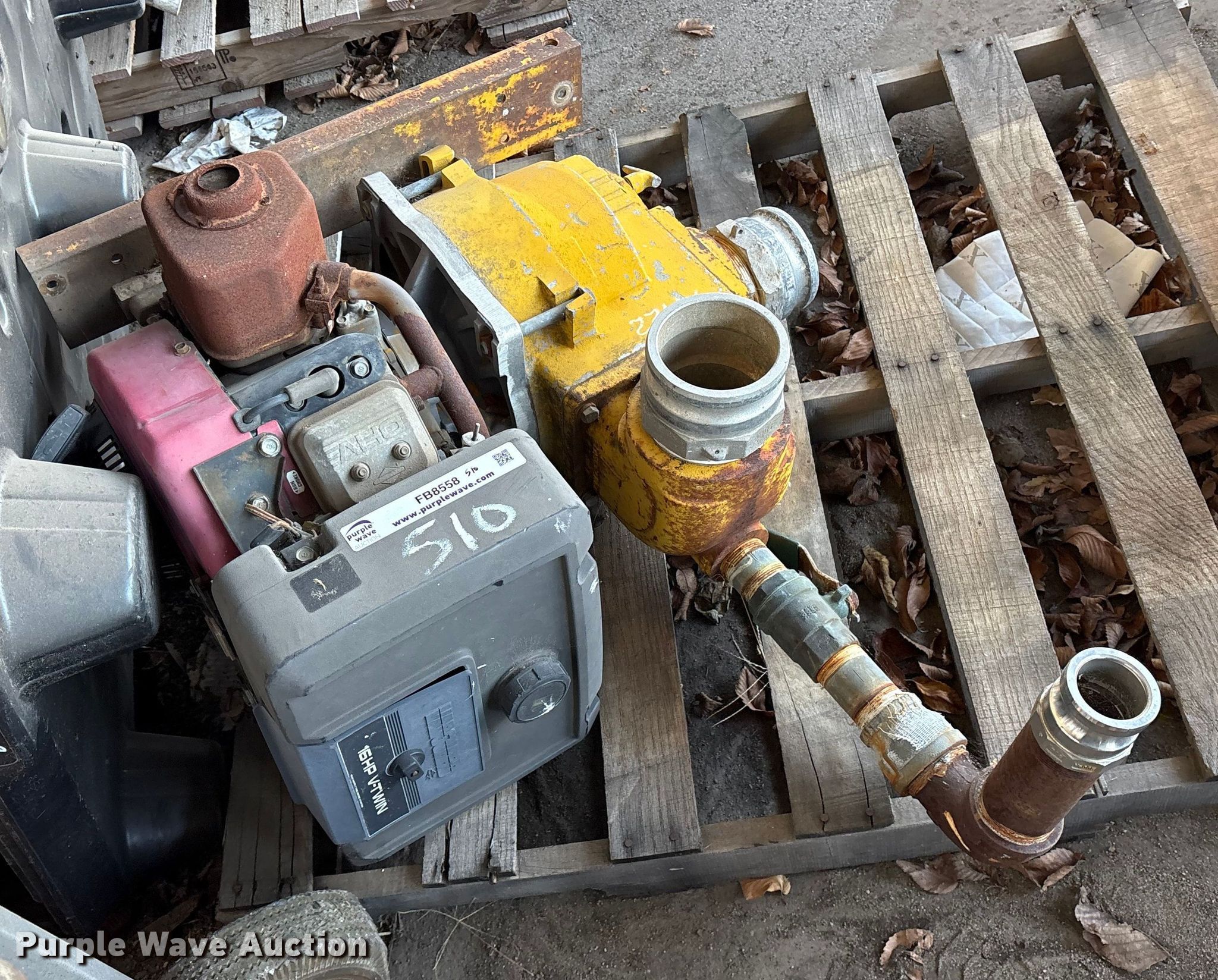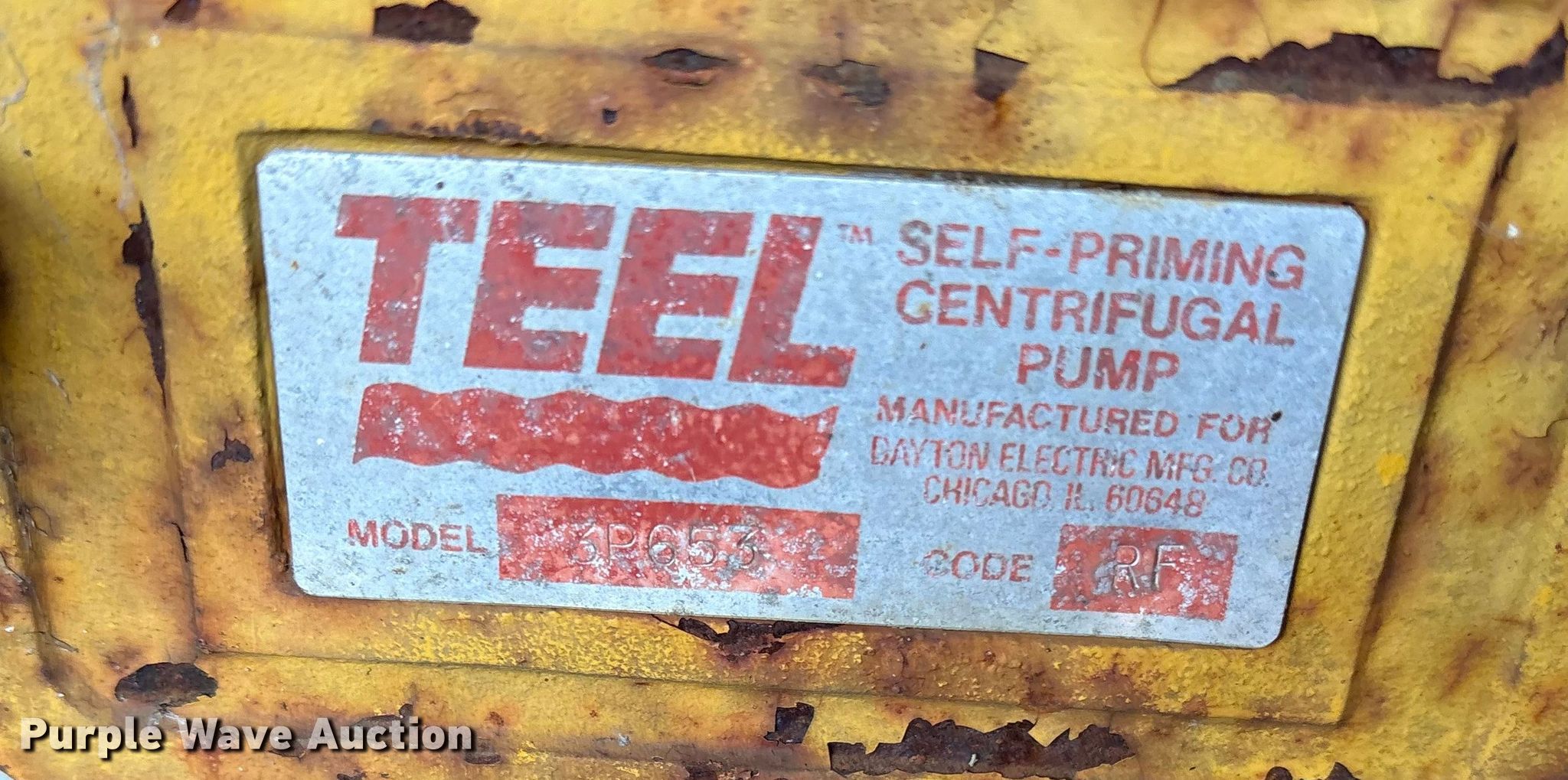 Purple Wave is selling a used Pump in Oklahoma. This item is a Teel 3P653 trash pump with the following: Hours: 16,203 on meter, Serial: RF, Unit #: 510