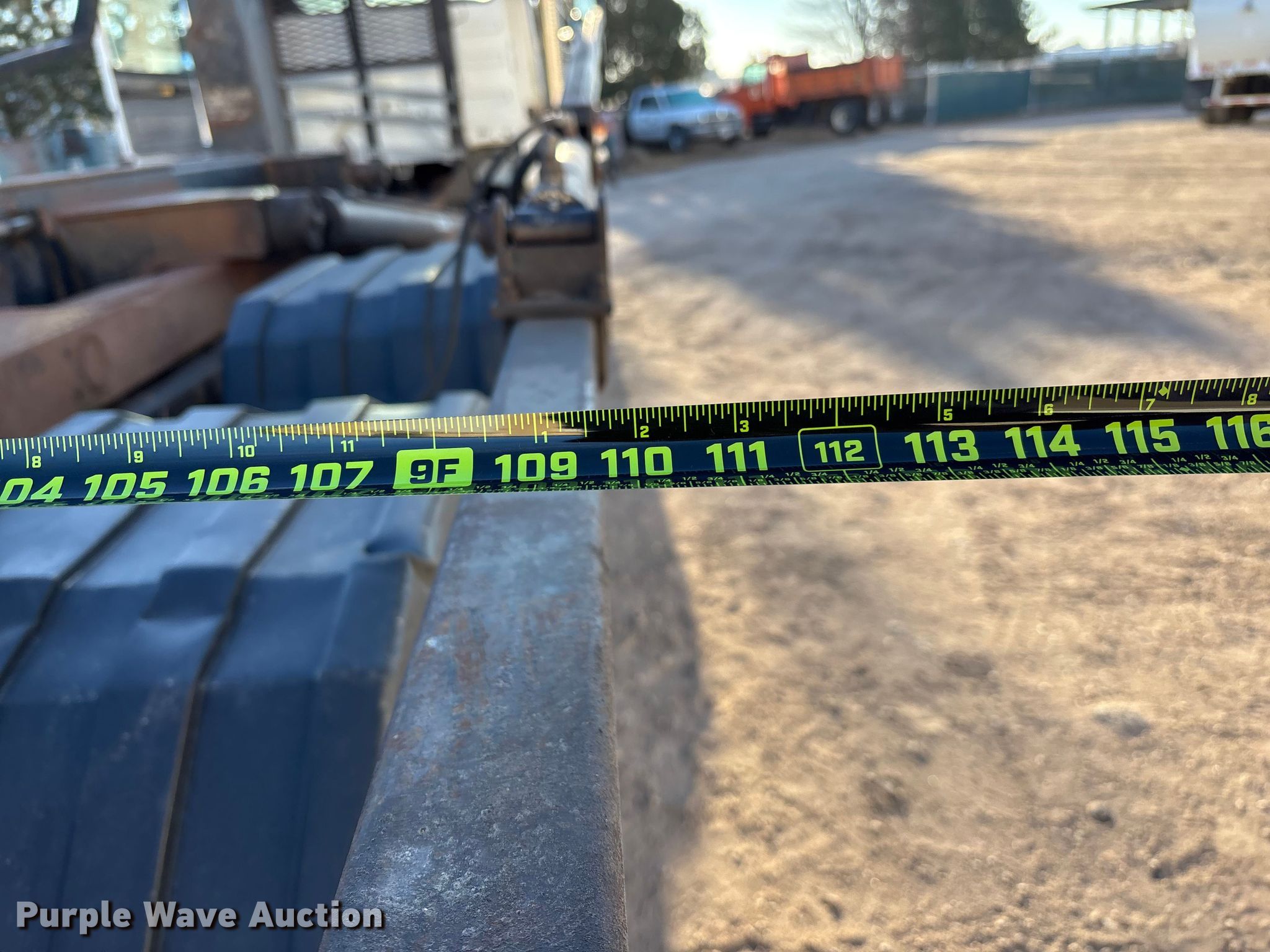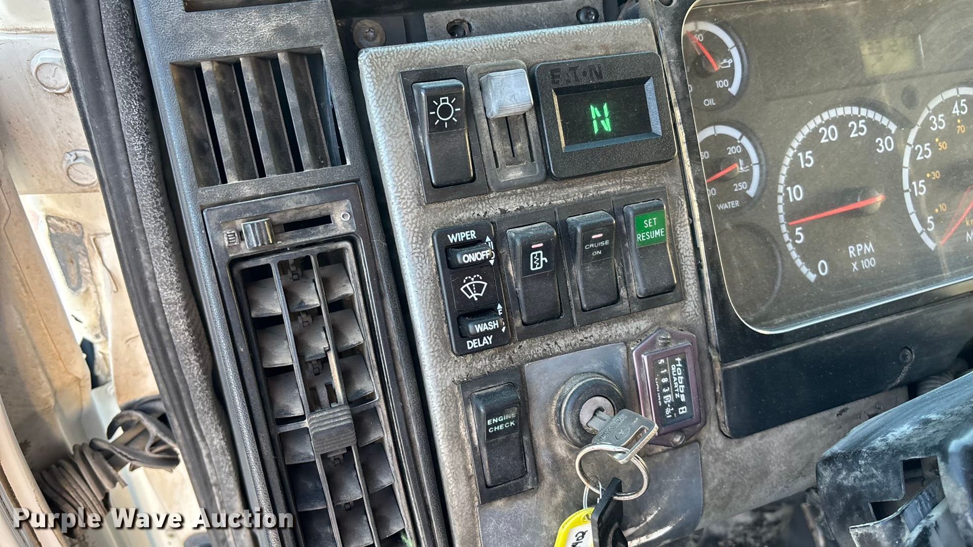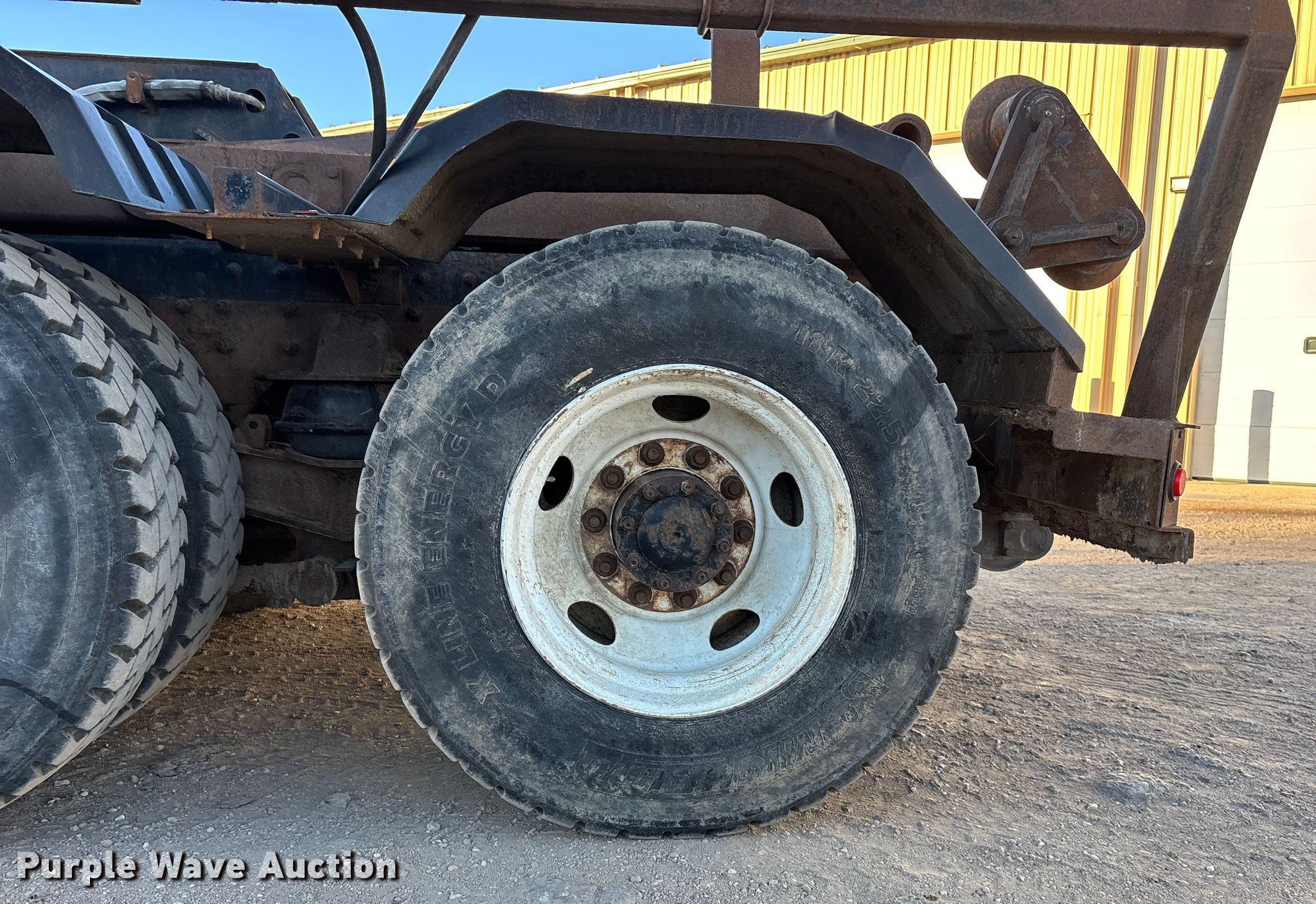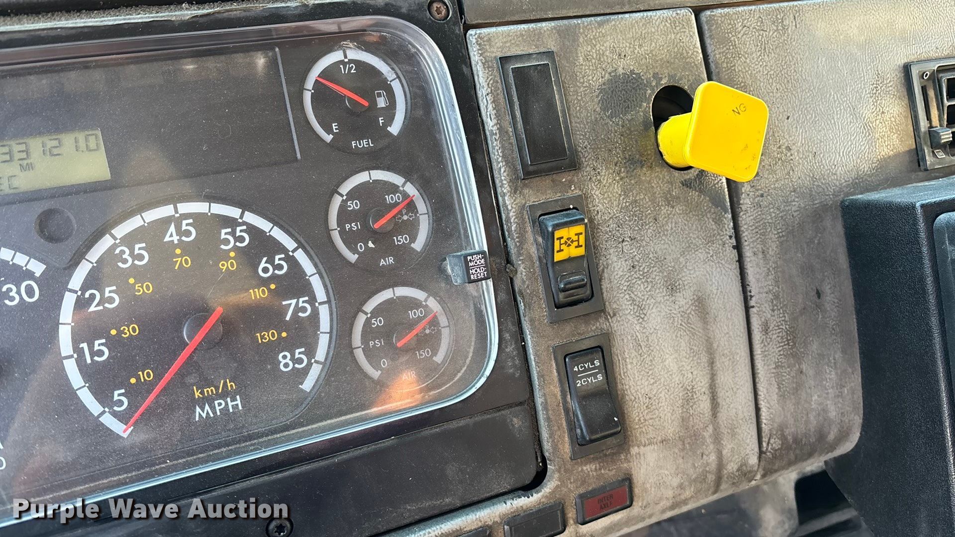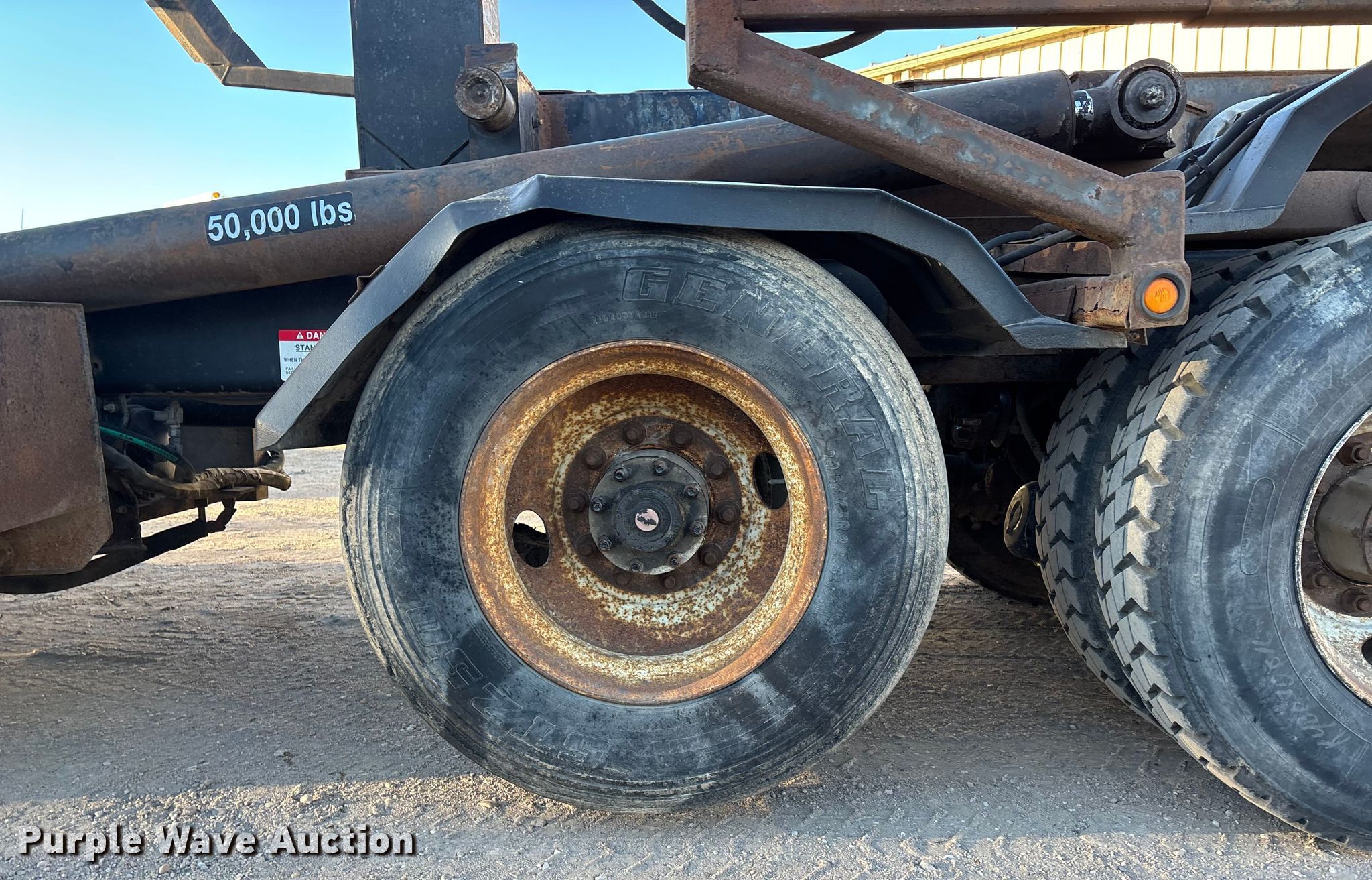 2001 Freightliner FL112 hook lift truck. Miles: 126,486 on odometer, Hours: 5,561 on meter, VIN: 1FV4TMCB61HH13282. Engine Cummins ISM, Displacement: 10.8L, Cylinders: 6, Fuel type: Diesel. Transmission Eaton Fuller, Automated manual. Chassis Axles: Triple, Pusher axle, Suspension: Spring over walking beam, Brakes: Air, PTO, Wet kit, GVWR: 75,000 lbs. Interior Heat, Heated mirrors, Cruise control. Features Bed Roll-off bed, K-Pac American Hook Lift, Length: 21', Width: 100", Ram: Dual, Roll tarp, Pac, Capacity: 50,000 lbs. Tires Front: 315/80R22.5, Rear: 11R22.5, Lift axle: 295/75R22.5. Notes Pusher axle issues, will not lower. Nebraska title. Title distribution may be delayed up to 14 days from verification of funds. City of Kearney, NE. Kearney, NE 68847
