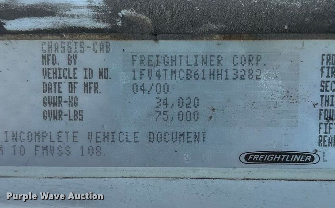 Purple Wave is selling a used Rollback or Tow Truck in Nebraska. This item is a 2001 Freightliner FL112 hook lift truck with the following: Miles: 126,486 on odometer, Hours: 5,561 on meter, VIN: 1FV4TMCB61HH13282