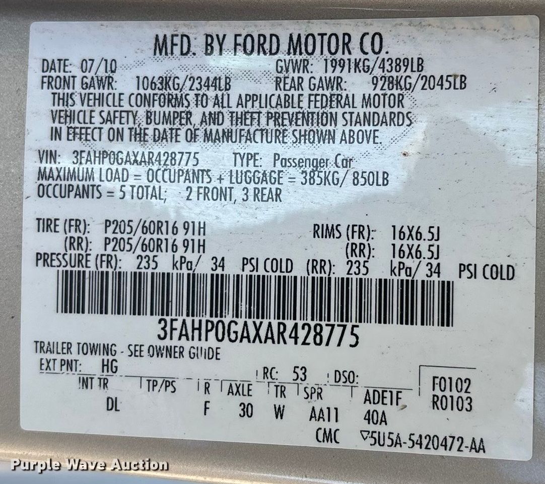 - VIN: 3FAHP0GAXAR428775