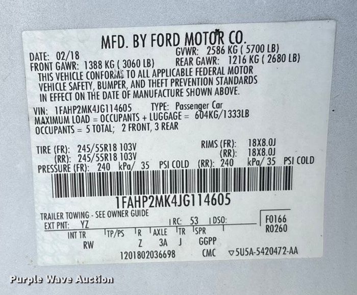 - VIN: 1FAHP2MK4JG114605