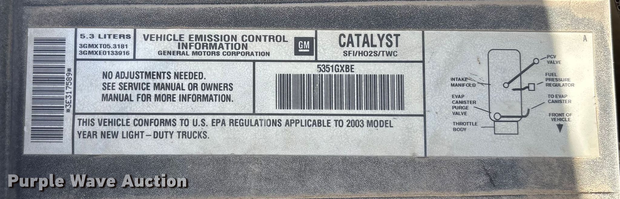 This 2003 Chevrolet Silverado 1500 pickup truck will sell to the highest bidder regardless of price.
