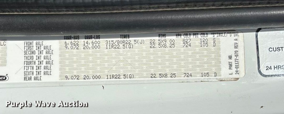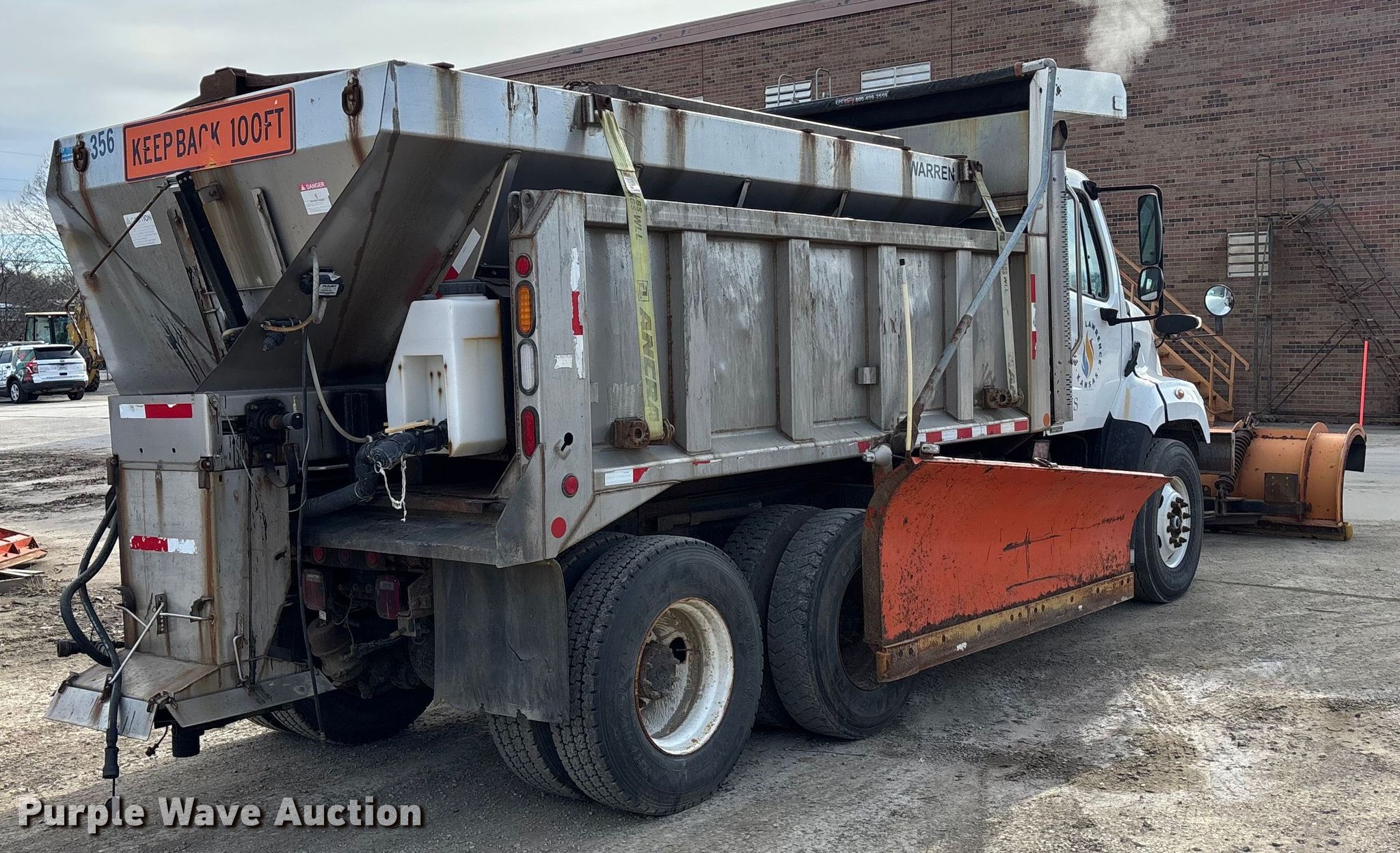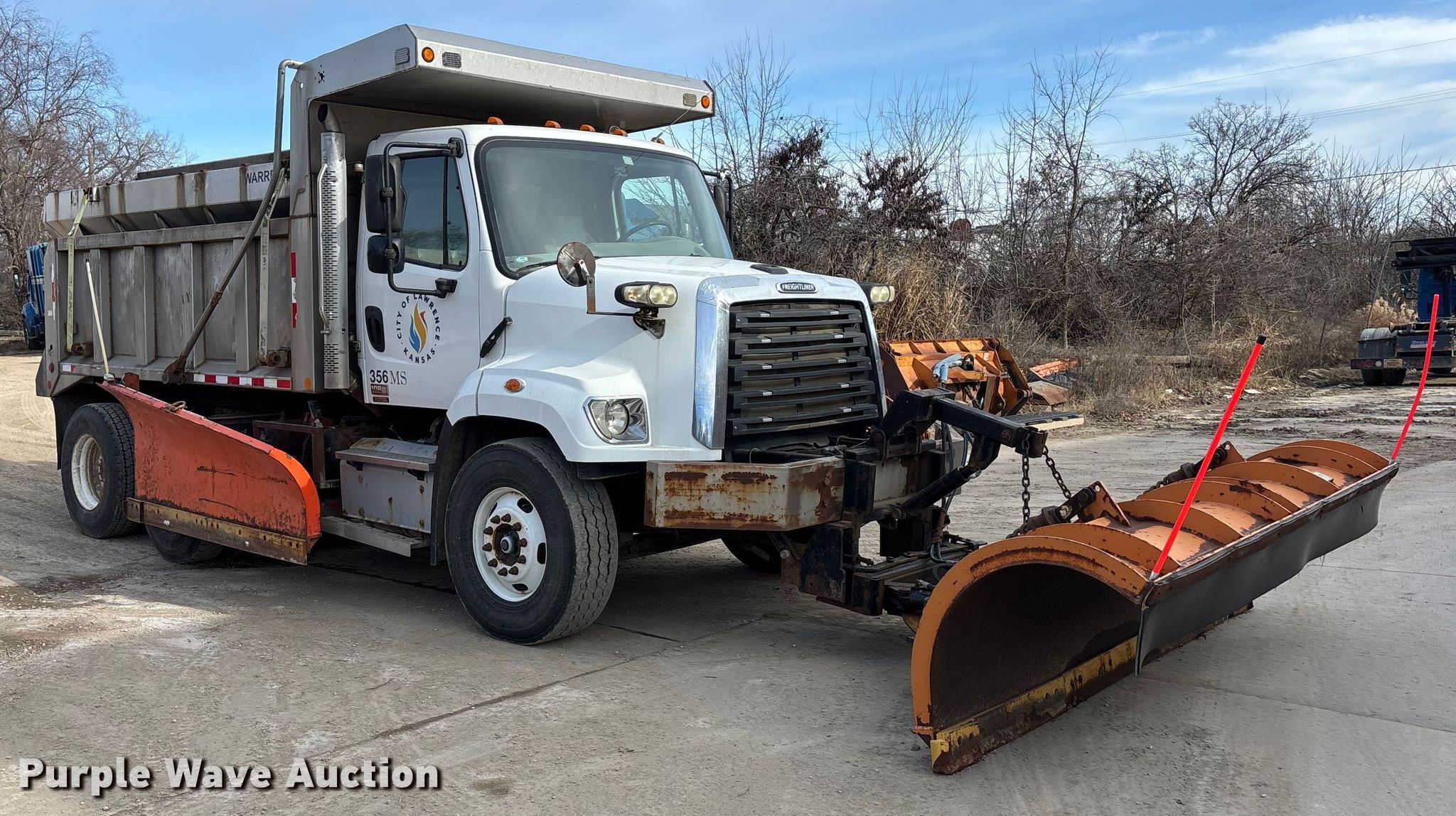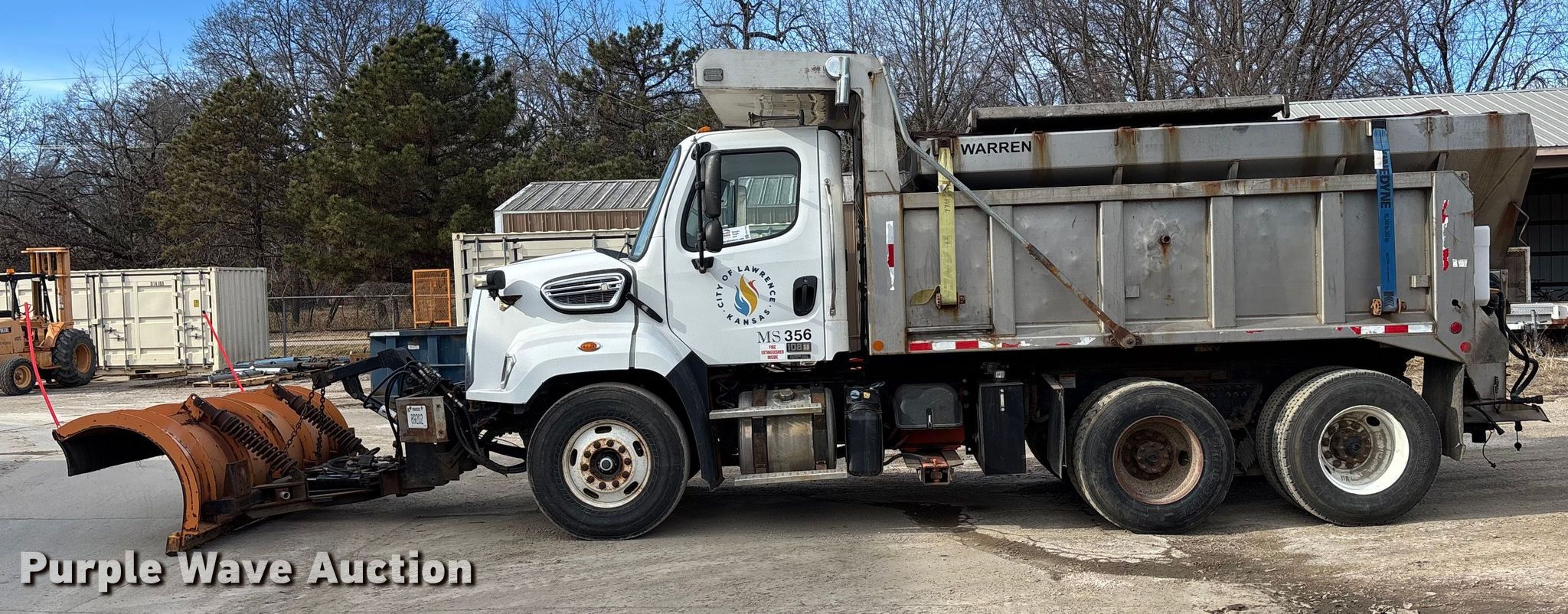 2014 Freightliner 108SD dump truck. Miles: 62,256 on odometer, VIN: 1FVHG5CY8EHFS4901. Engine Cummins ISL9, Serial: 73539536, Displacement: 8.9L, Cylinders: 6, Fuel type: Diesel, HP: 300. Transmission Allison, Automatic. Chassis Axles: Tandem, Differential lock: Inter-axle, Suspension: Spring over walking beam, Brakes: Air, Front mount PTO, GVWR: 54,600 lbs FAWR: 14,600 lbs, IAWR: 20,000 lbs, RAWR: 20,000 lbs. Interior AC, Heat, Heated mirrors, Cruise control. Features Bed Dump bed, Length: 13', Width: 96", Side height: 42", Bed type: Steel, Roll tarp, Ram: Single, End gate: Air operated, Spreader Warren, Capacity: 8.5 cu.yd., Plow Henderson 10 X 36 X IS, Width: 120", Mid-mount plow Henke, Width: 96". Tires Front: 215/80R22.5, Rear: 11R22.5. Kansas title. Seller is a government entity who will be assigning and distributing the title. Please contact the seller for distribution questions. Title distribution may be delayed up to 30 days from verification of funds. City of Lawrence. Lawrence, KS 66044