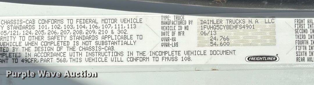 Purple Wave is selling a used Construction Dump Truck in Kansas. This item is a 2014 Freightliner 108SD dump truck with the following: Miles: 62,256 on odometer, VIN: 1FVHG5CY8EHFS4901
